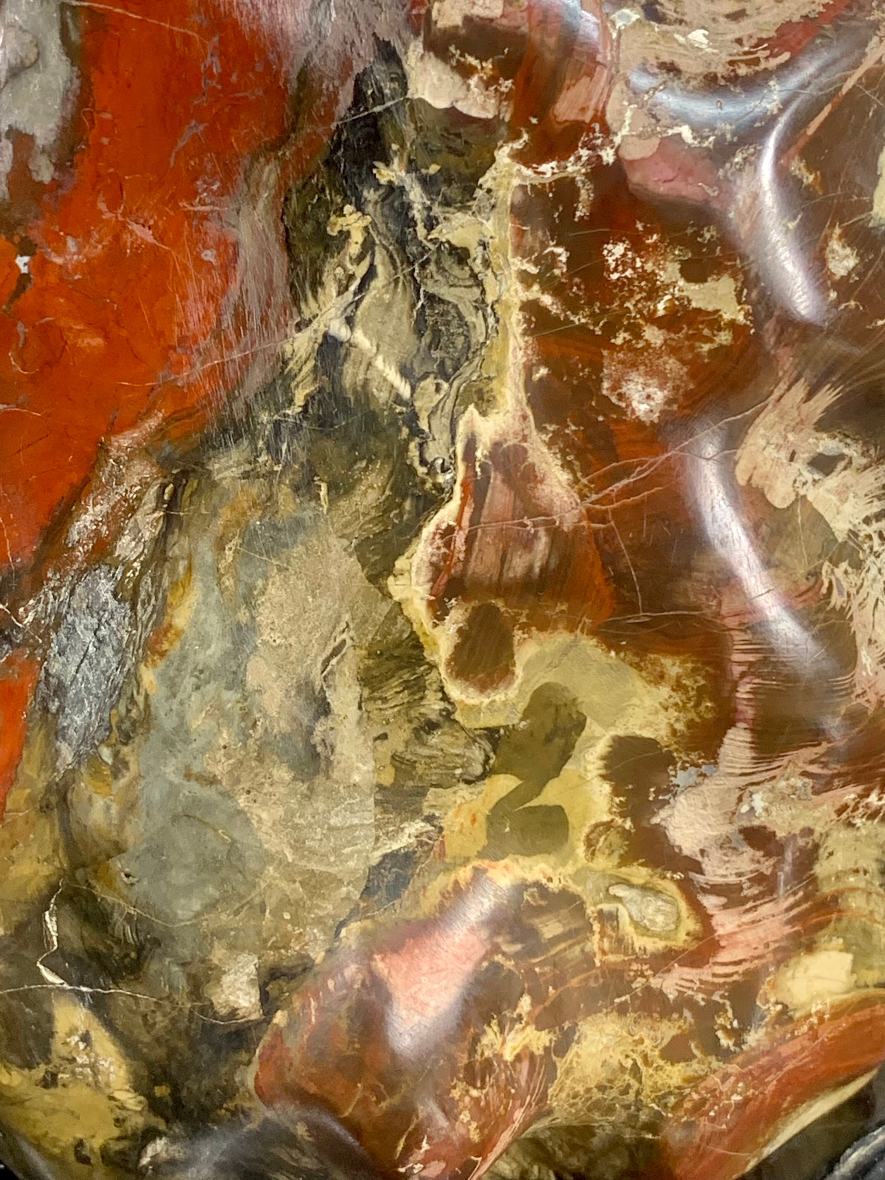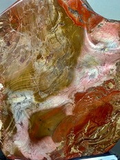 こちらの錦紅石は赤や黄土色、白などの結晶が入り、絵の具を溶かしたような模様をしています。