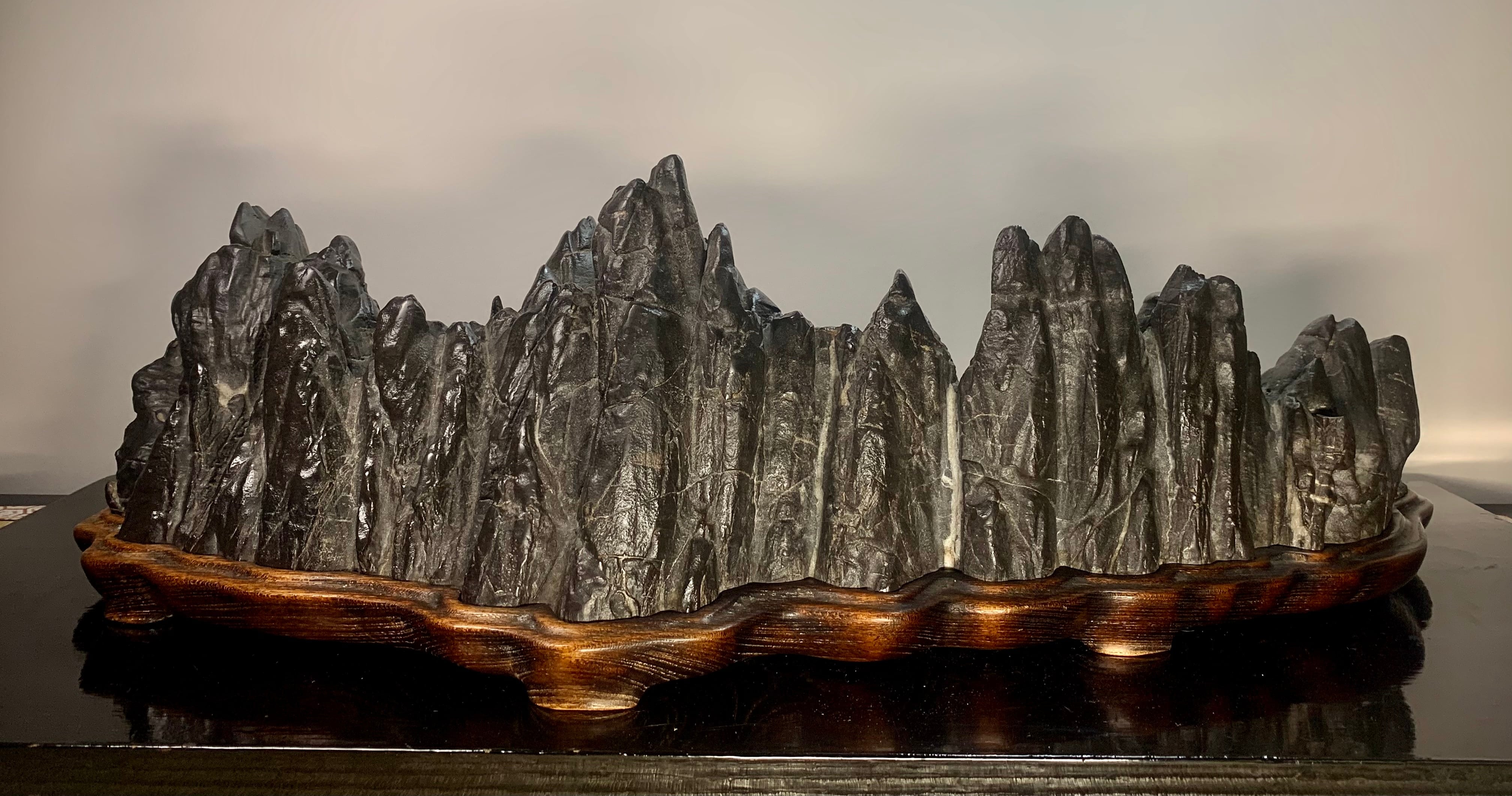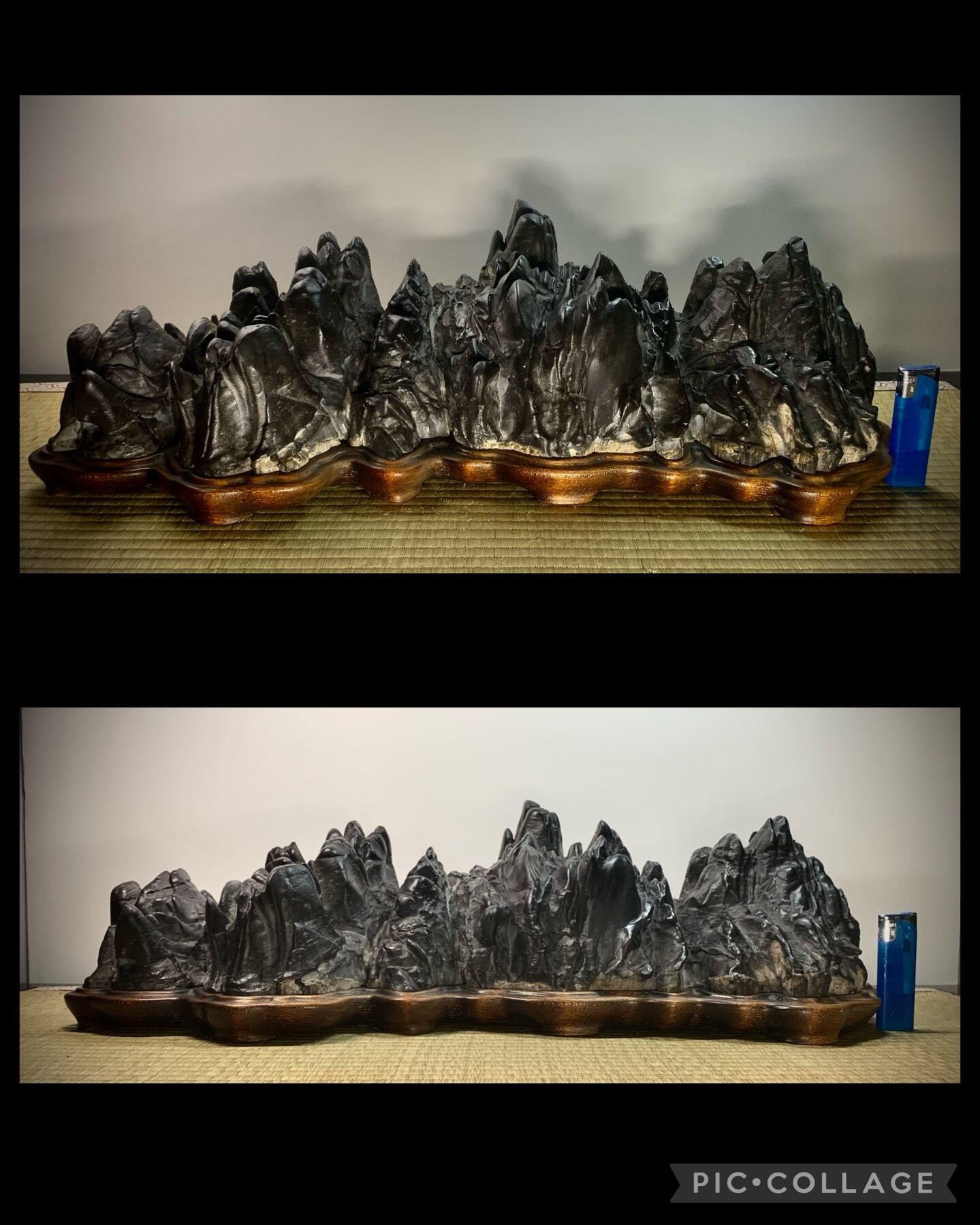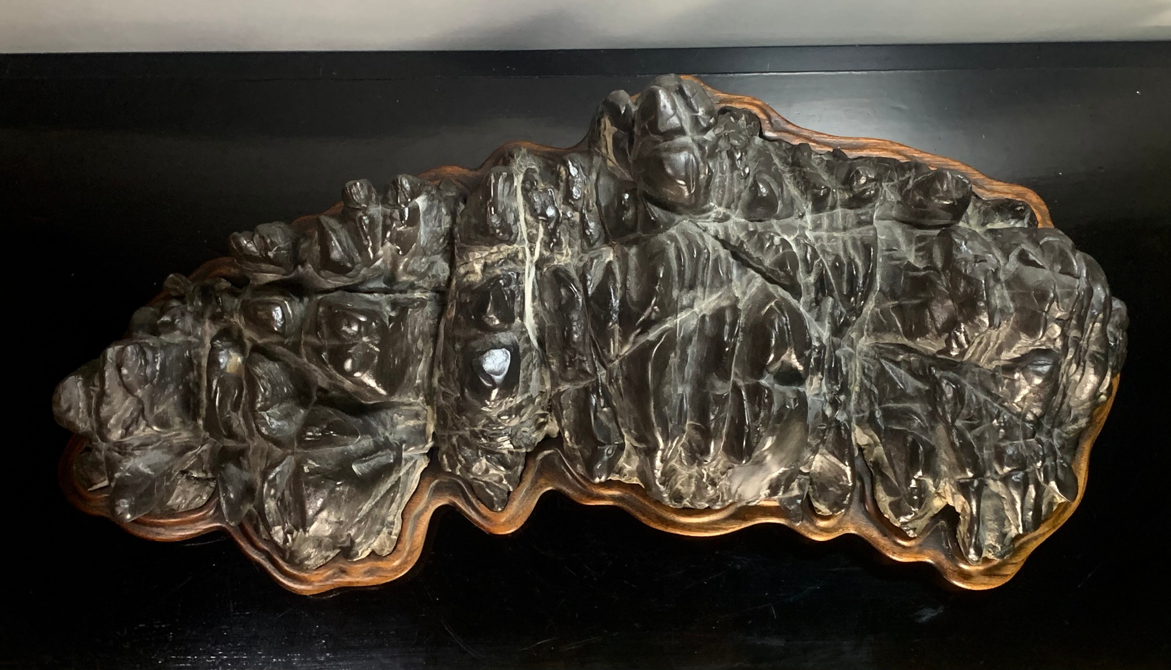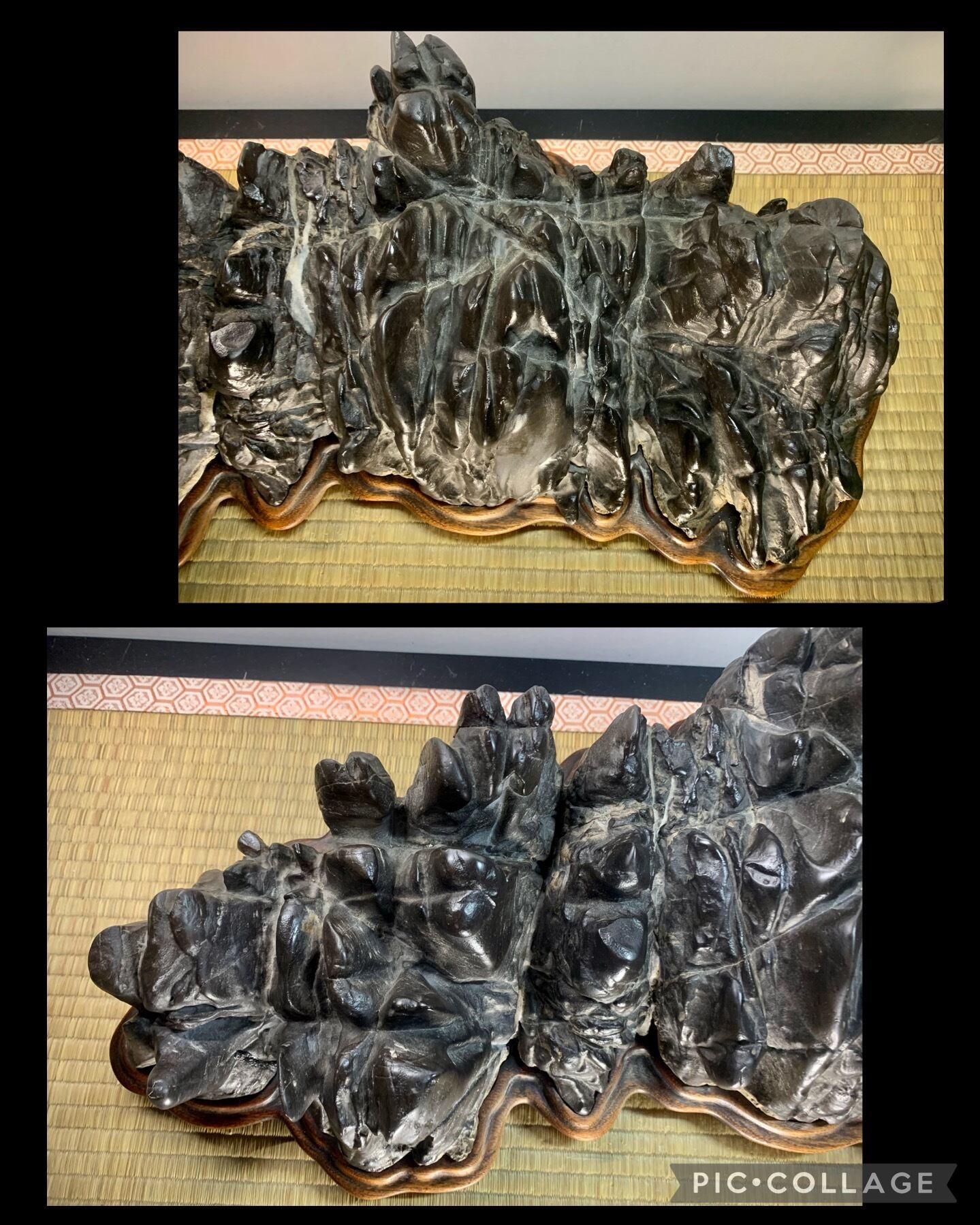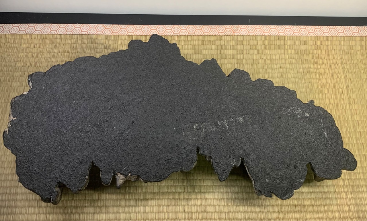 【信濃美術石博物館】水石 4466 静岳石 横56×高18×奥行29(cm) 重量:18.05kg(台座込)