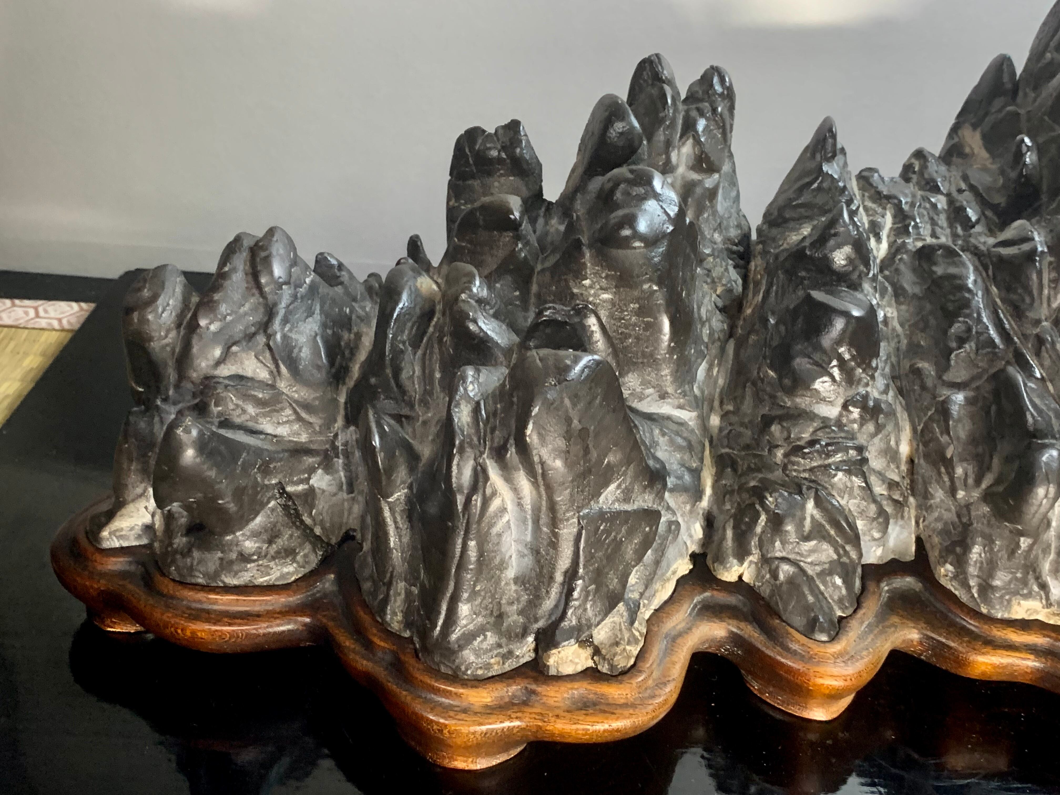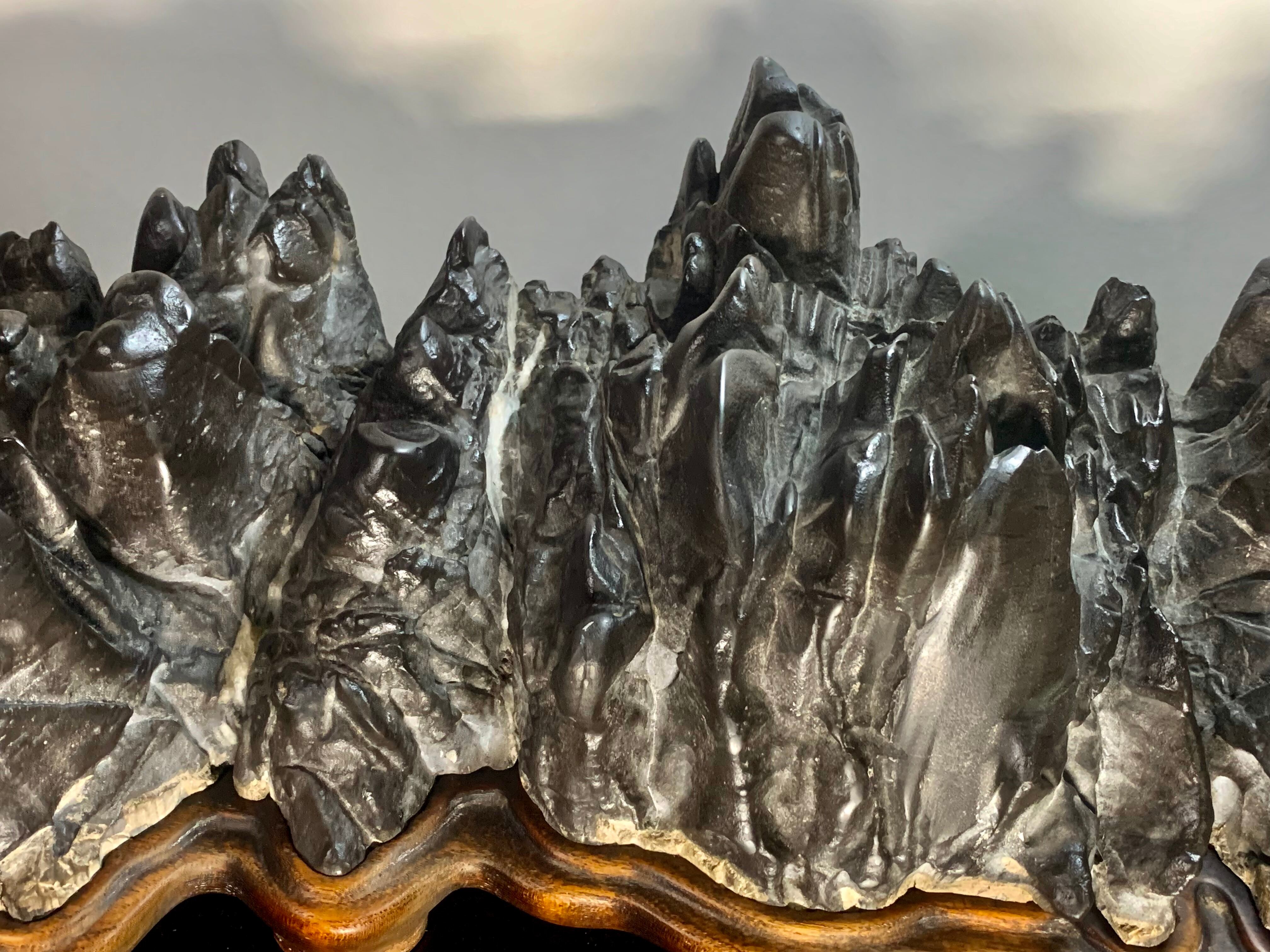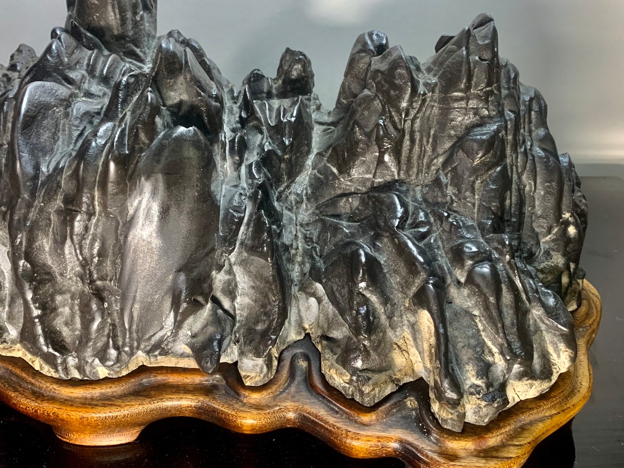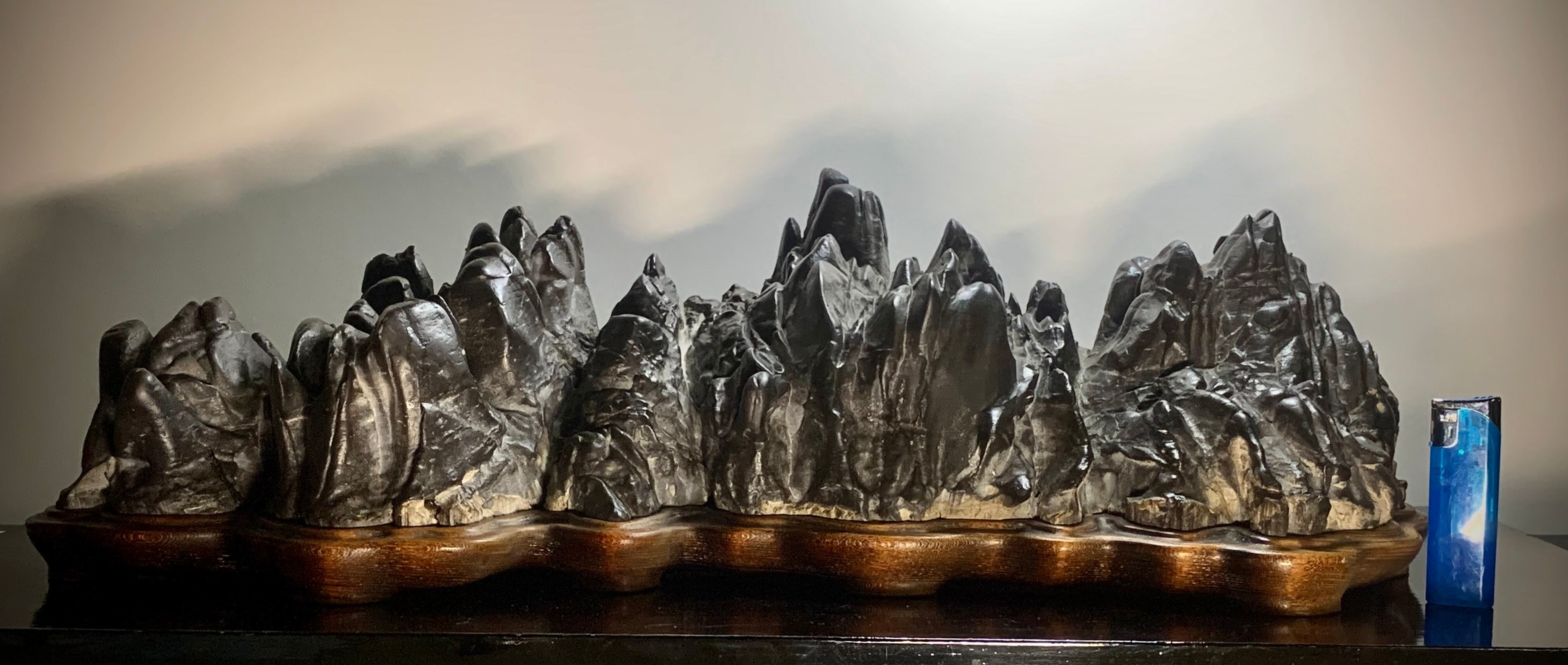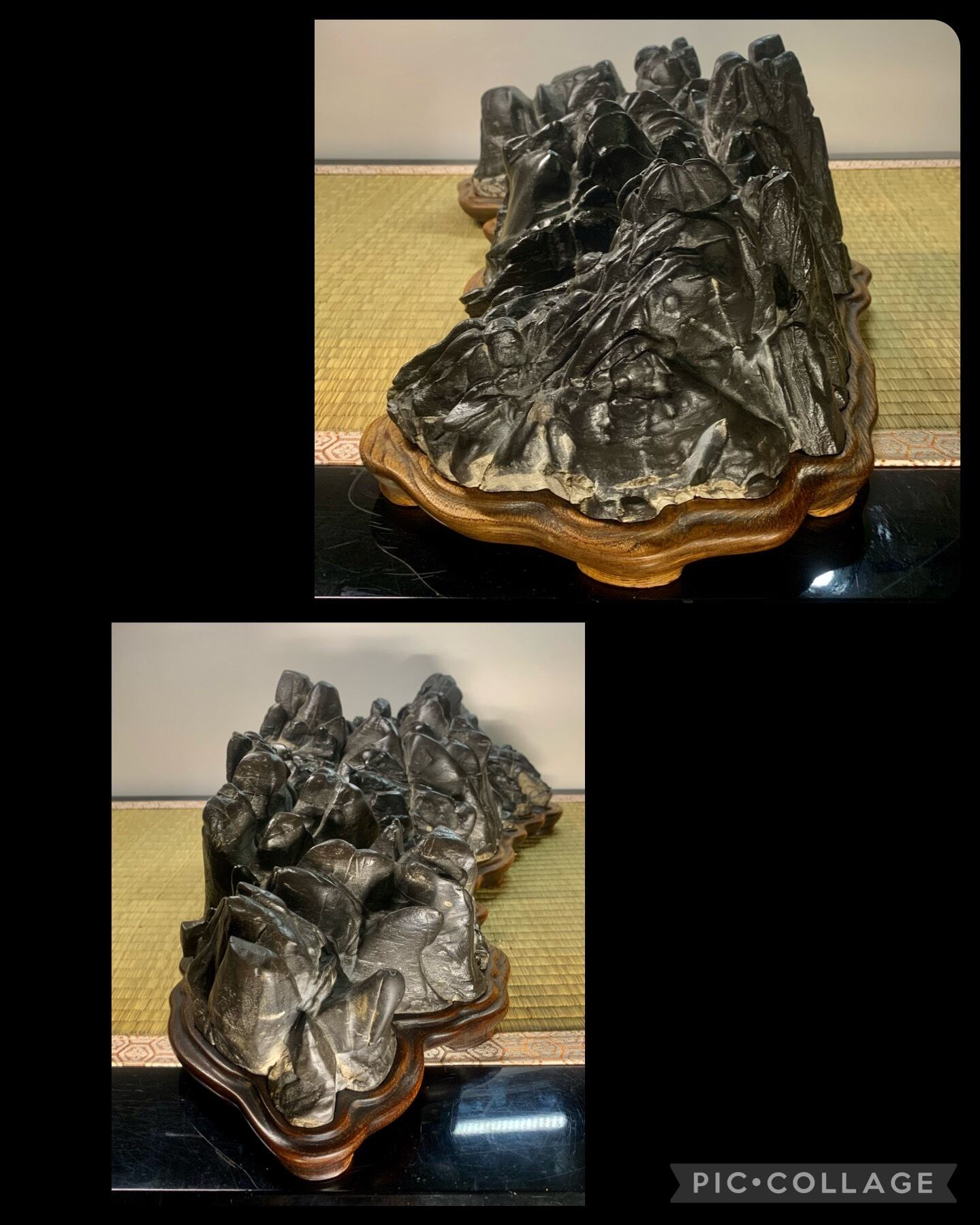 【信濃美術石博物館】水石 4466 静岳石 横56×高18×奥行29(cm) 重量:18.05kg(台座込)