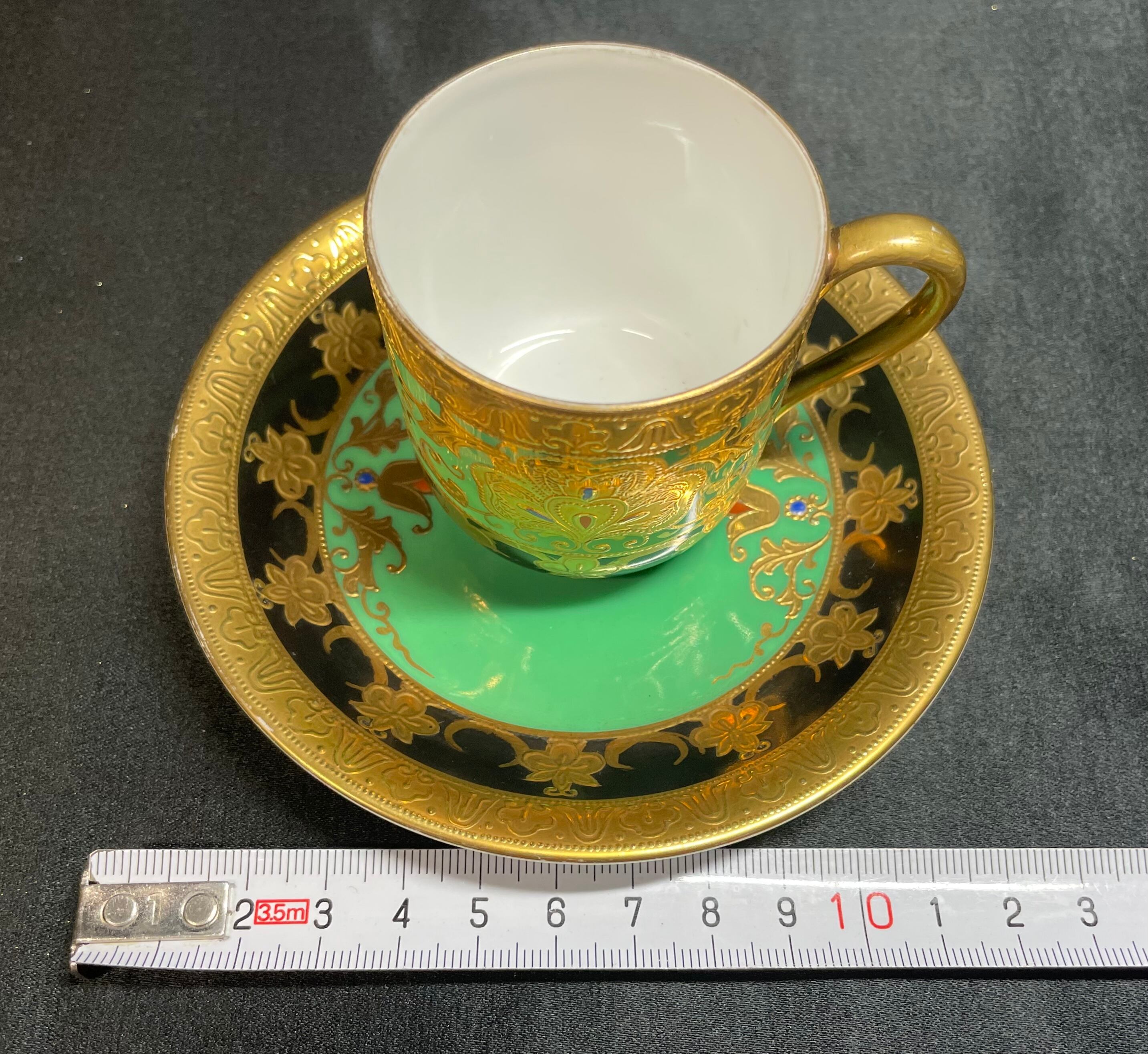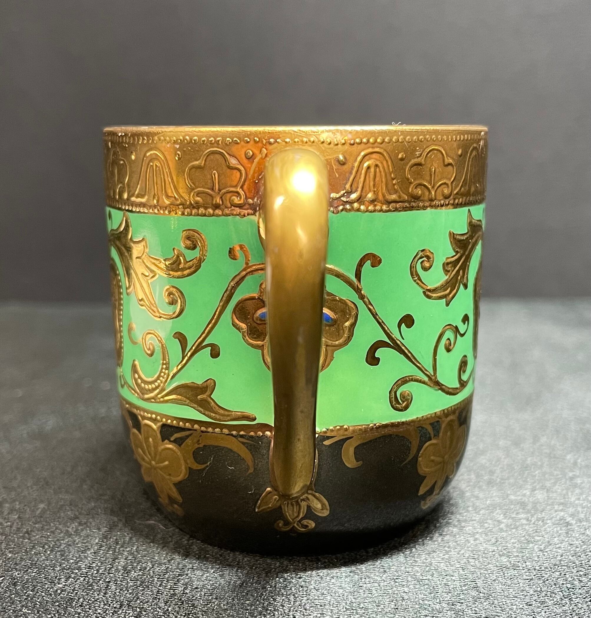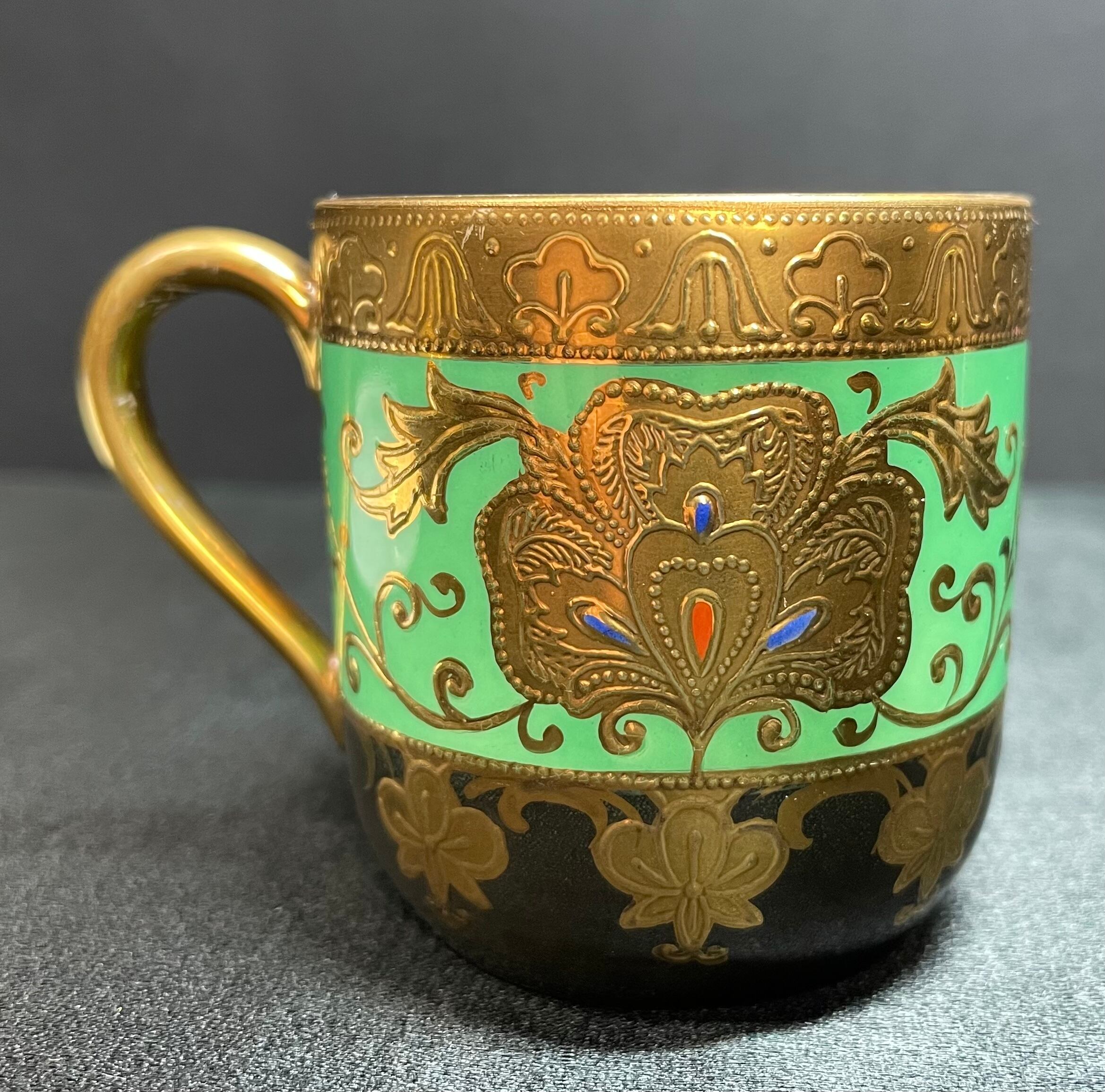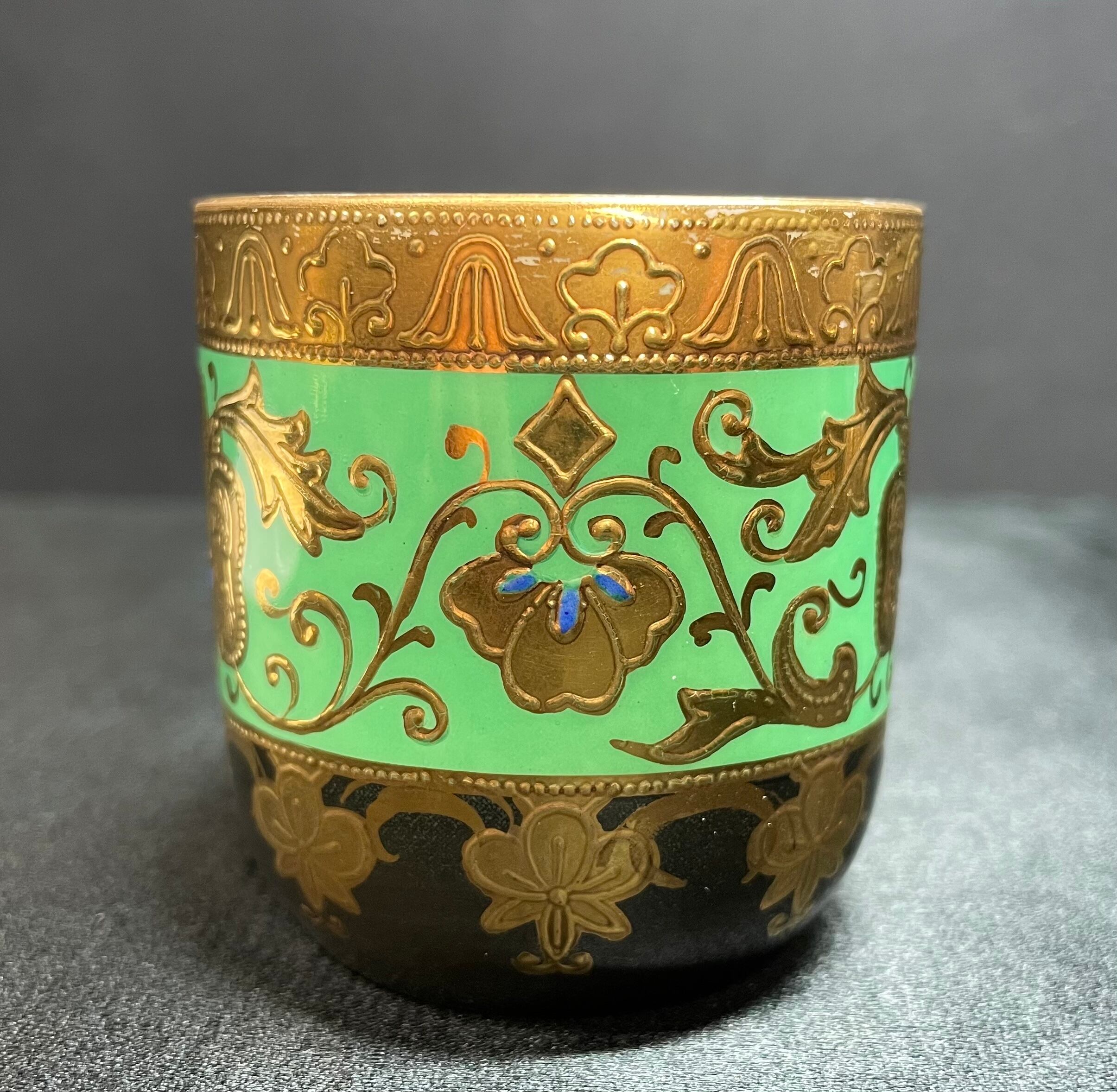 ※完品※【信濃美術石博物館】 アンティーク 骨董 オールドノリタケ Noritake 金盛上碧地エナメル華更紗紋図 キャビネットカップ japan 1930(昭和5年)頃 逆輸入 A0011 | 信濃美術石博物館