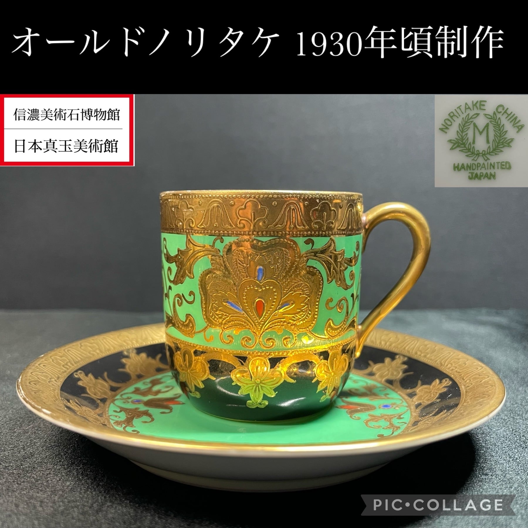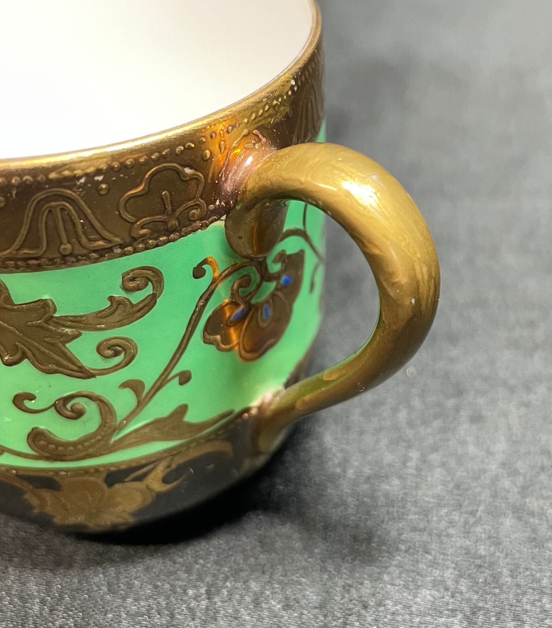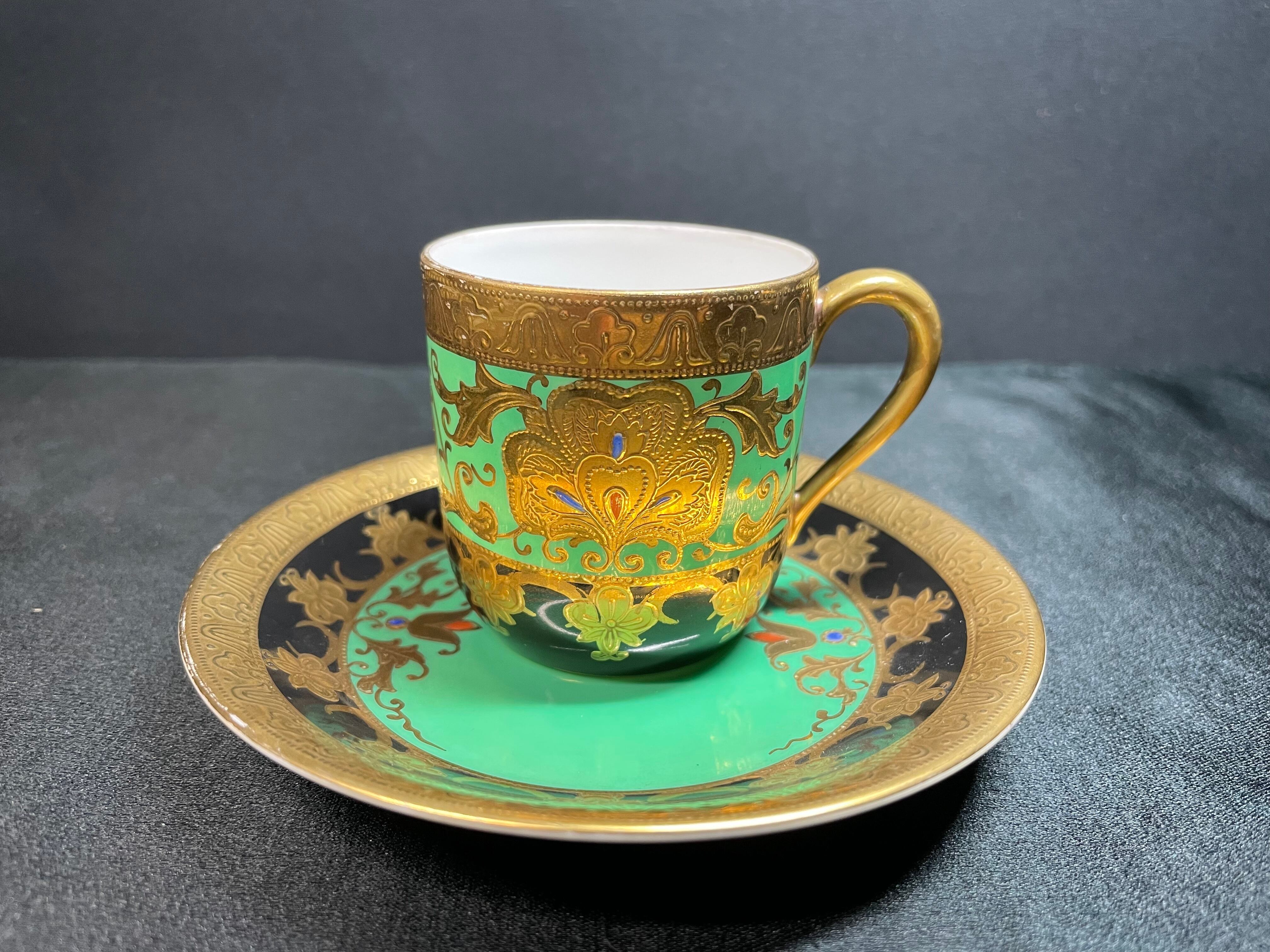 ※完品※【信濃美術石博物館】 アンティーク 骨董 オールドノリタケ Noritake 金盛上碧地エナメル華更紗紋図 キャビネットカップ japan 1930(昭和5年)頃 逆輸入 A0011 | 信濃美術石博物館