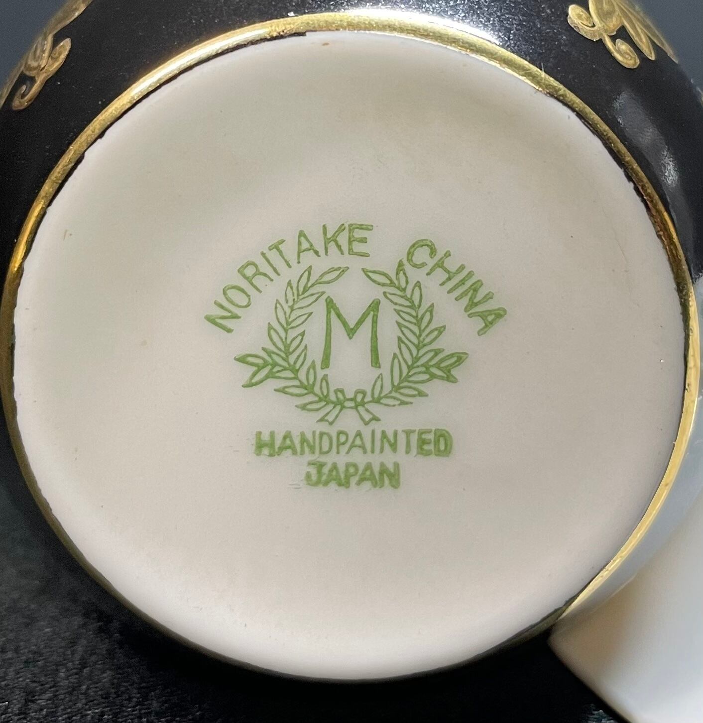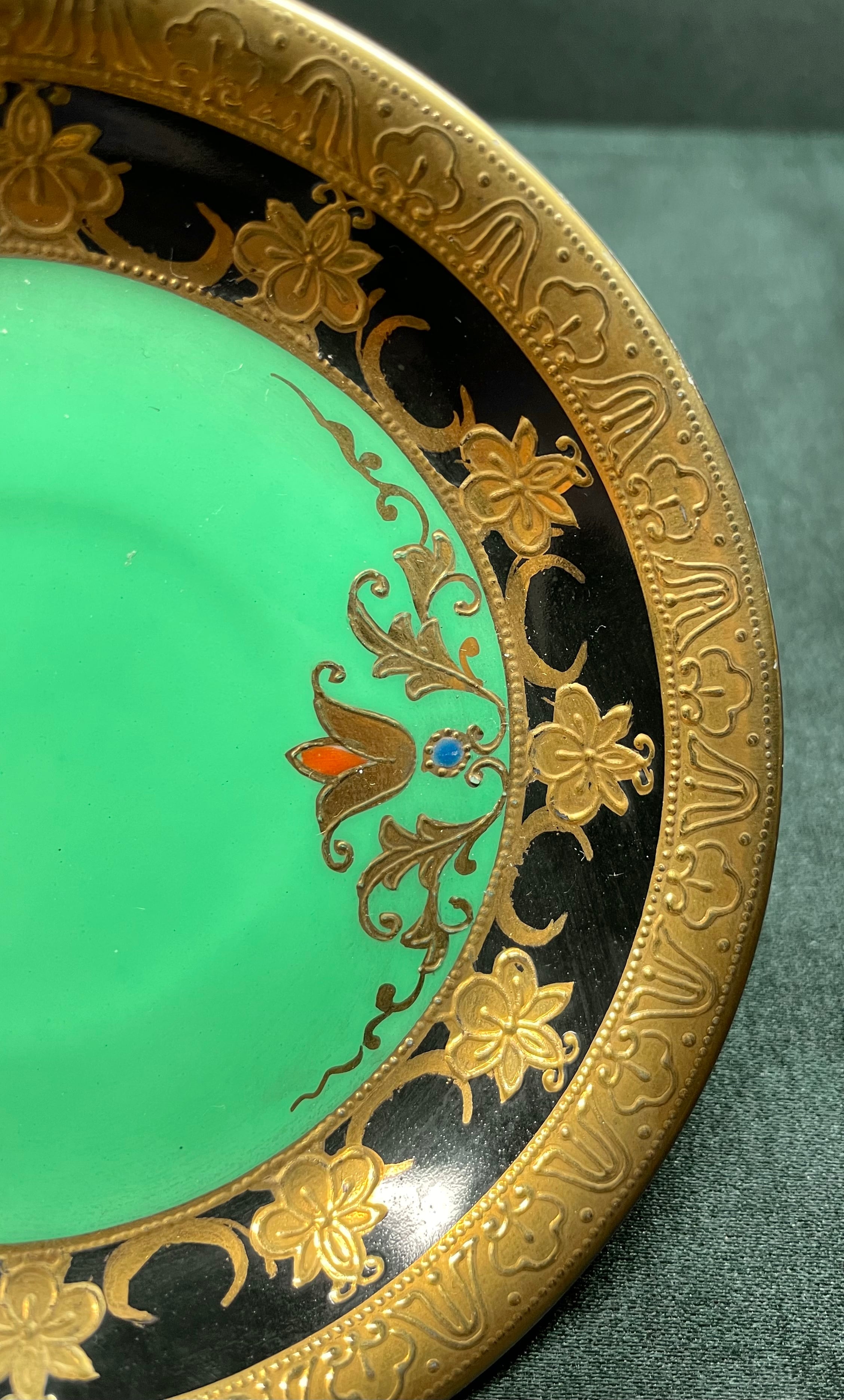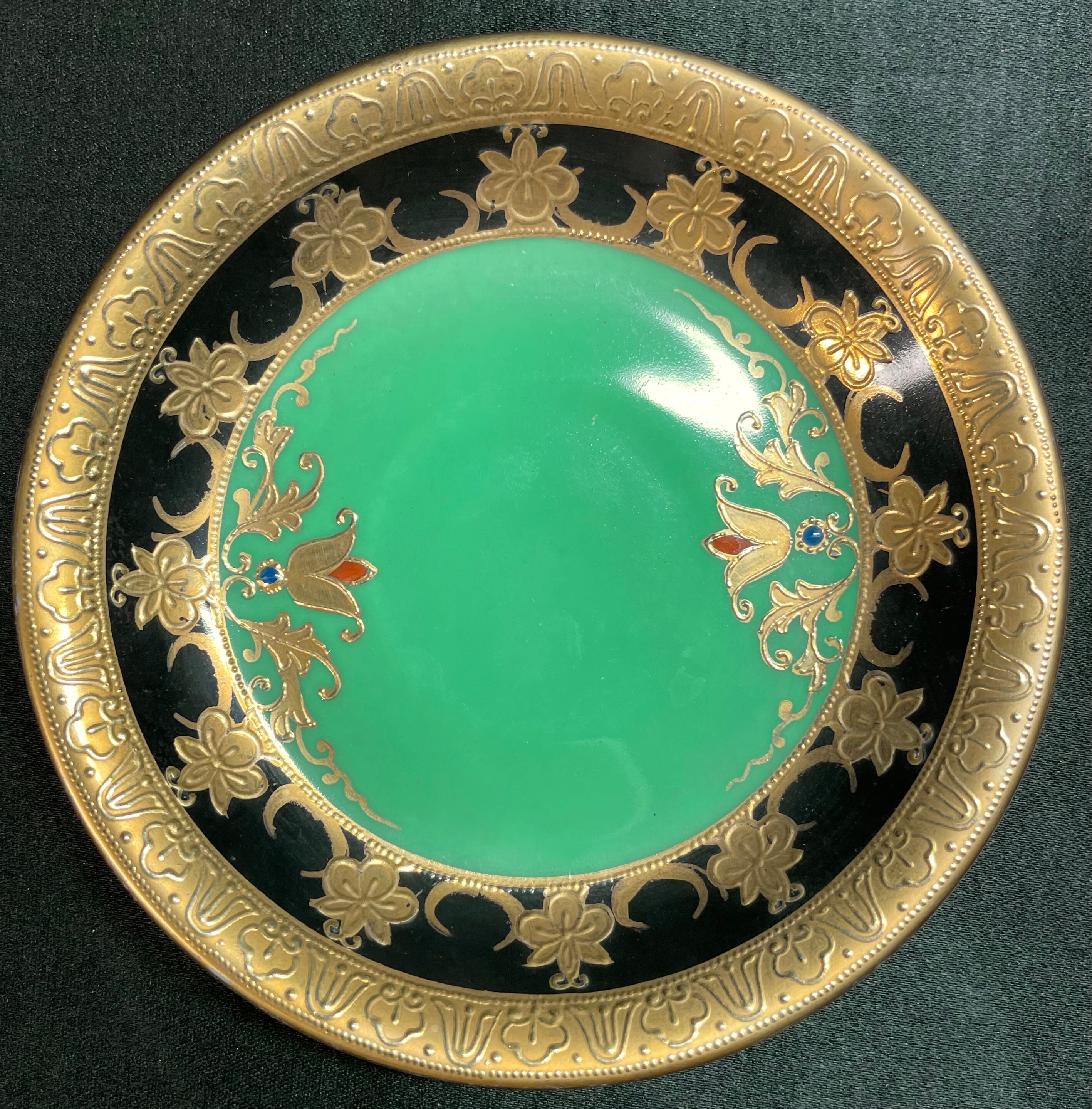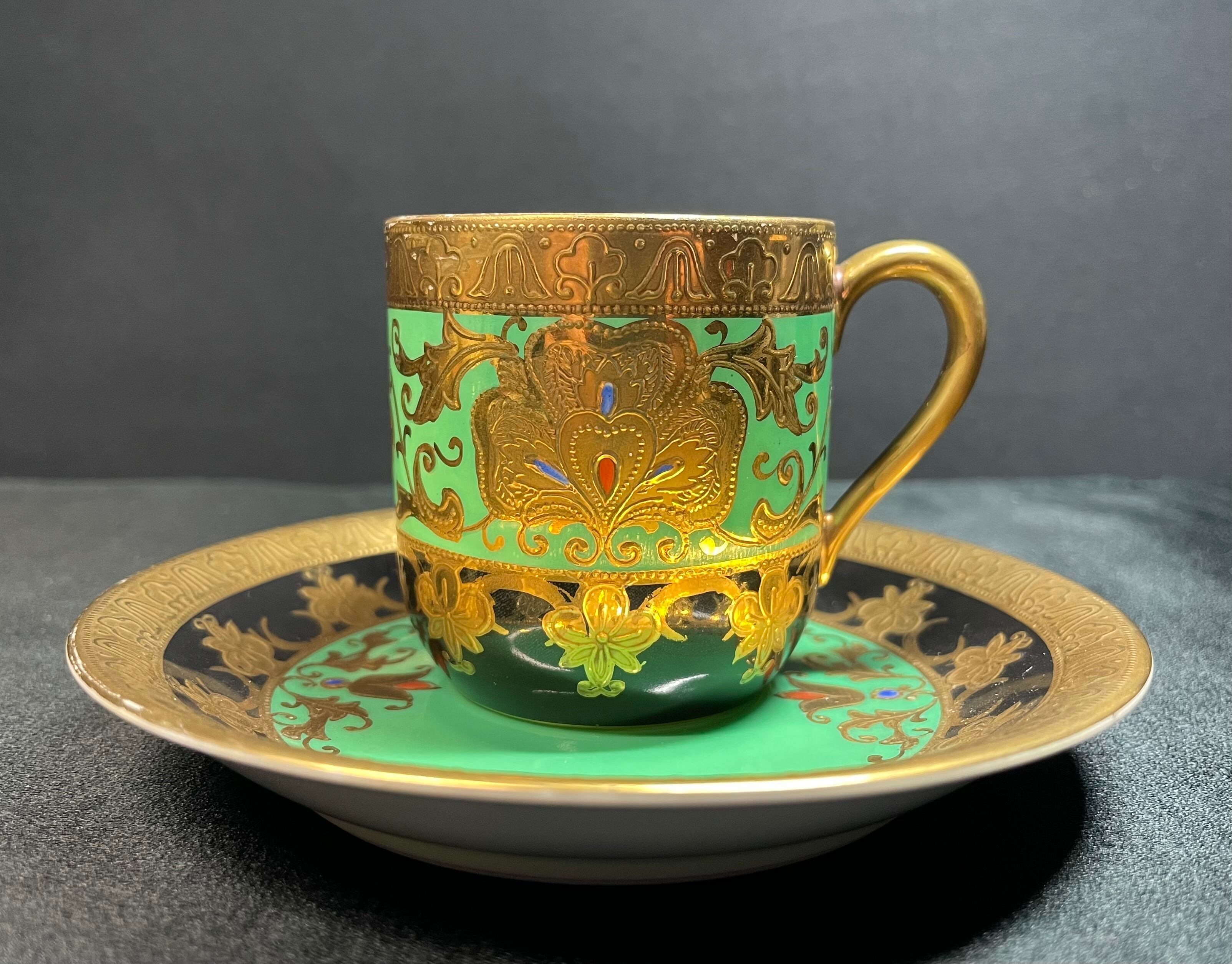 ※完品※【信濃美術石博物館】 アンティーク 骨董 オールドノリタケ Noritake 金盛上碧地エナメル華更紗紋図 キャビネットカップ japan 1930(昭和5年)頃 逆輸入 A0011 | 信濃美術石博物館