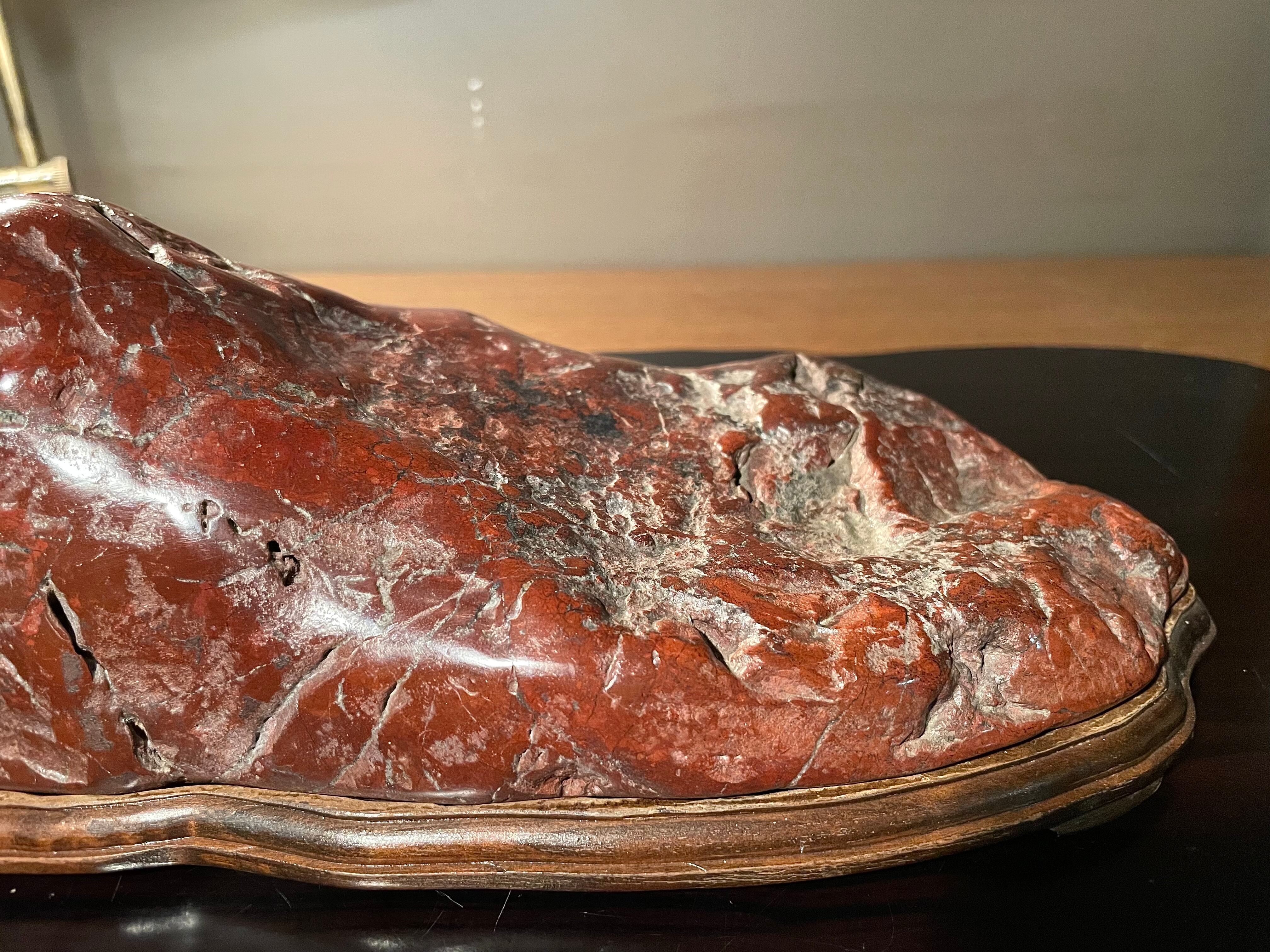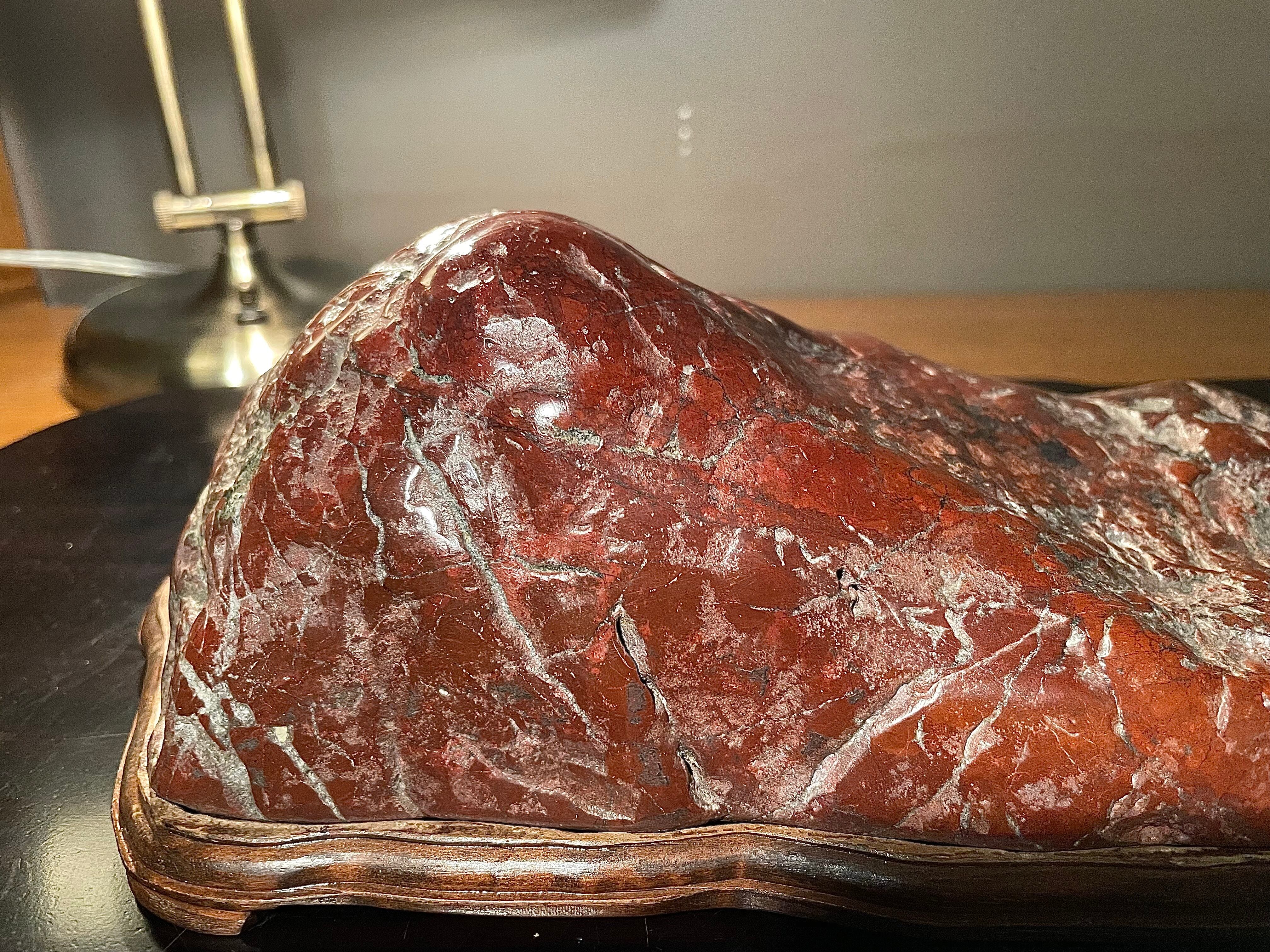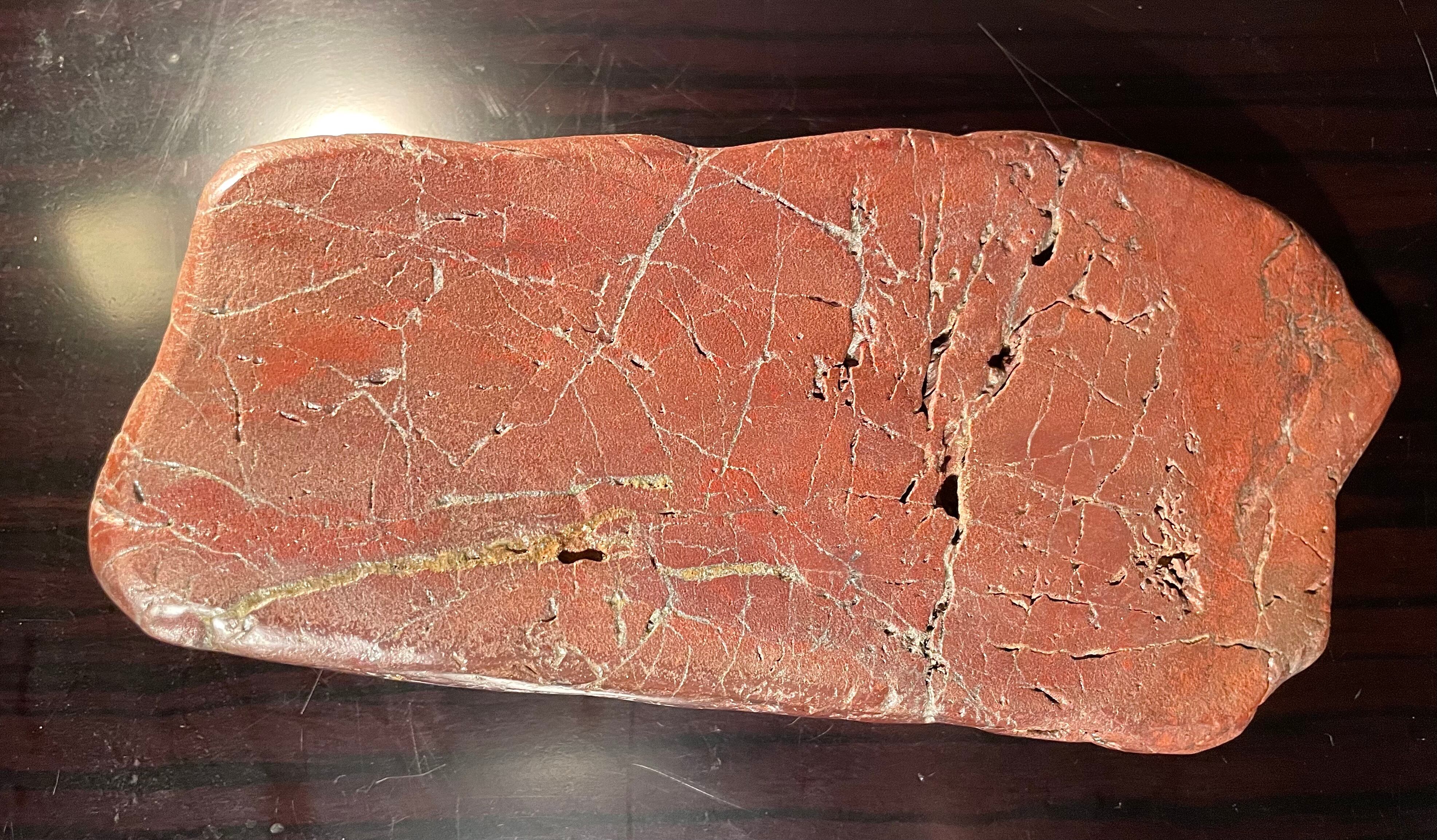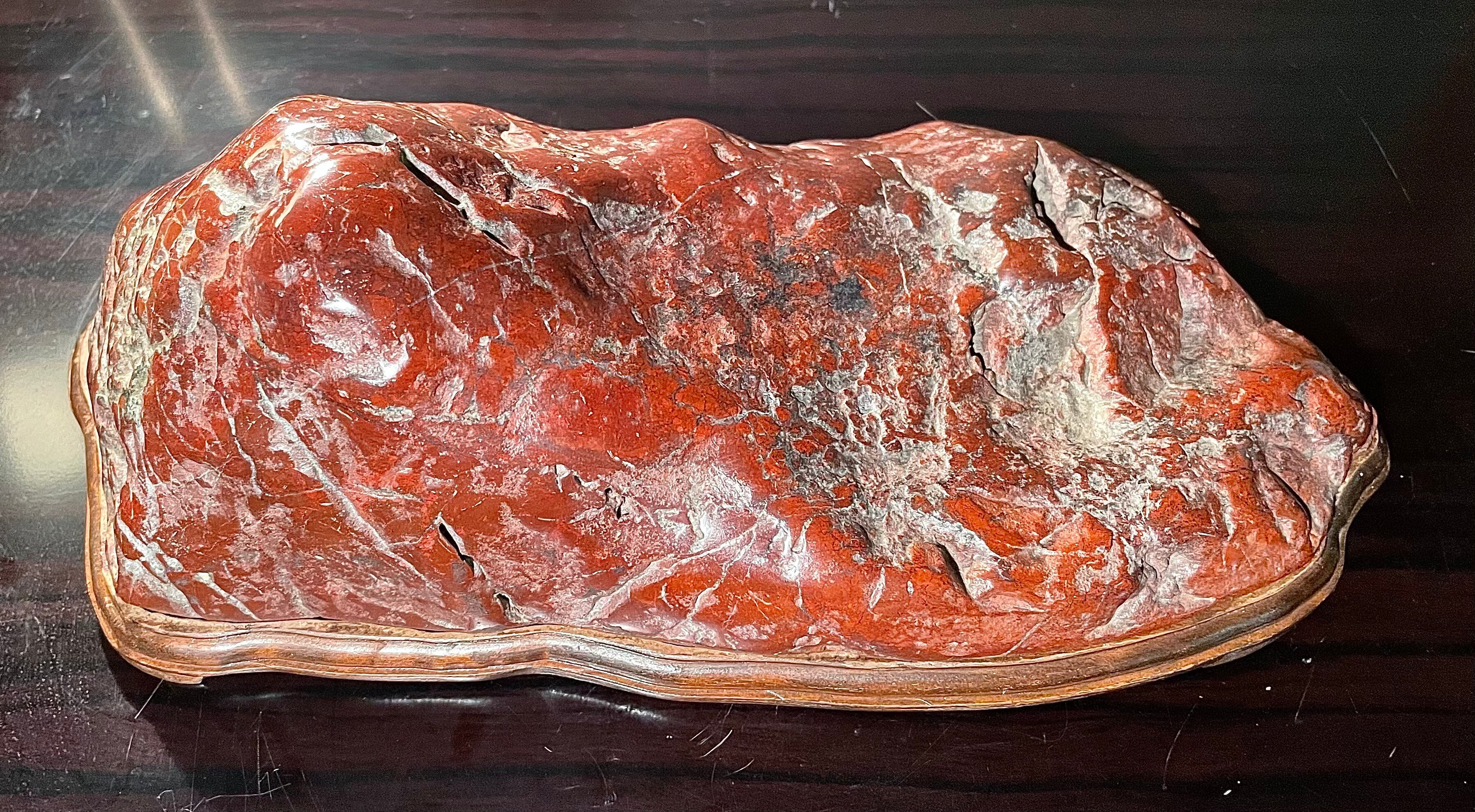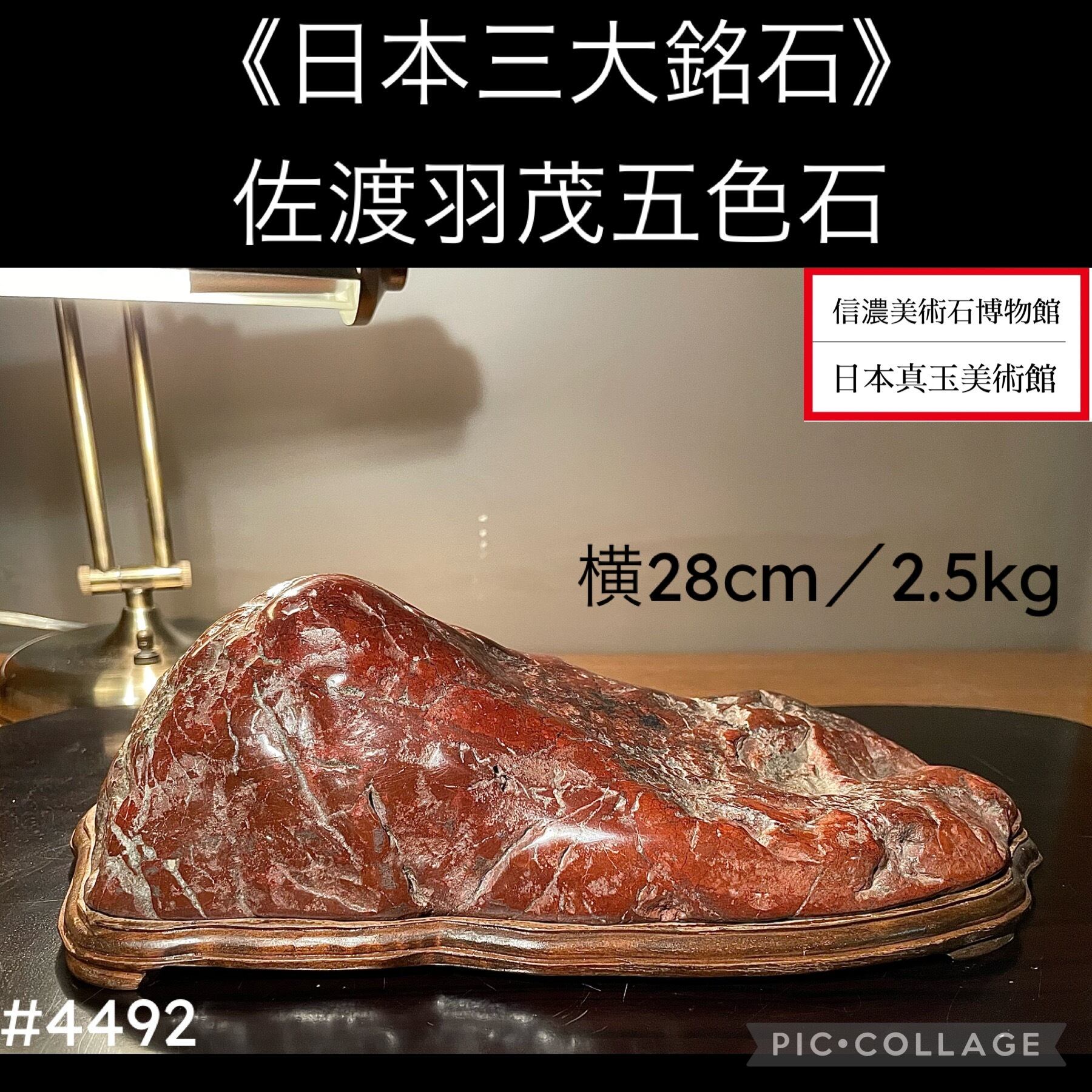 【信濃美術石博物館】 水石 盆栽 佐渡羽茂五色石 横28×高8.5(cm) 2.52kg 佐渡赤玉石 赤石 佐渡錦紅石 4492