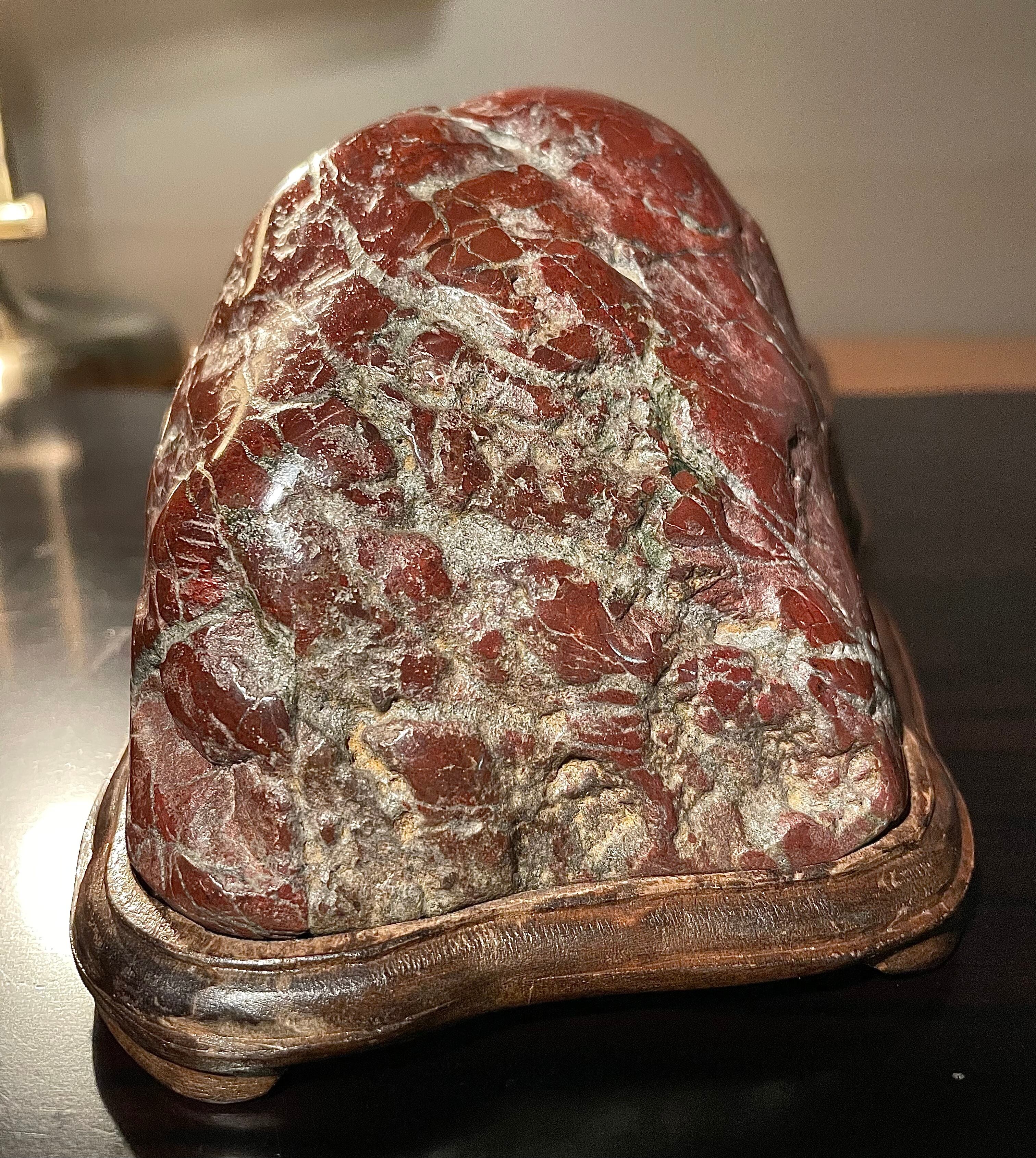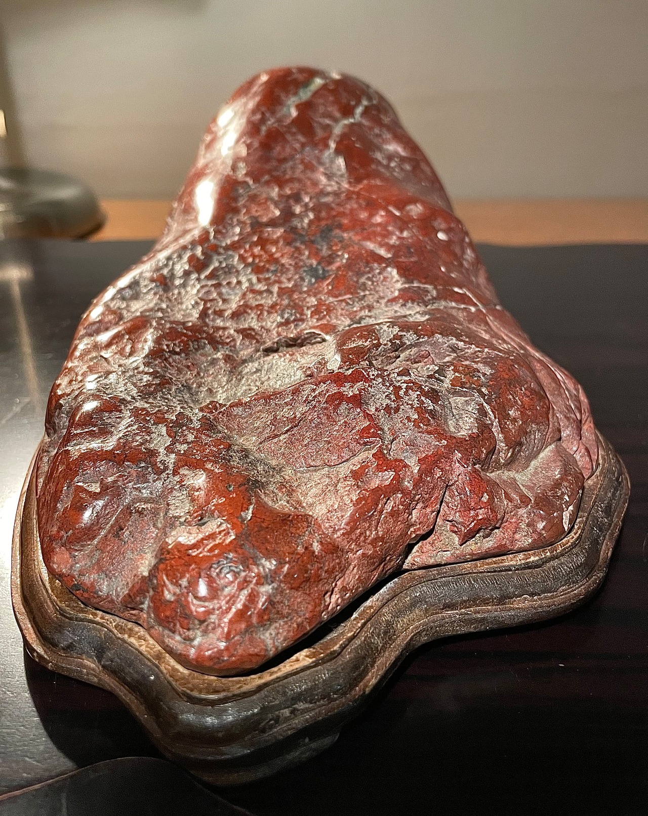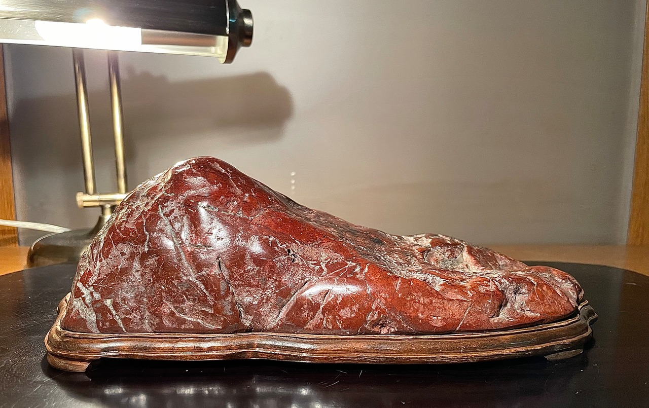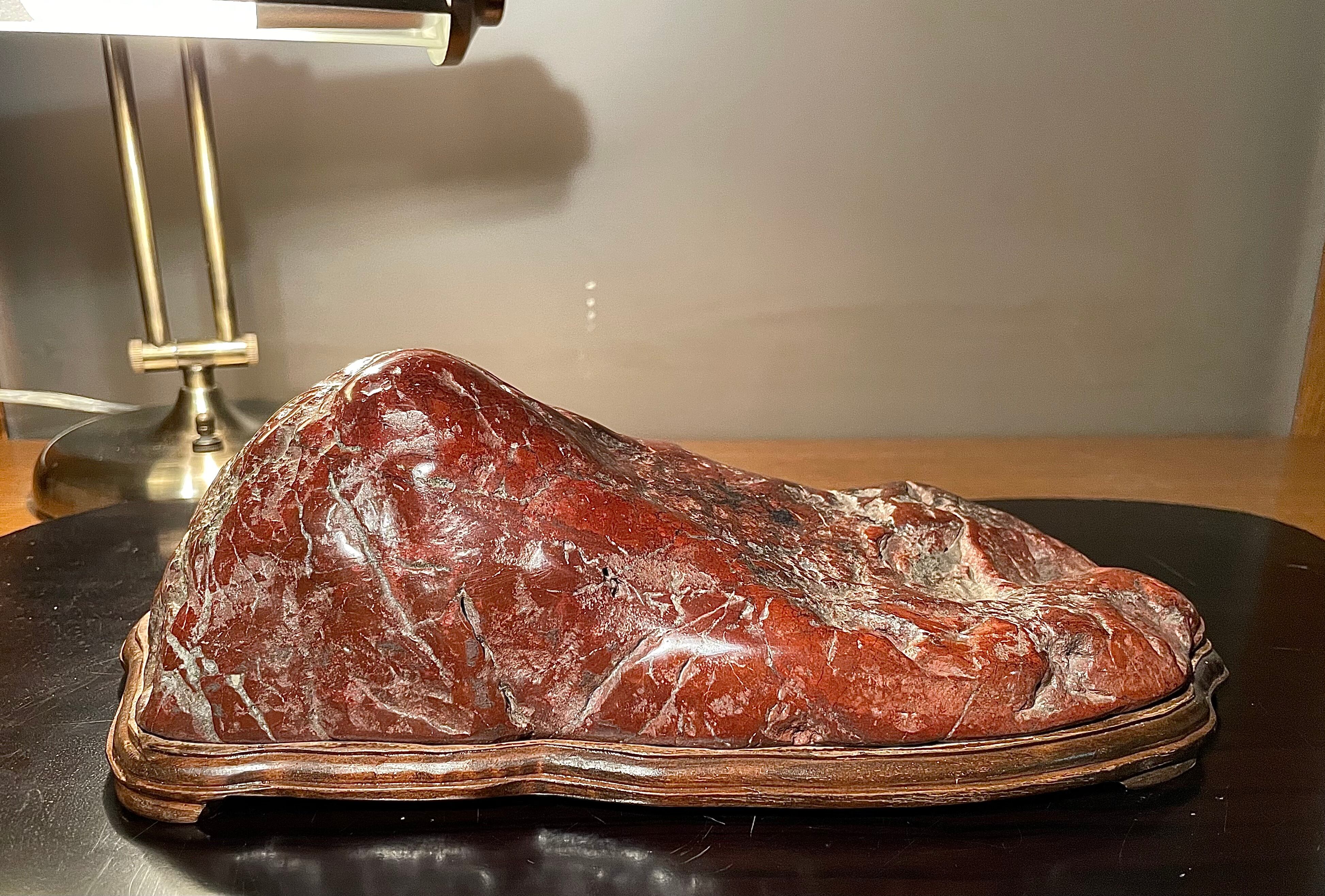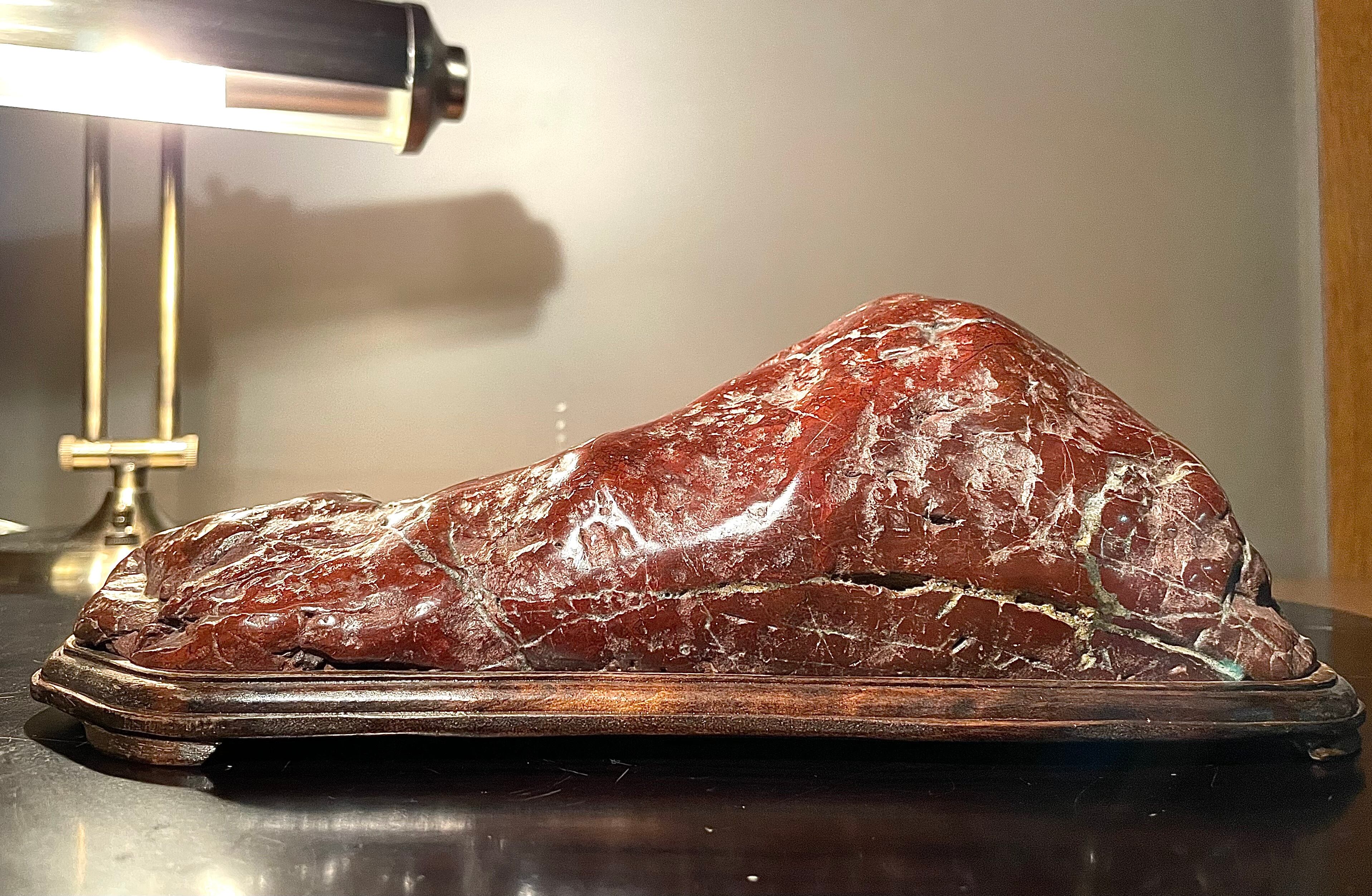 【信濃美術石博物館】 水石 盆栽 佐渡羽茂五色石 横28×高8.5(cm) 2.52kg 佐渡赤玉石 赤石 佐渡錦紅石 4492