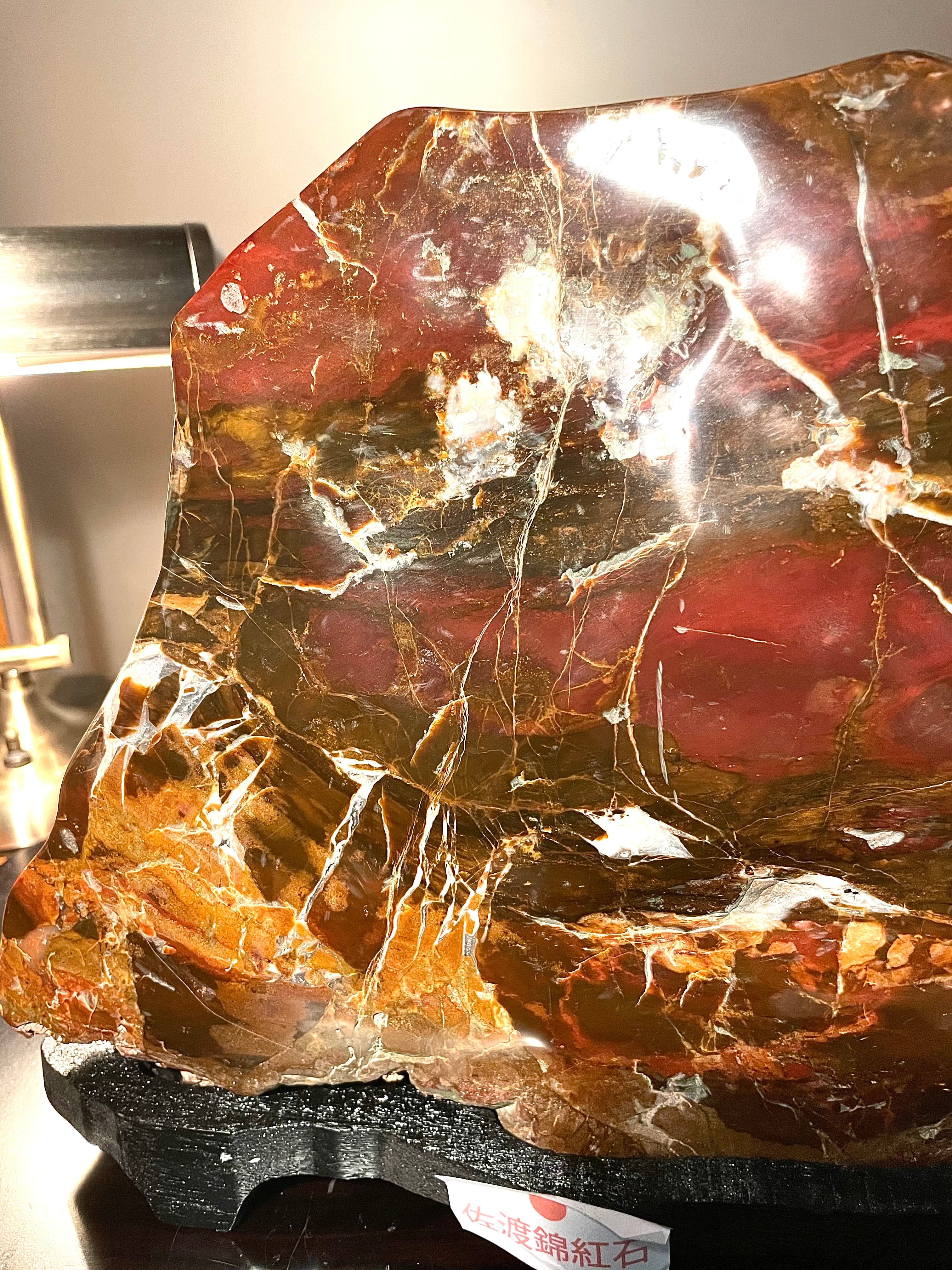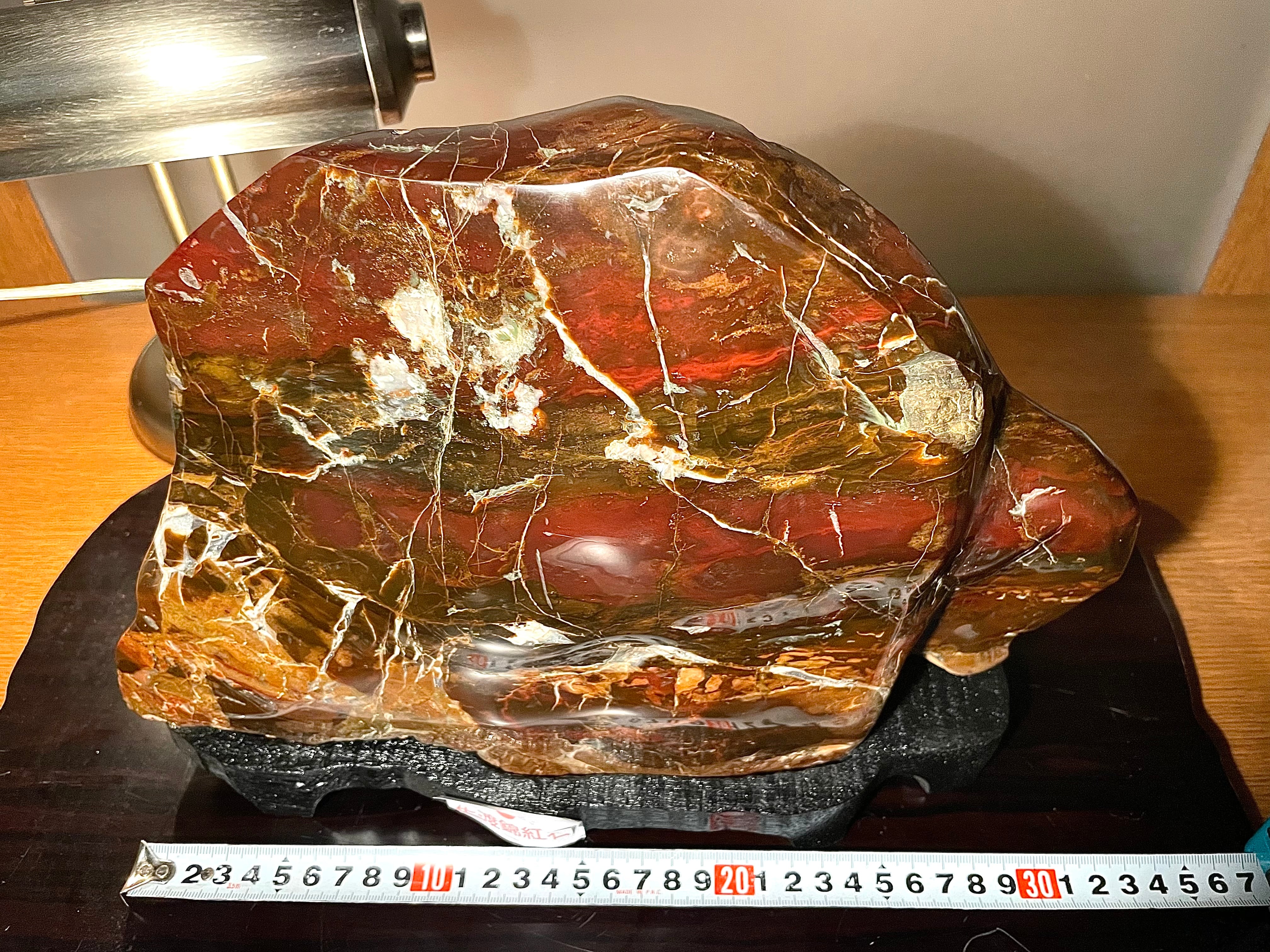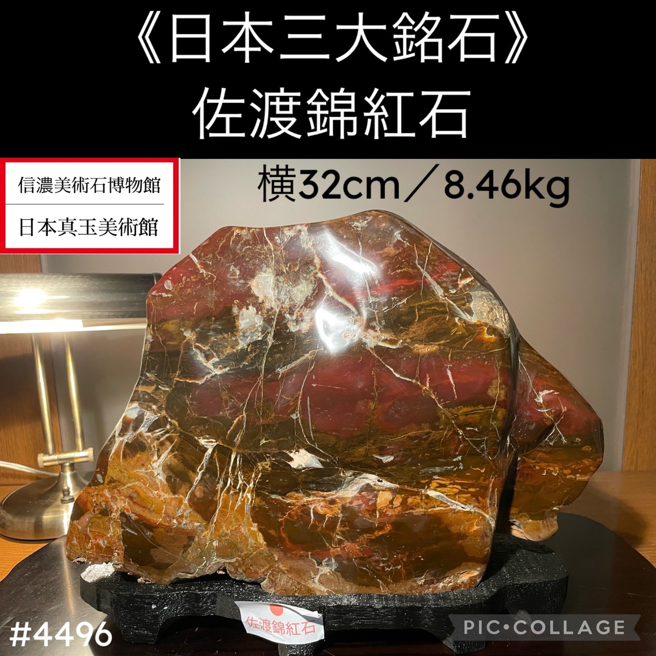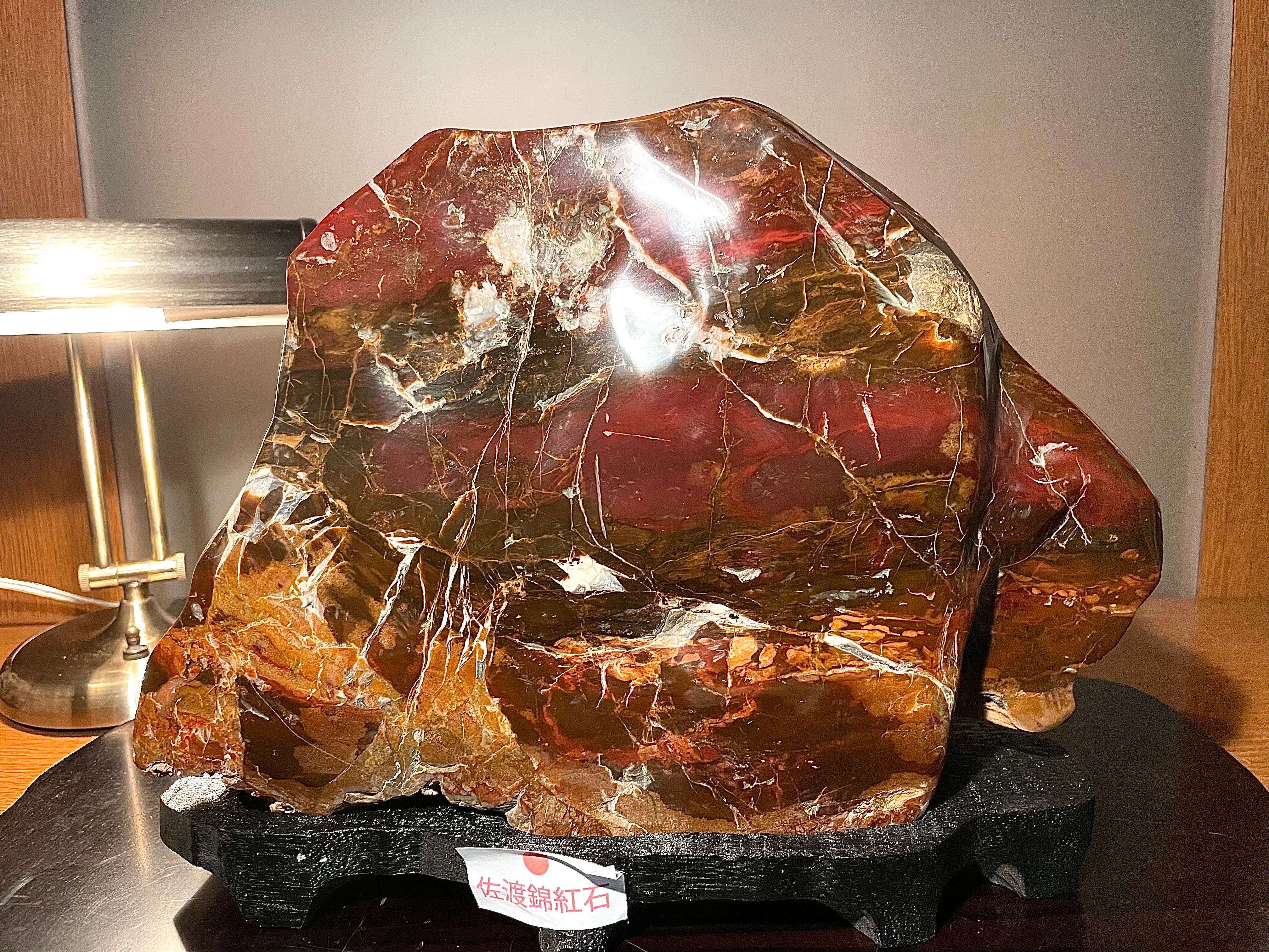 【信濃美術石博物館】水石 盆栽 佐渡錦紅石 日本三大銘石 横32×高24×奥行11(cm)8.46kg 佐渡赤玉石 赤石 4496