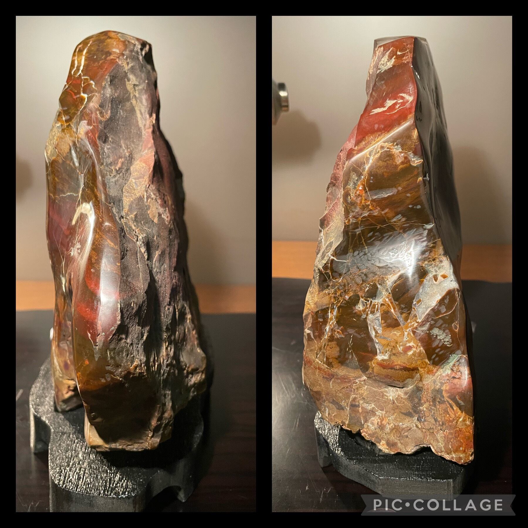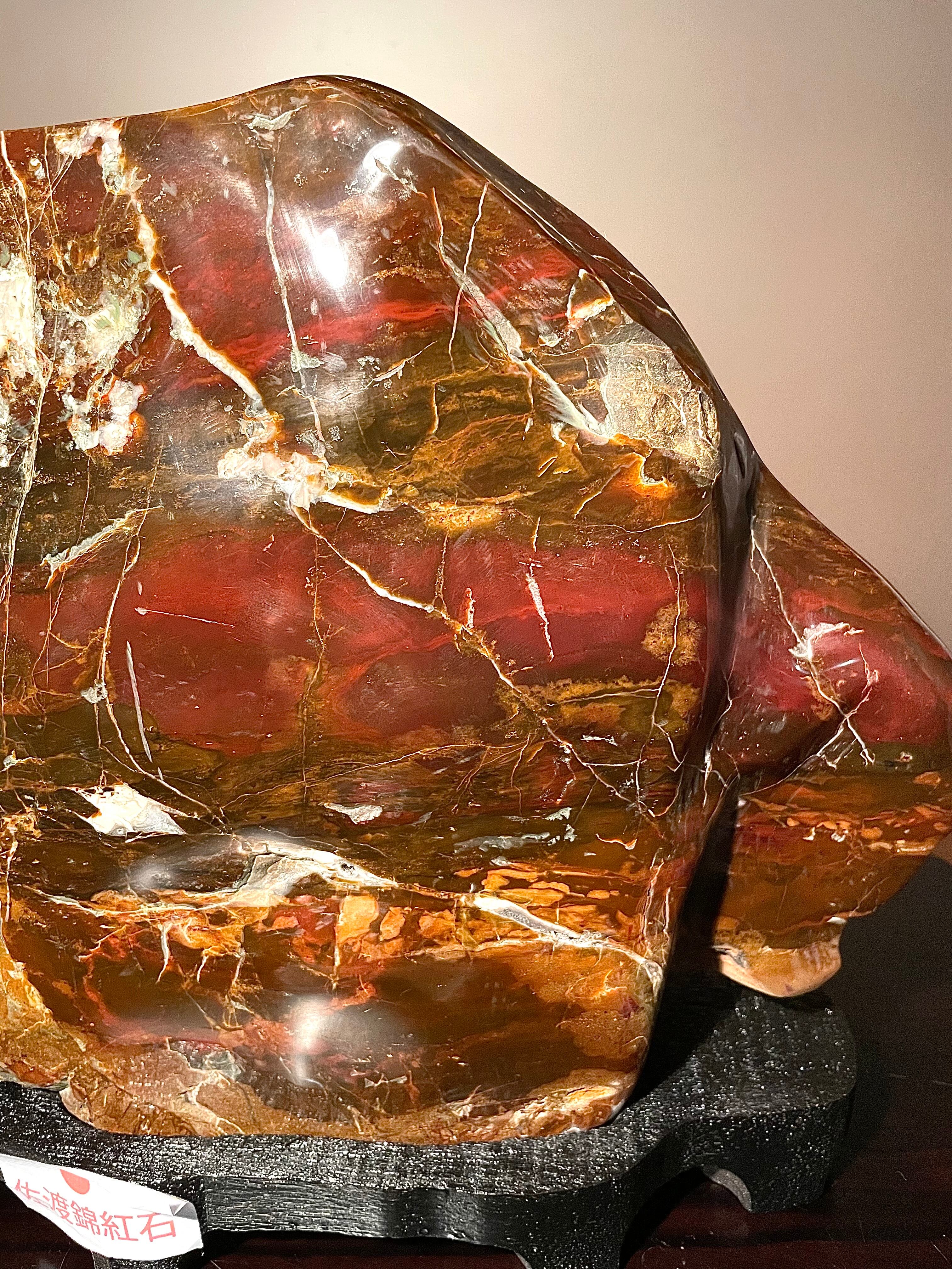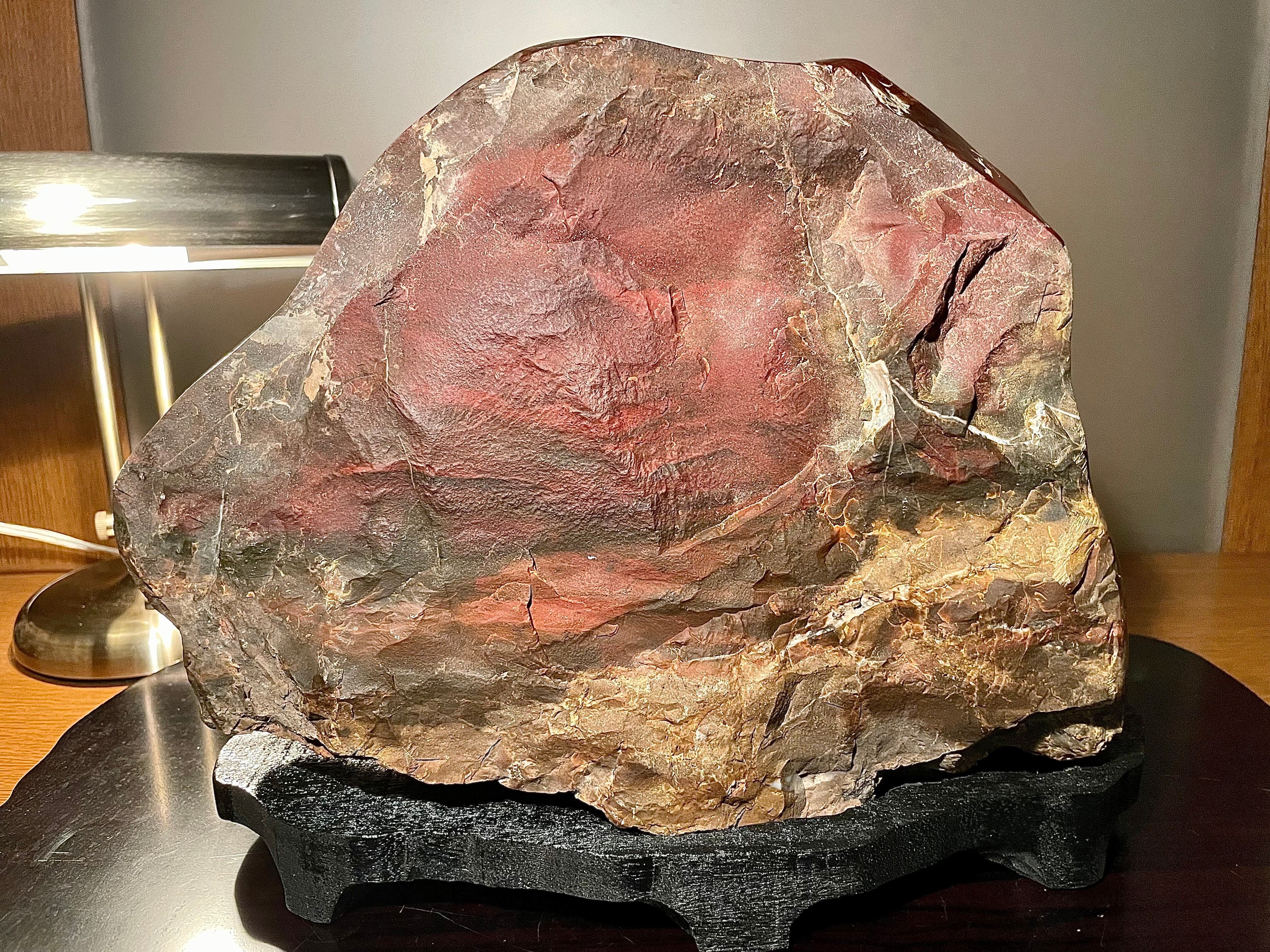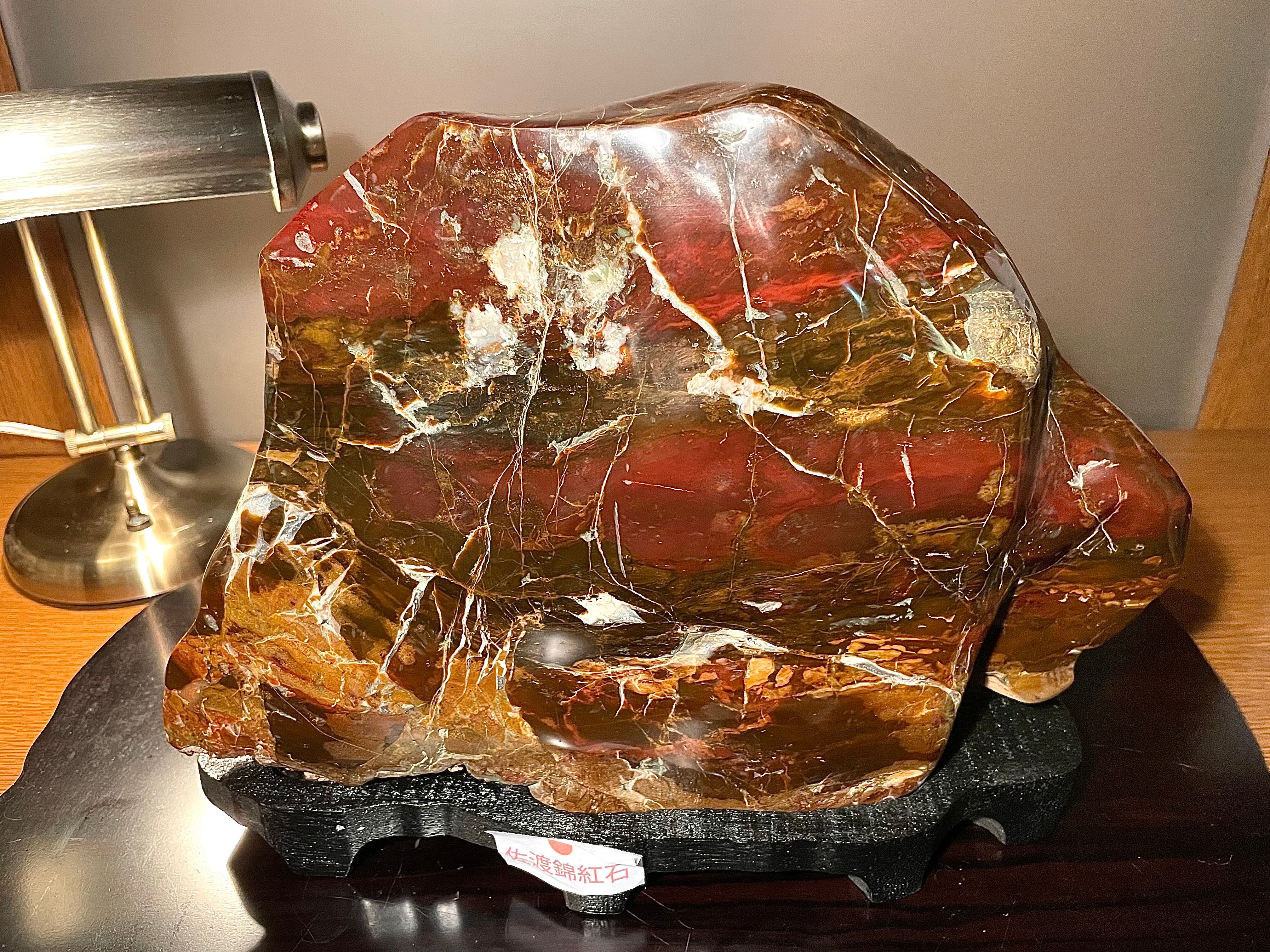 【信濃美術石博物館】水石 盆栽 佐渡錦紅石 日本三大銘石 横32×高24×奥行11(cm)8.46kg 佐渡赤玉石 赤石 4496