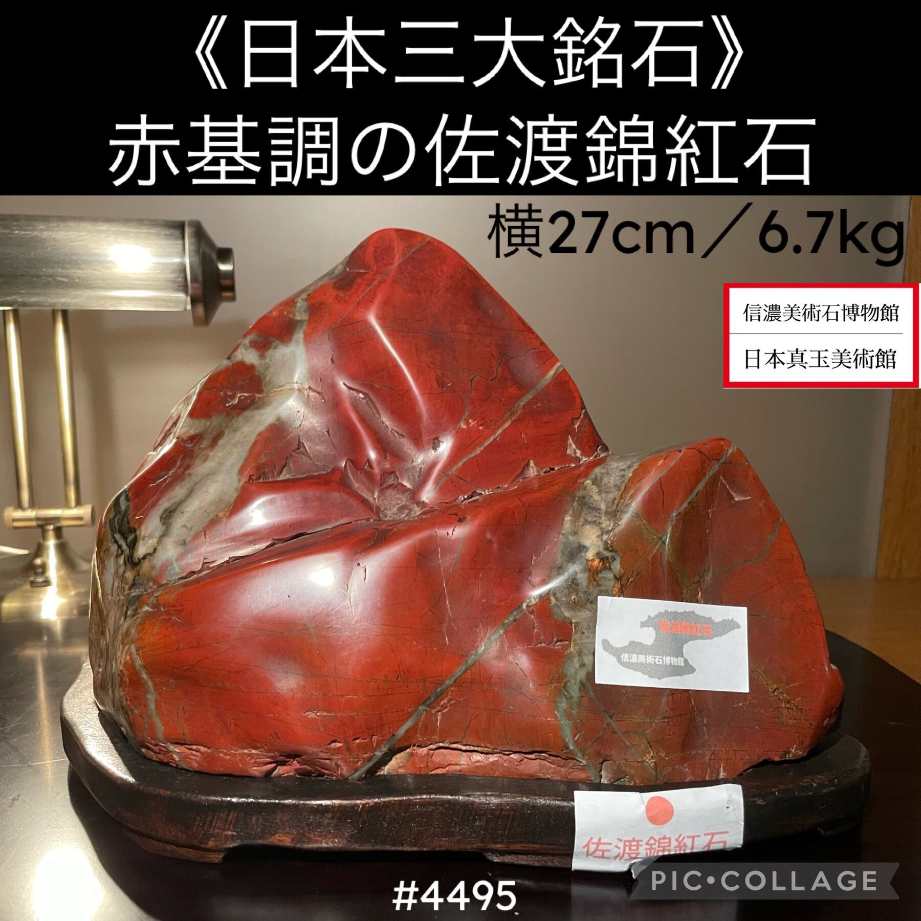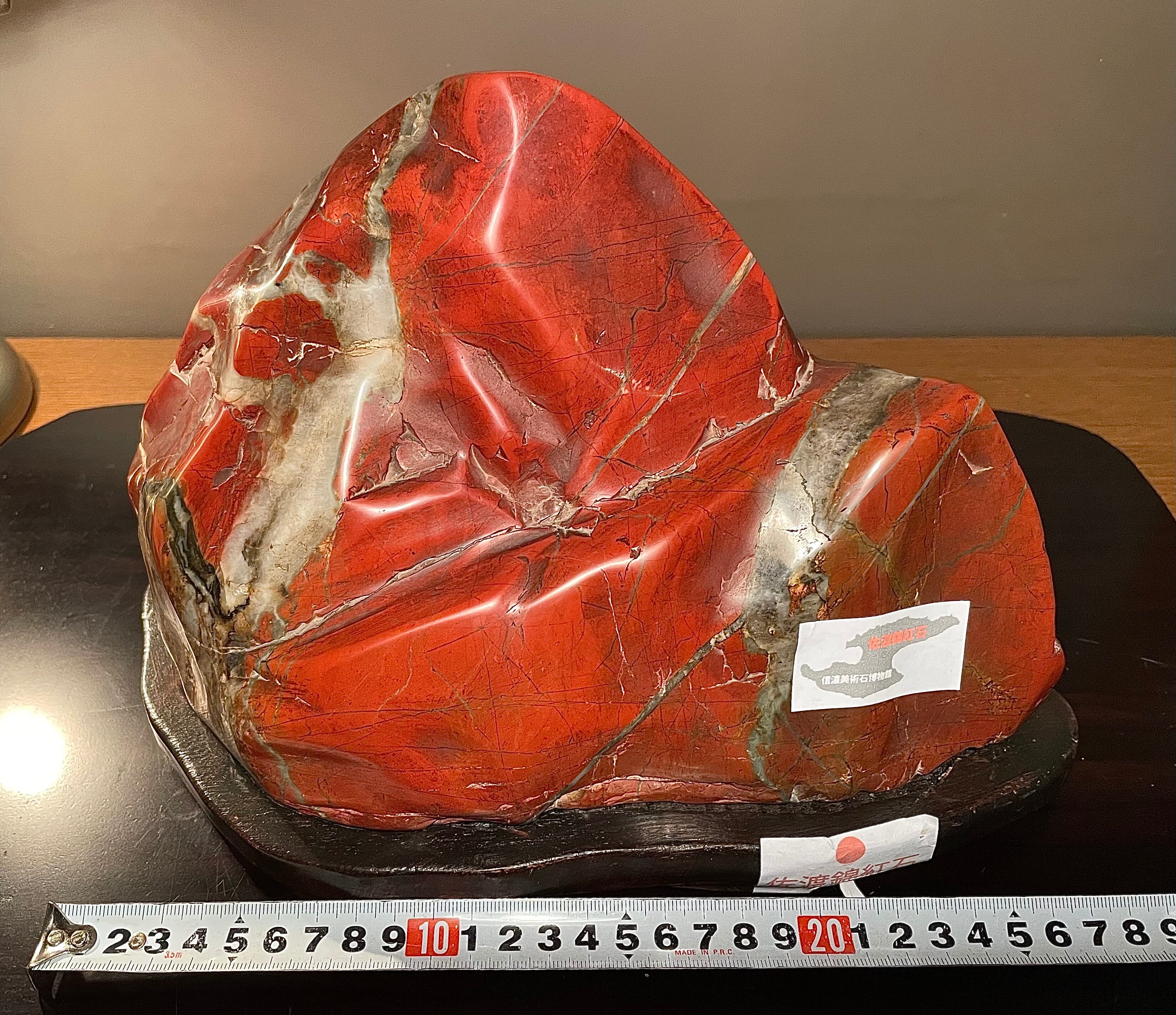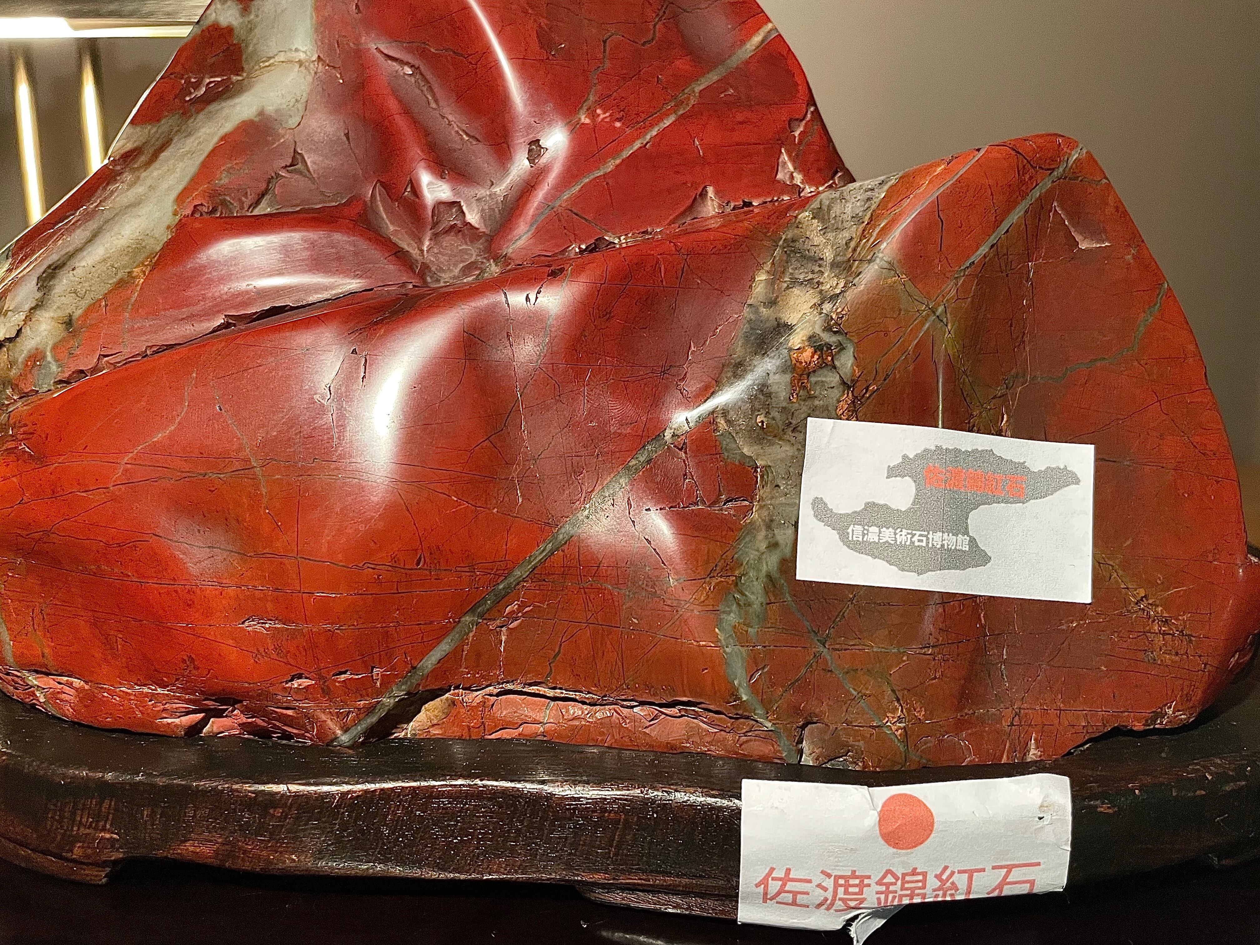 【信濃美術石博物館】水石 盆栽 赤基調の 佐渡錦紅石 日本三大銘石 横27×高19×奥行15(cm)6.7kg佐渡赤玉石 赤石 4495