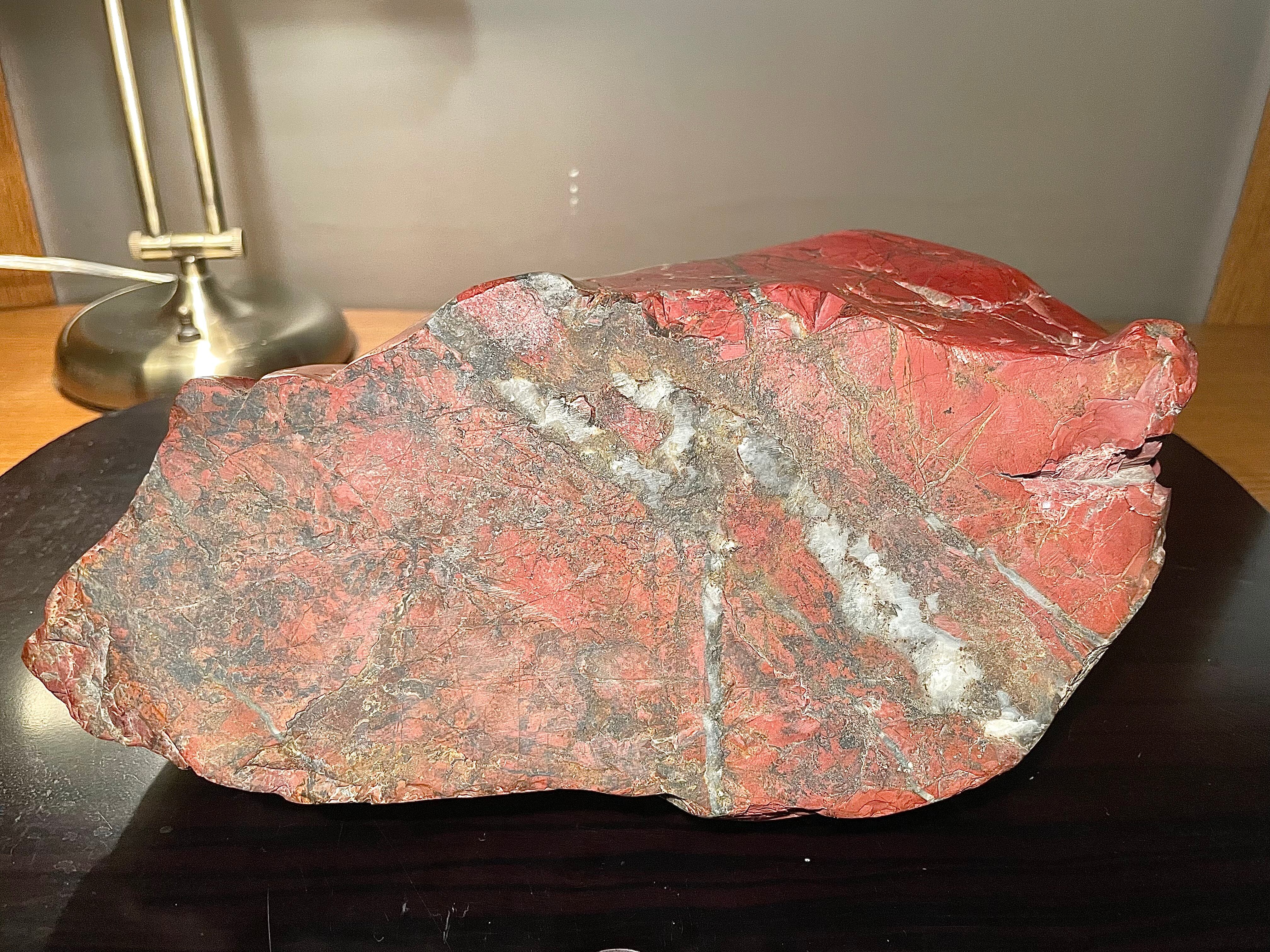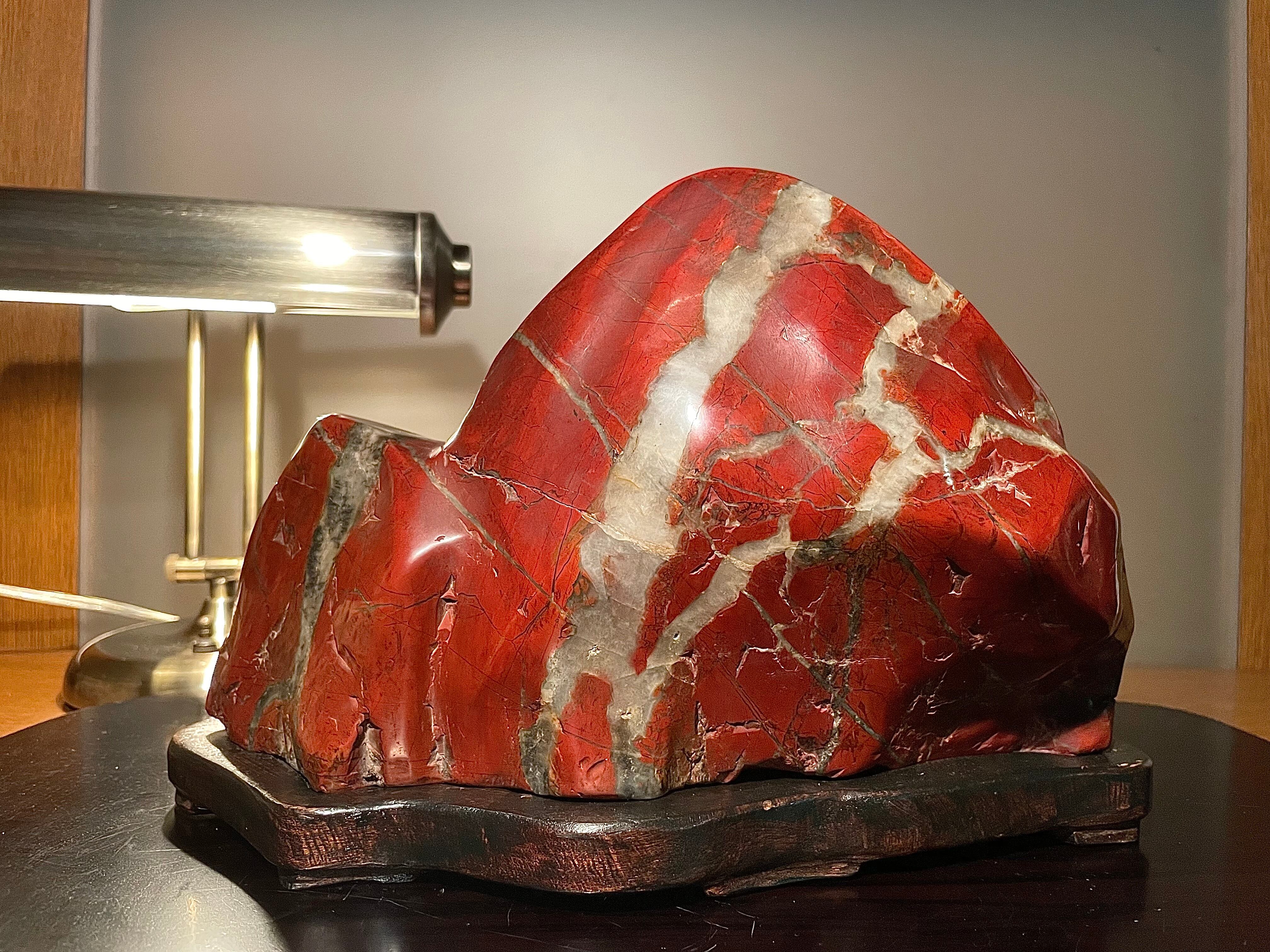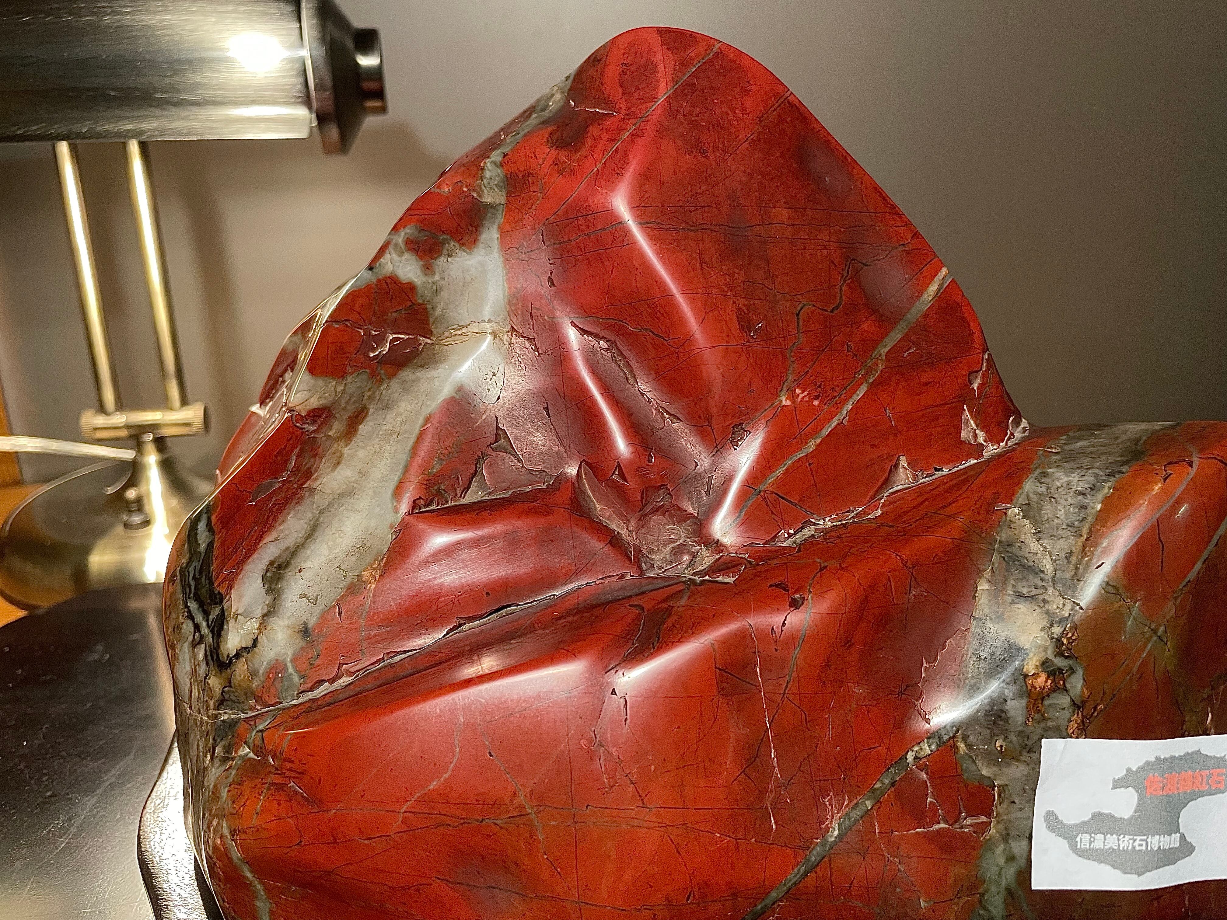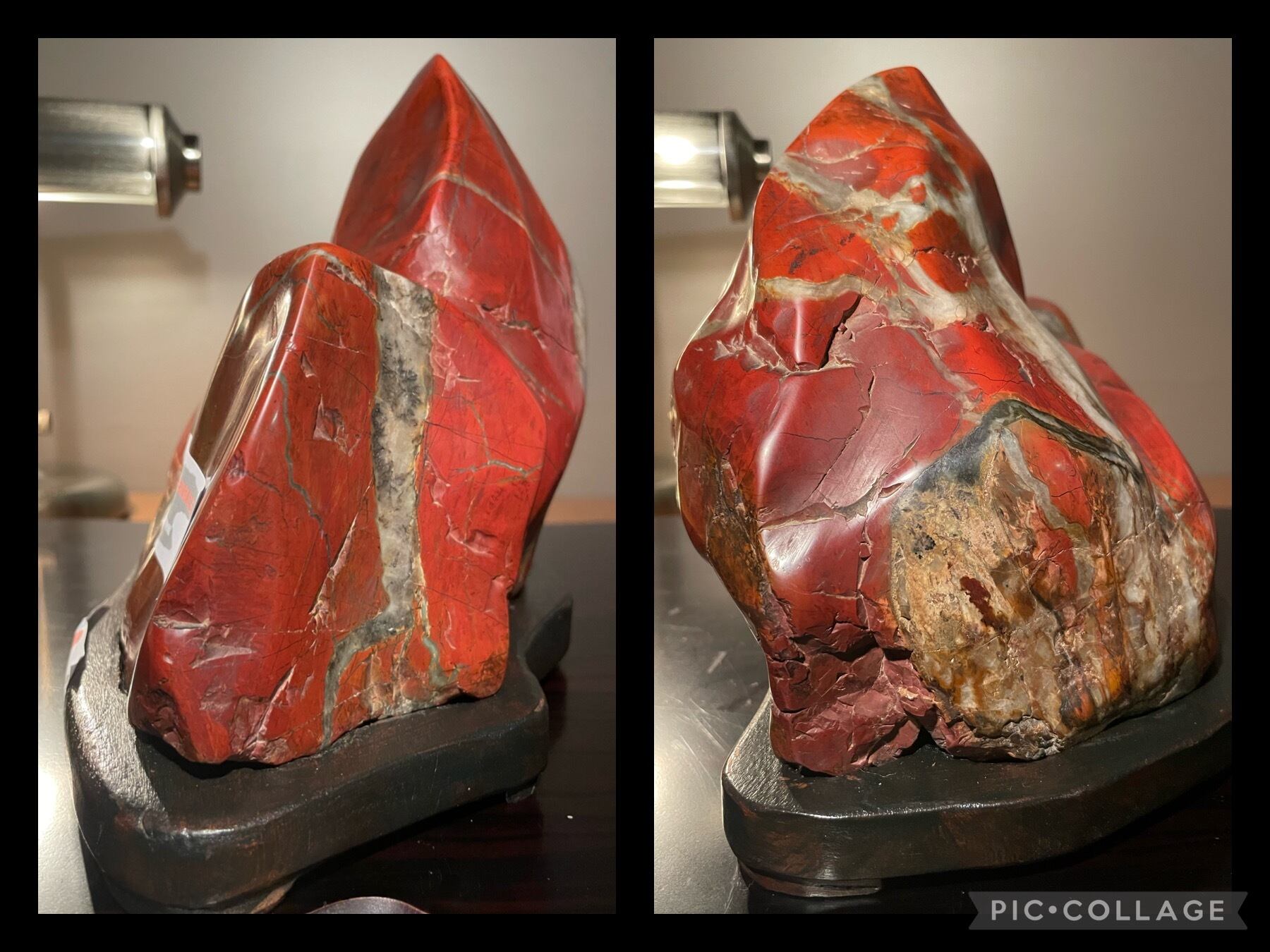 【信濃美術石博物館】水石 盆栽 赤基調の 佐渡錦紅石 日本三大銘石 横27×高19×奥行15(cm)6.7kg佐渡赤玉石 赤石 4495