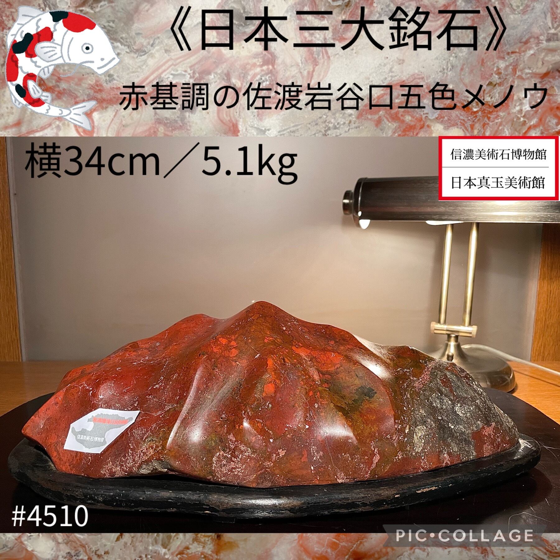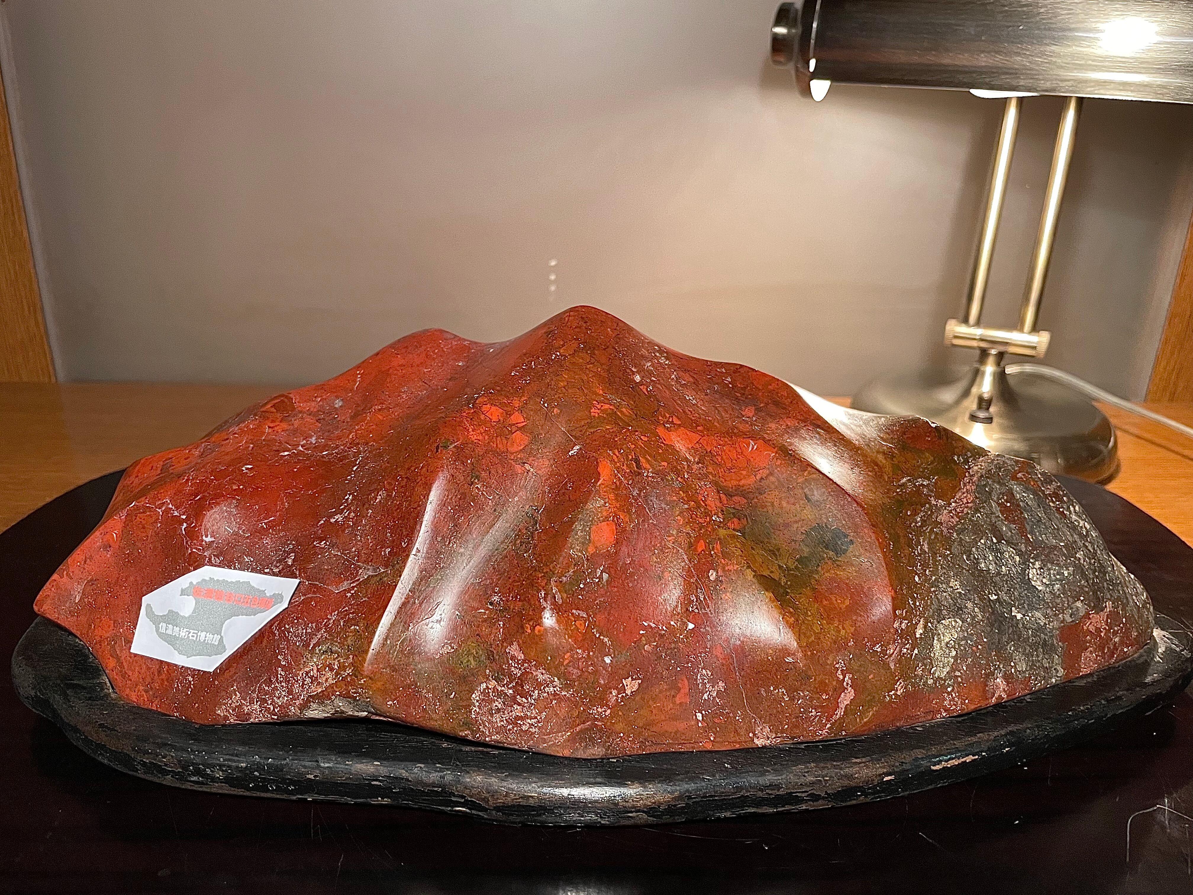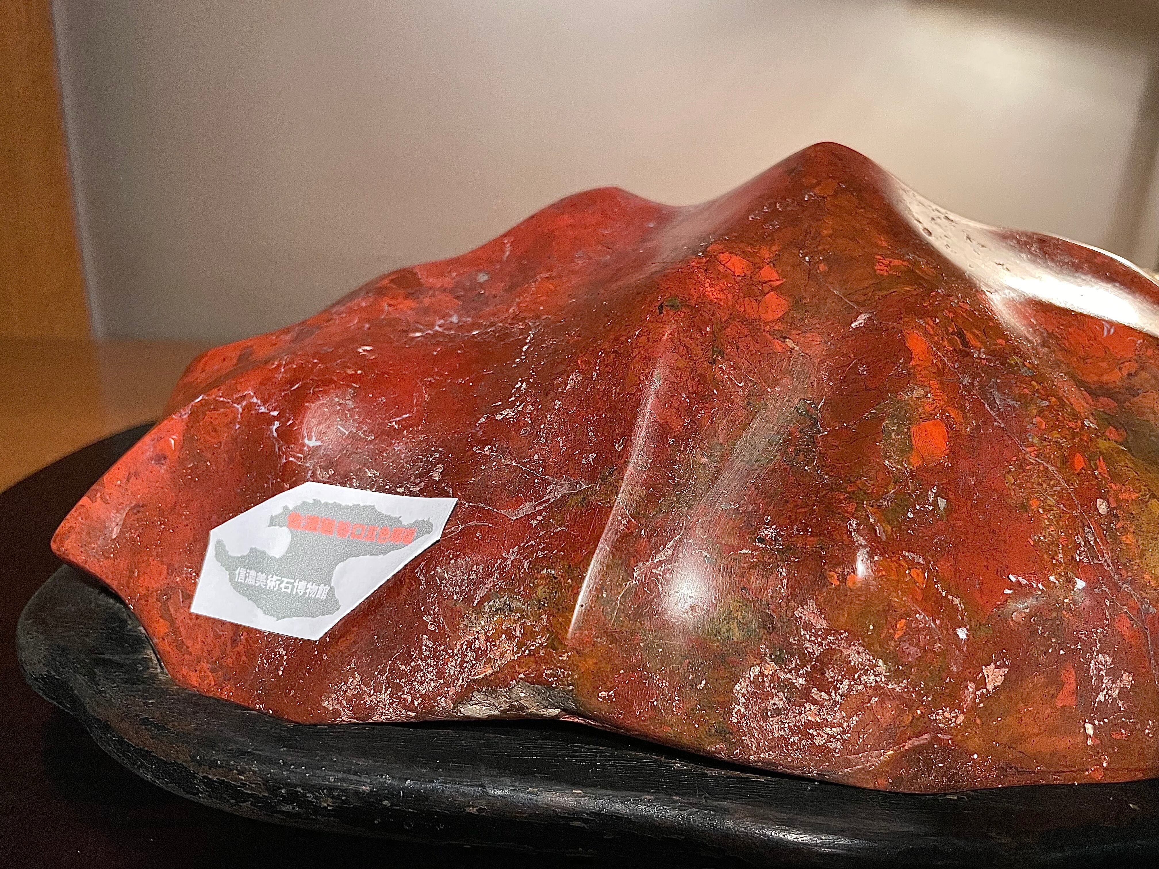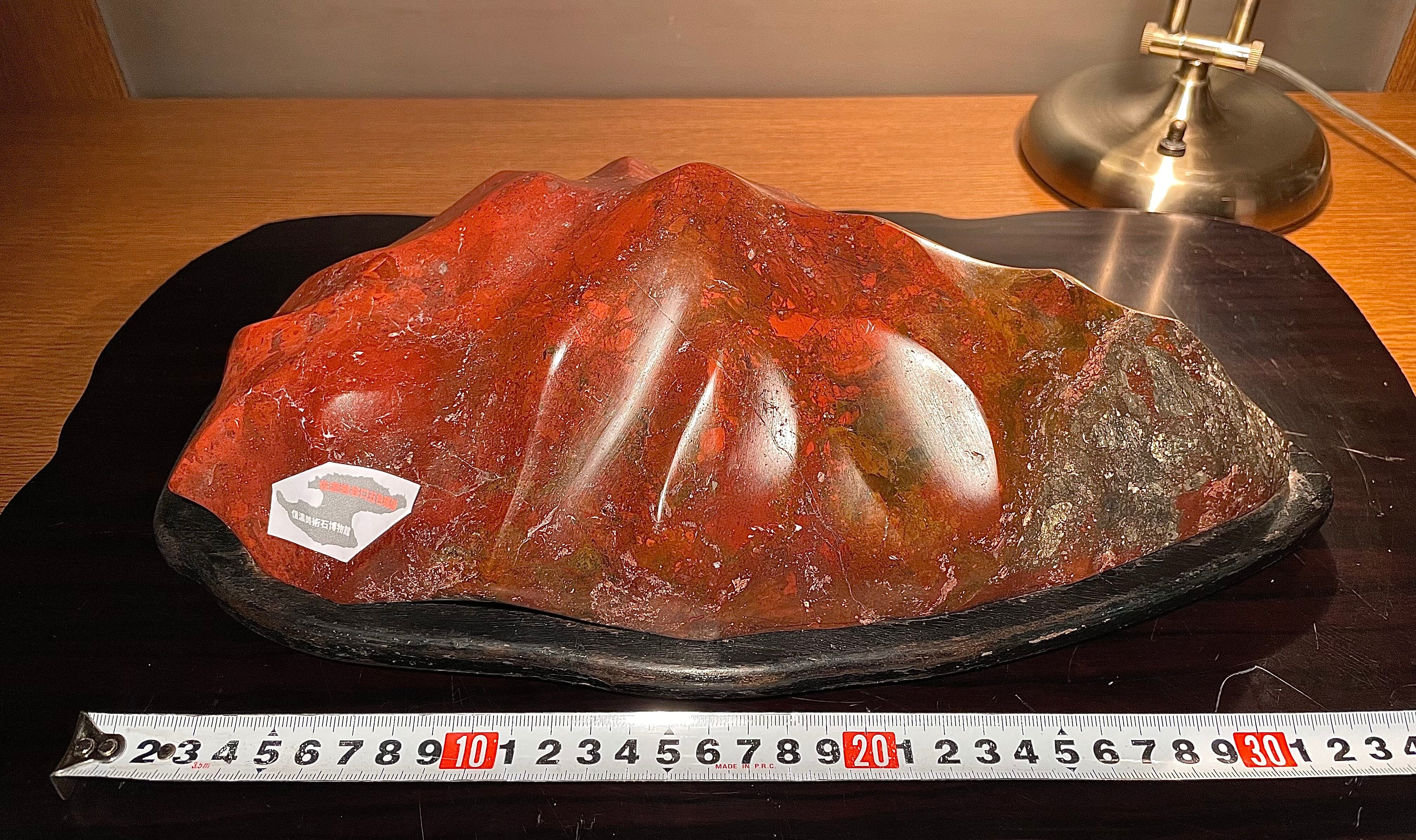 【信濃美術石博物館】水石 盆栽 赤基調 佐渡岩谷口五色メノウ 横34cm 5.1kg 佐渡赤玉石 赤石 佐渡錦紅石 4510