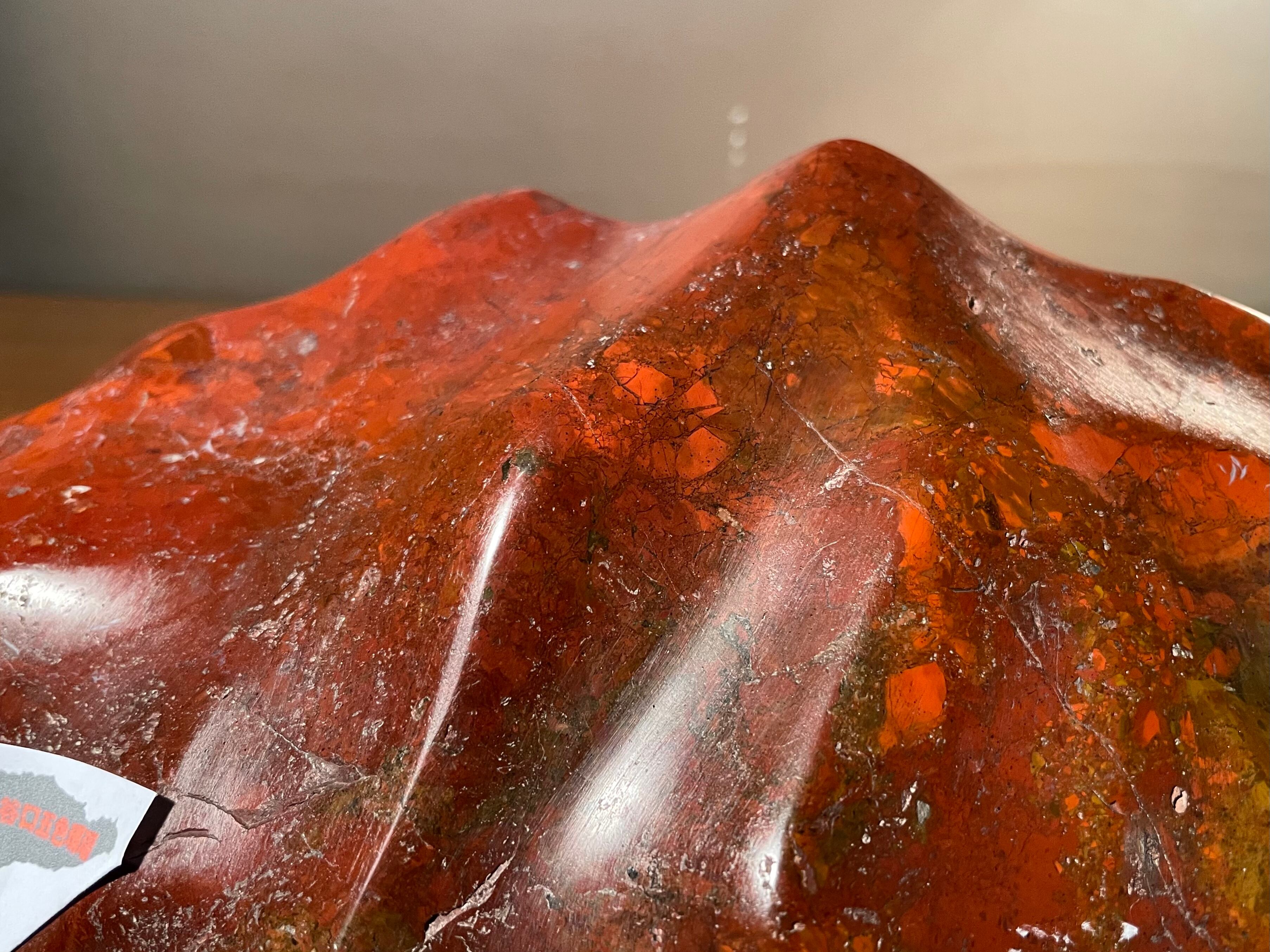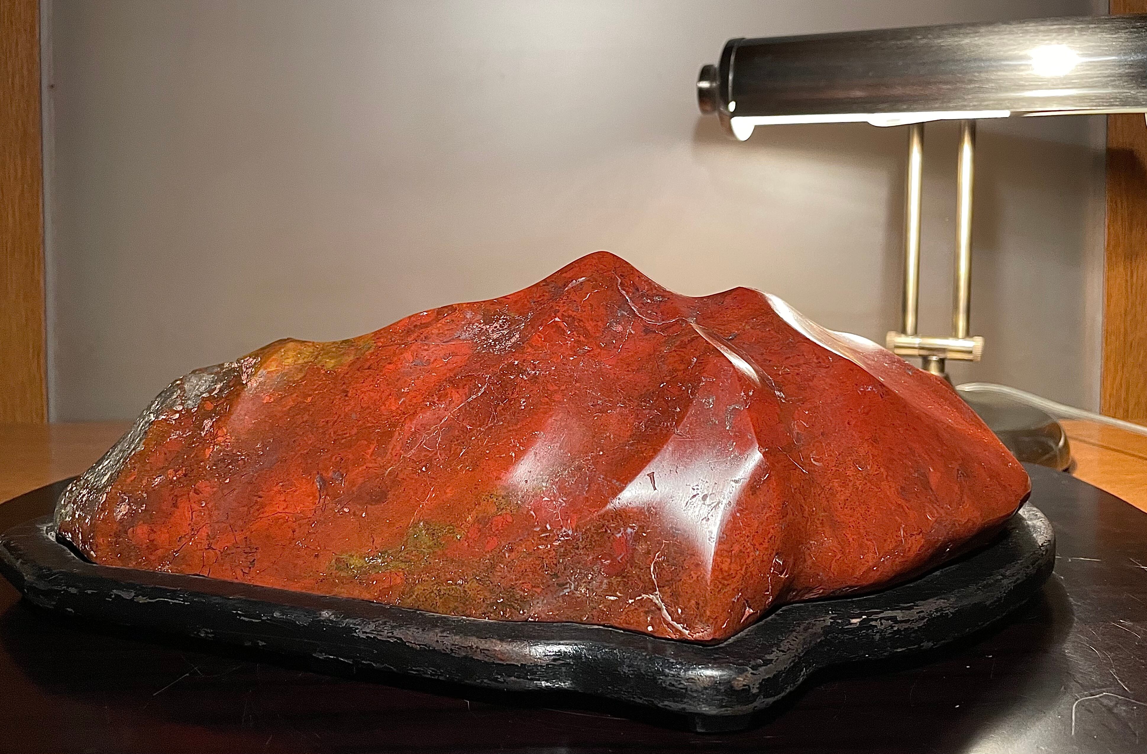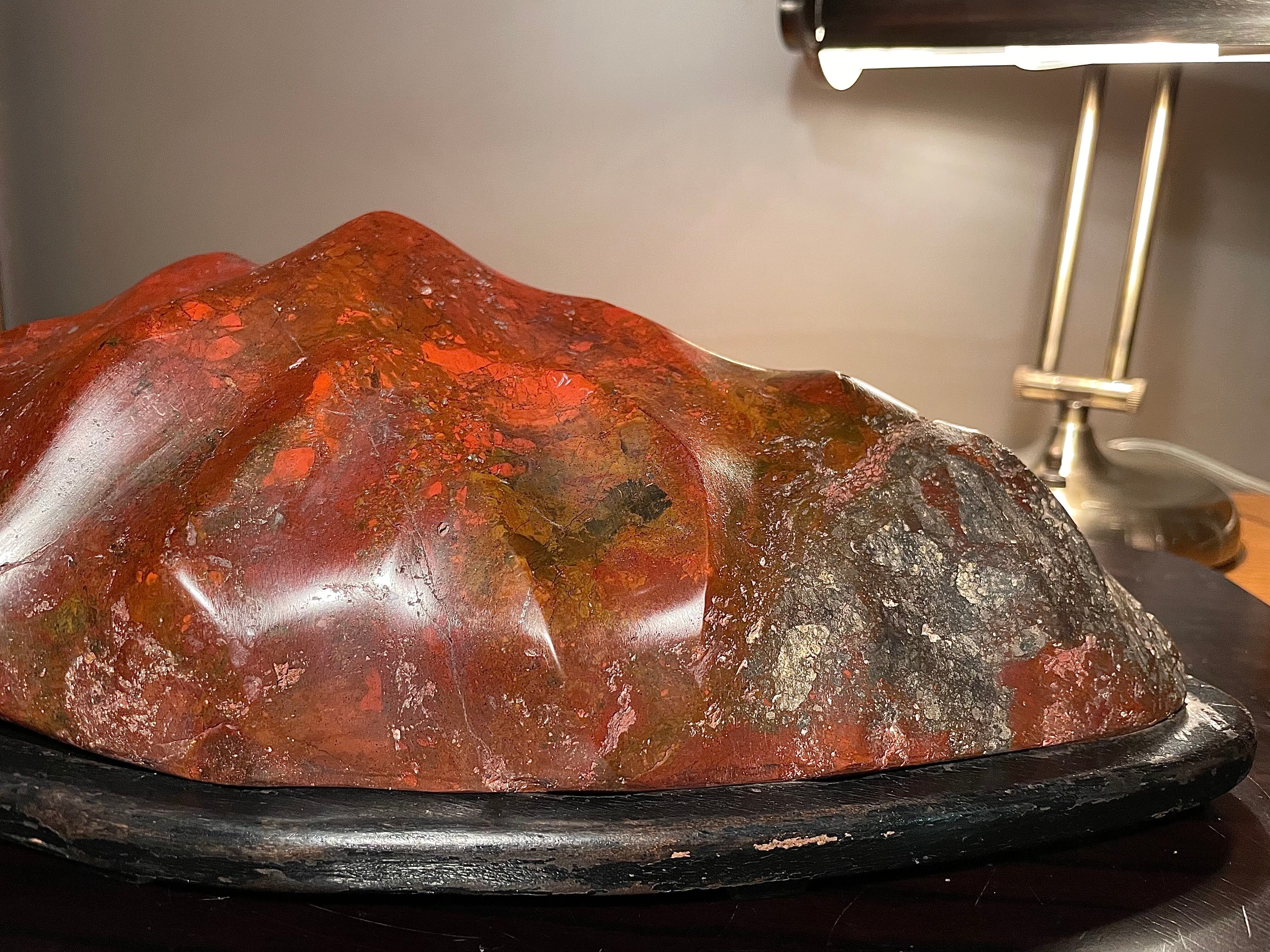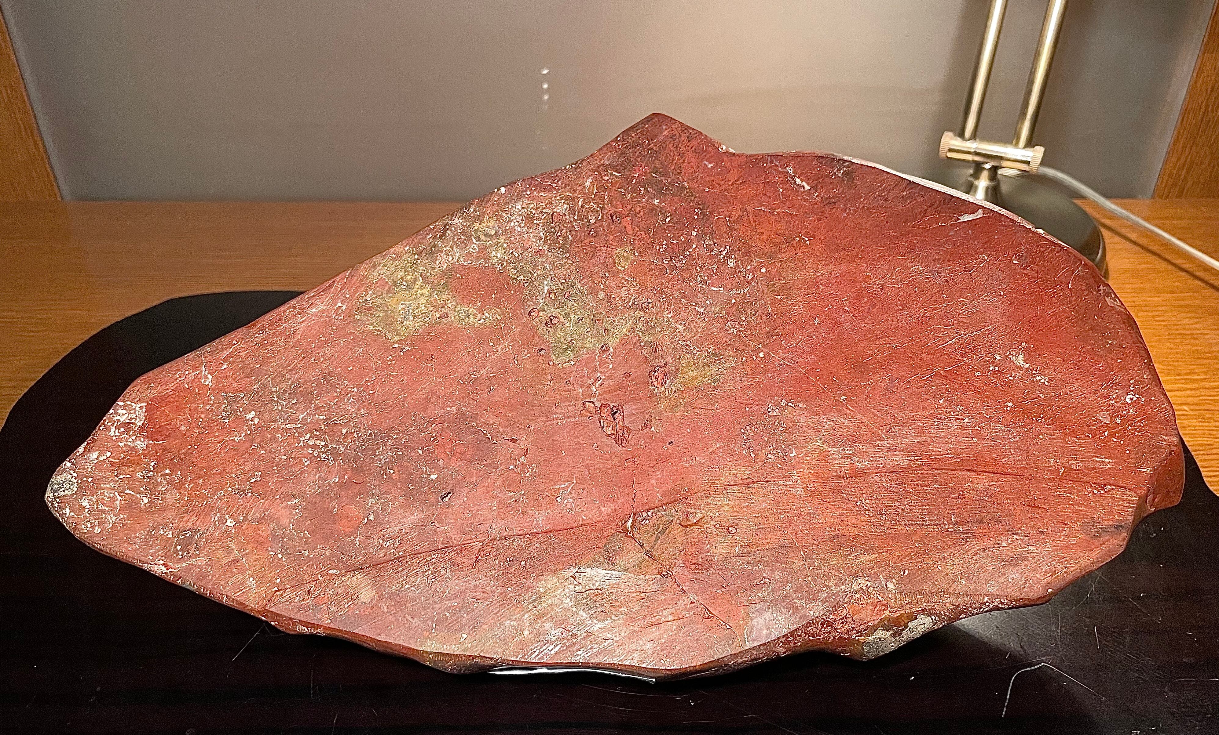 【信濃美術石博物館】水石 盆栽 赤基調 佐渡岩谷口五色メノウ 横34cm 5.1kg 佐渡赤玉石 赤石 佐渡錦紅石 4510