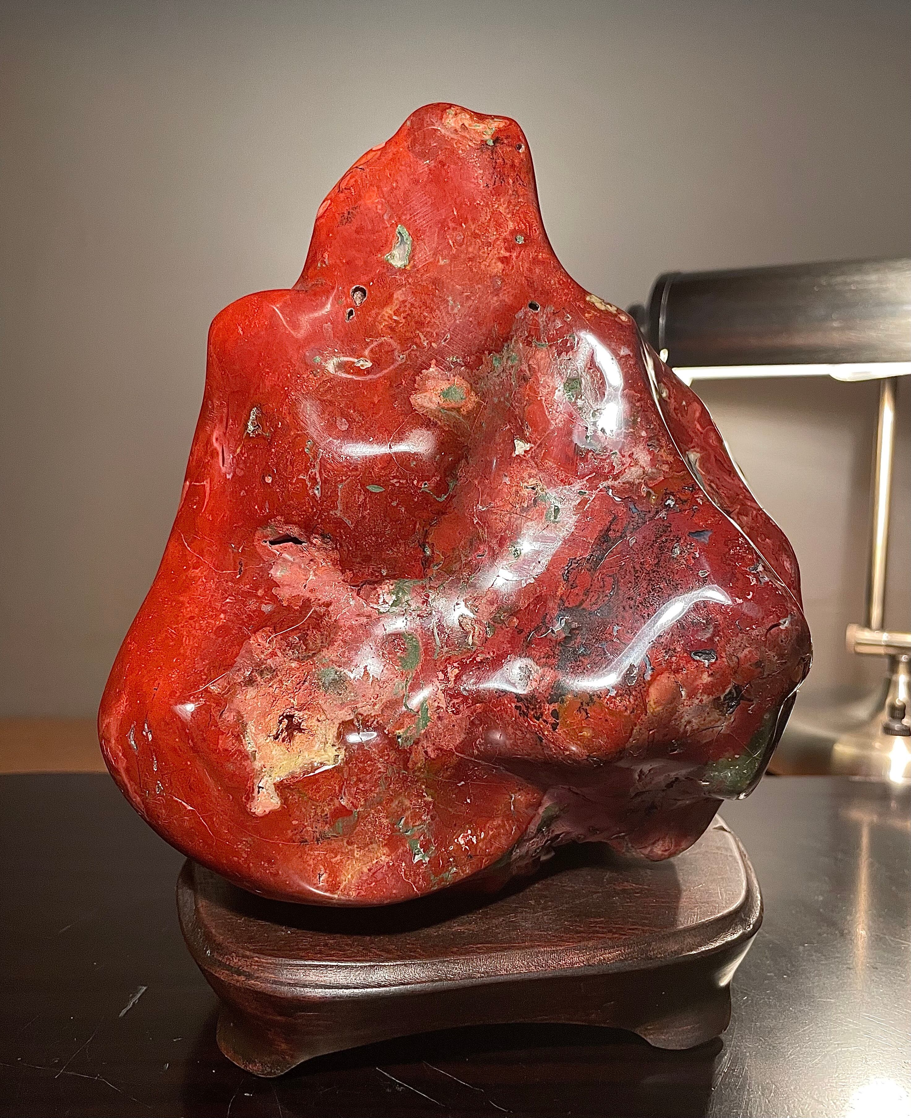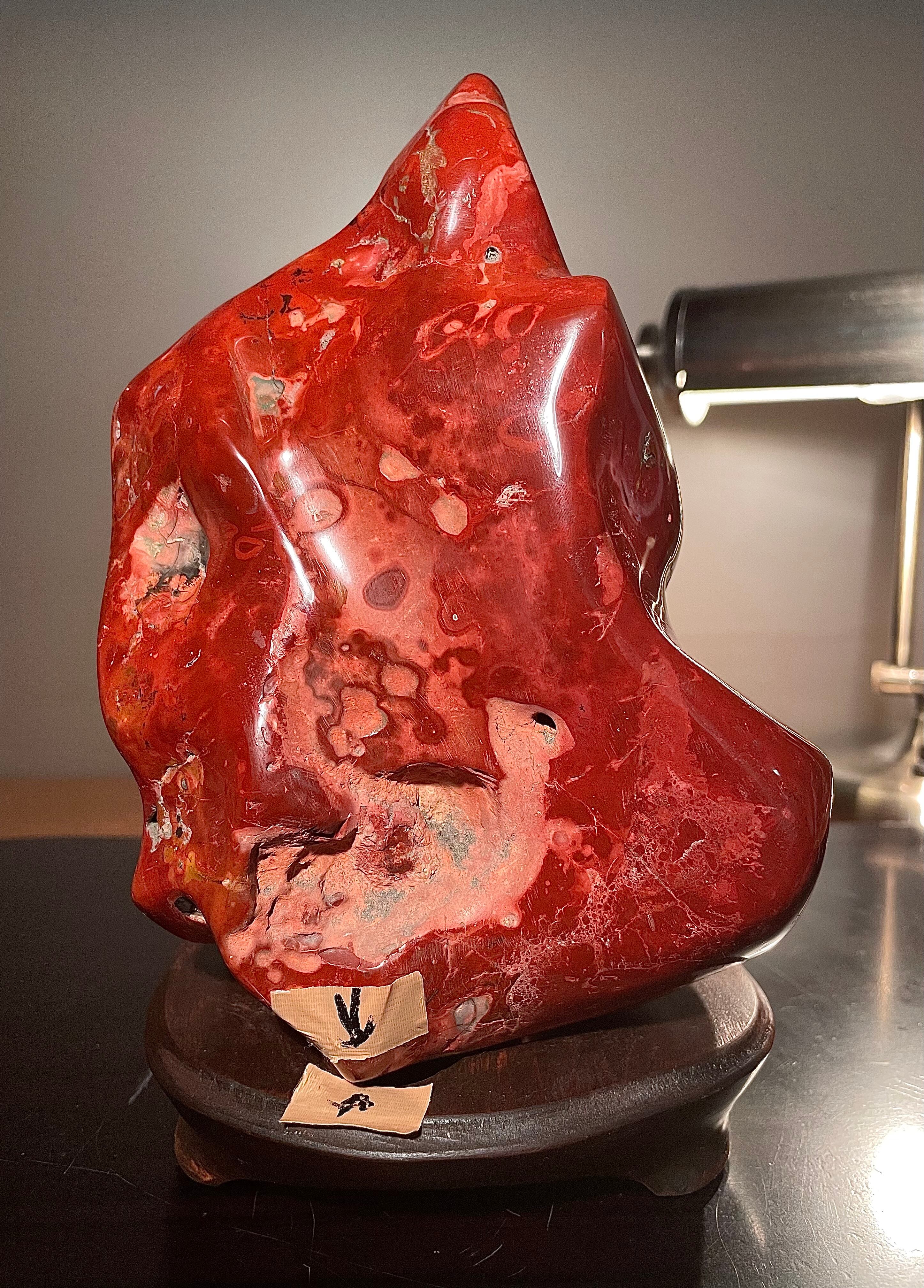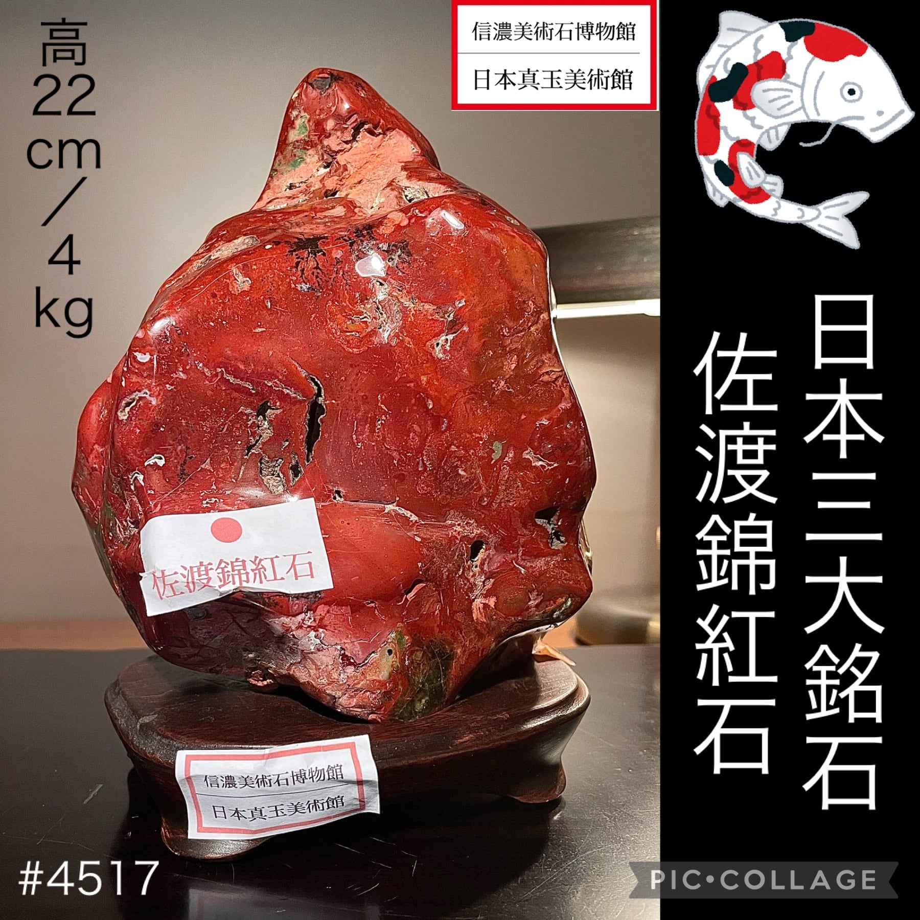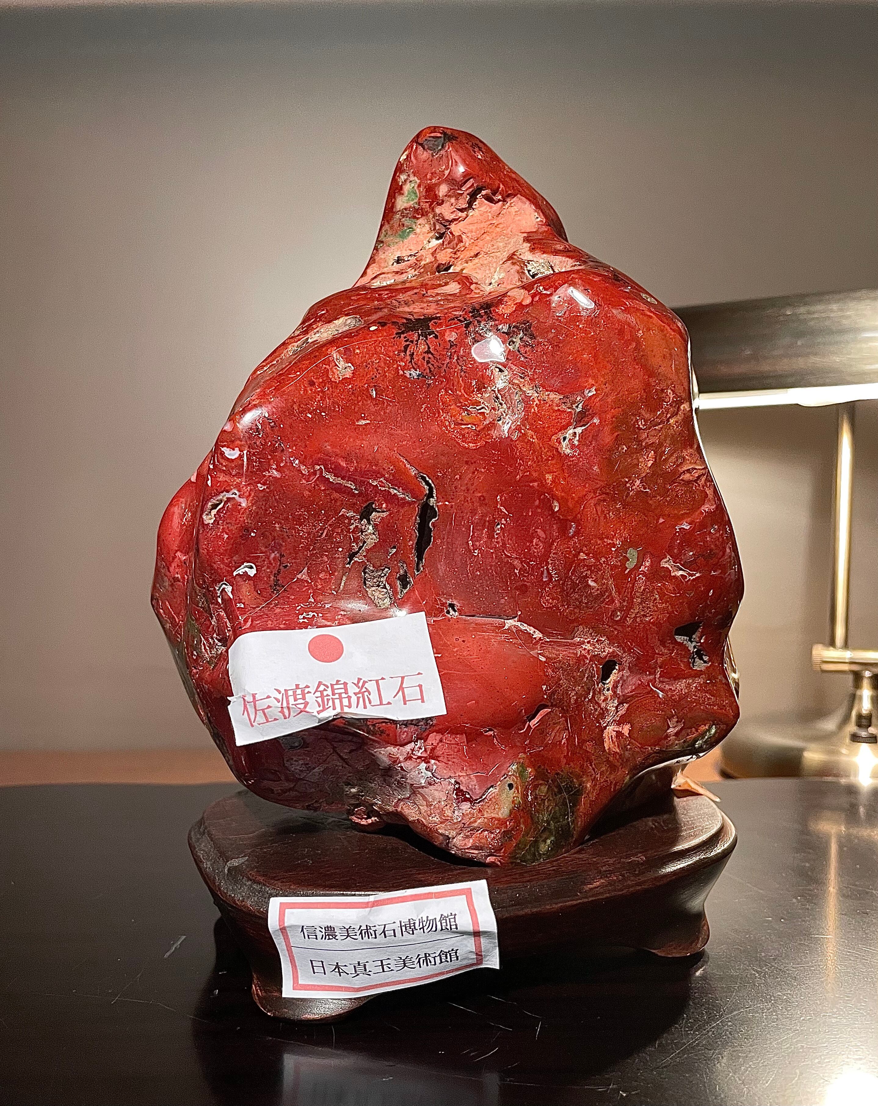 【信濃美術石博物館】水石 盆栽 佐渡錦紅石 横16×高22×奥行13(cm) 4kg 佐渡赤玉石 赤石 4517