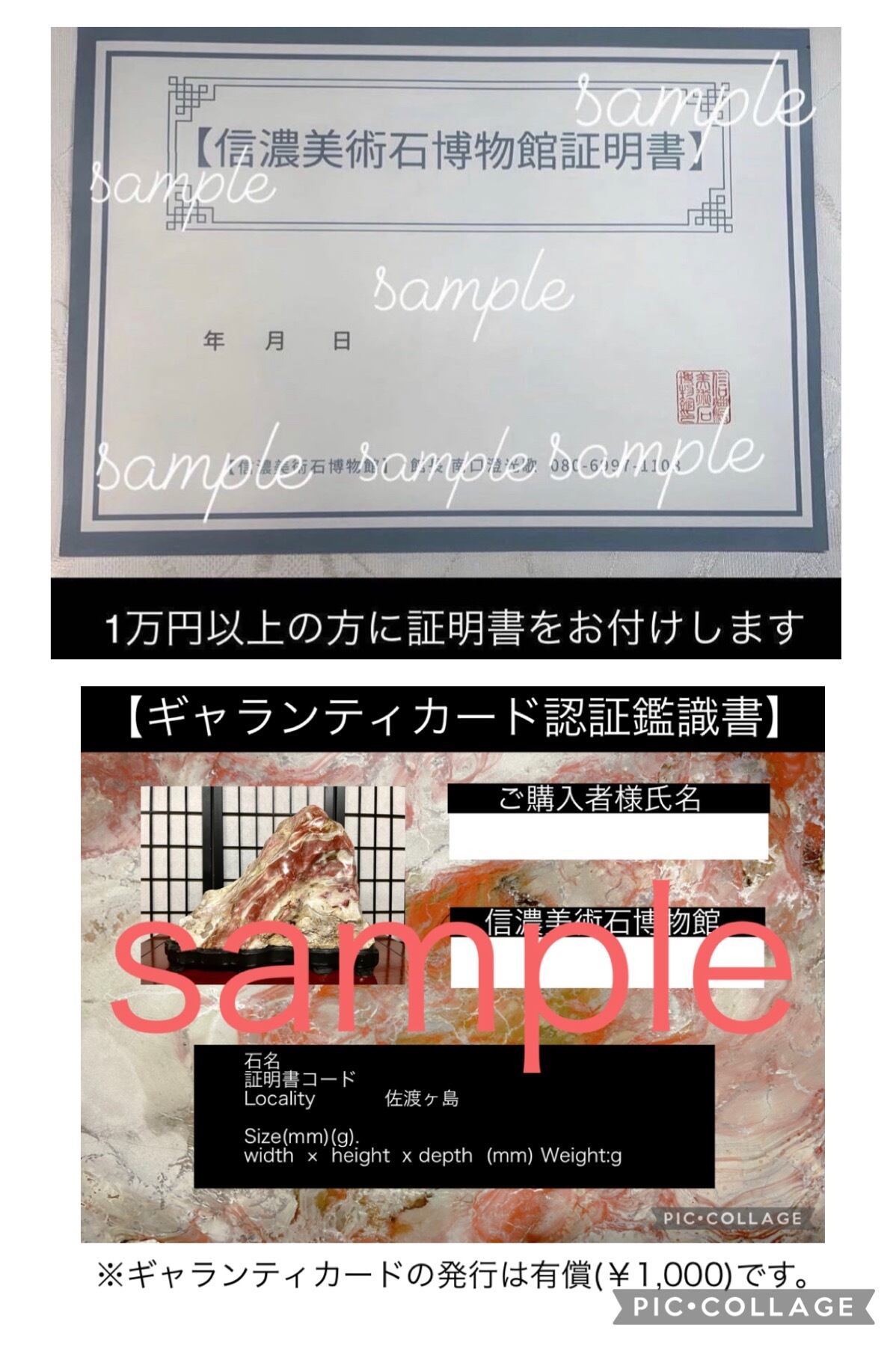 佐渡石のギャランティカードの発行は有償です。1,000円頂戴致します。