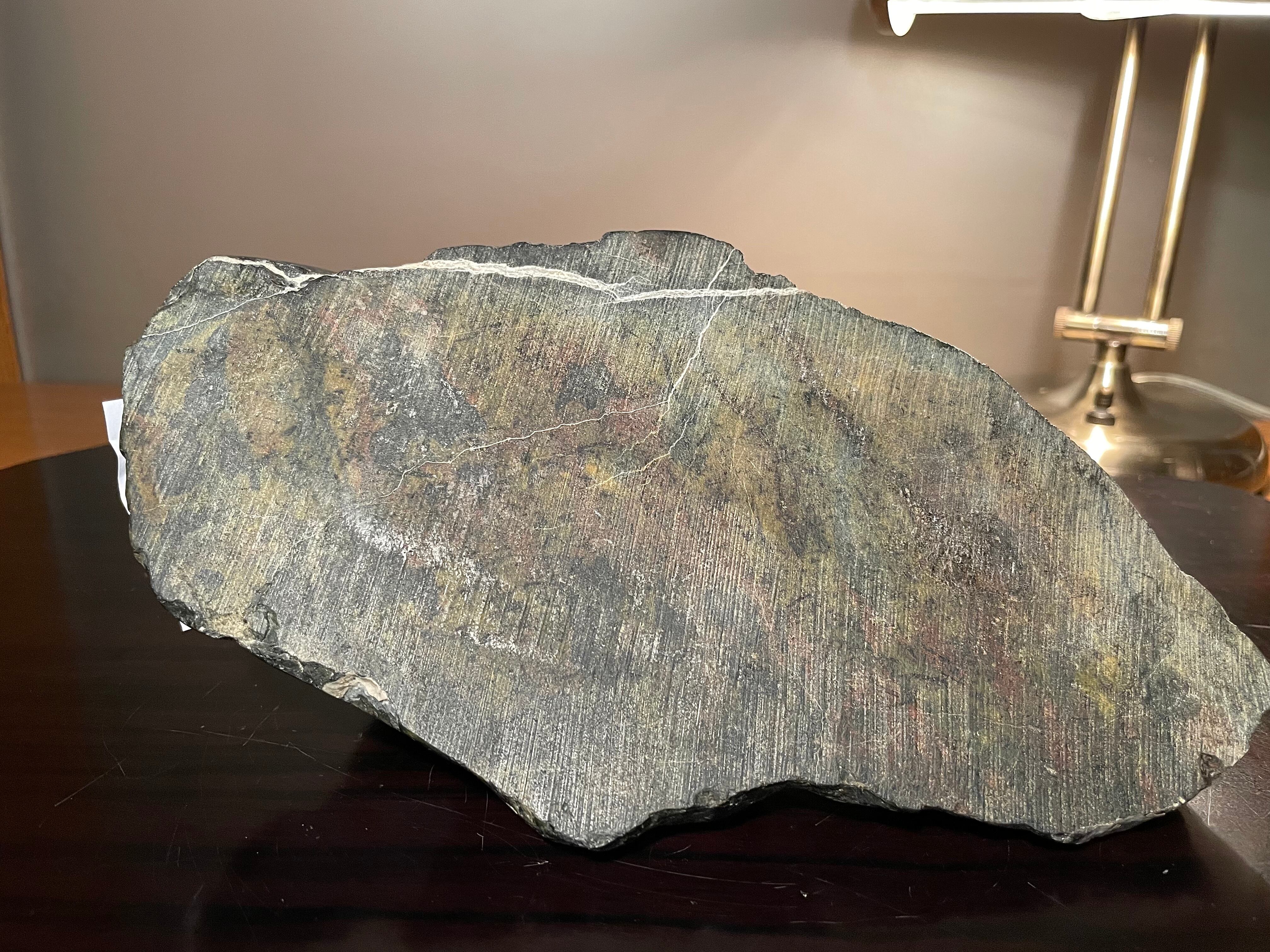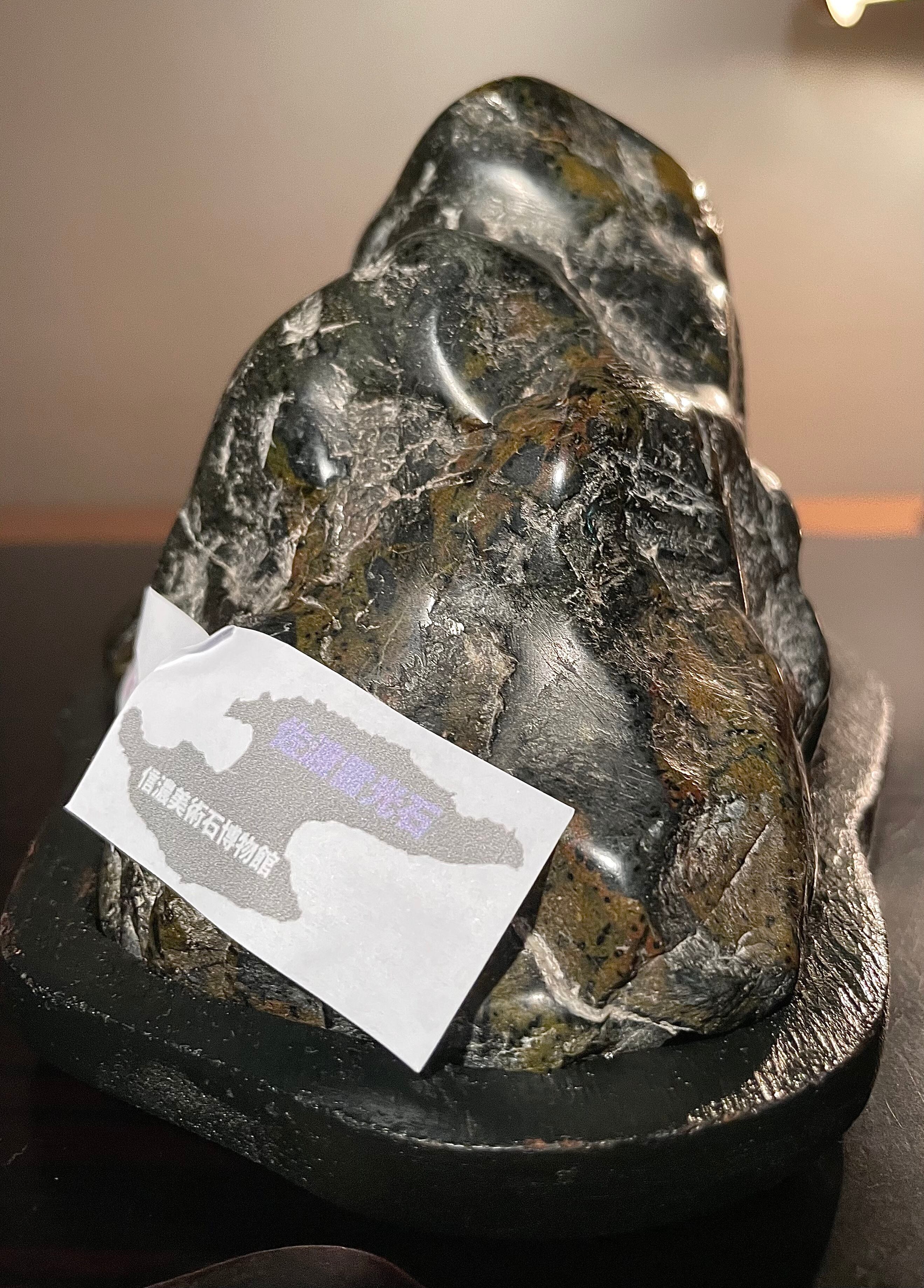 【信濃美術石博物館】水石 盆栽 佐渡雷光石 銘:『紫煙幽邃』横24×高11(cm) 2.28kg 佐渡赤玉石 赤石 佐渡錦紅石 4524