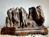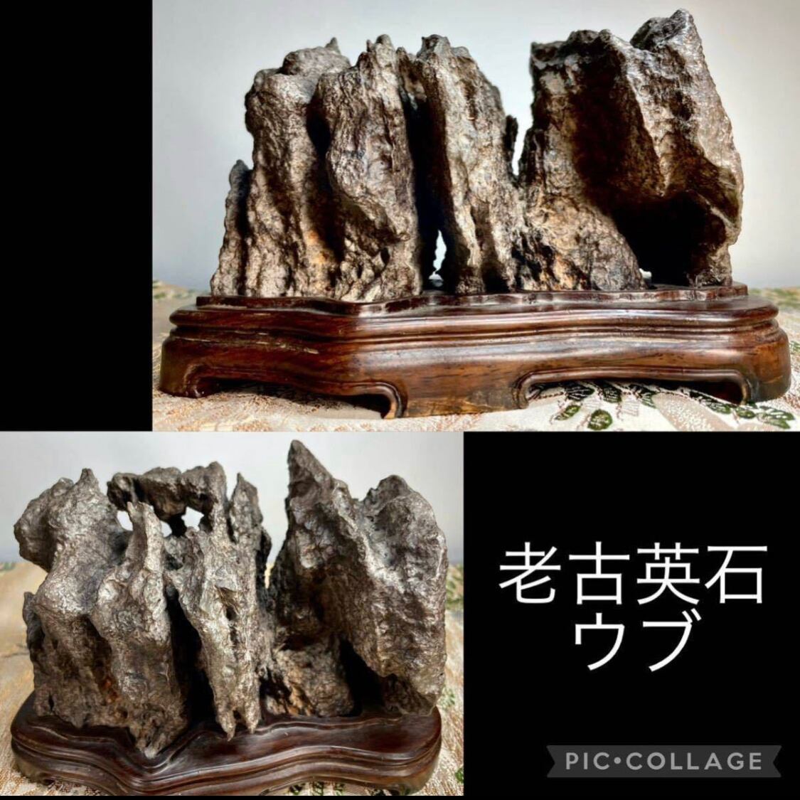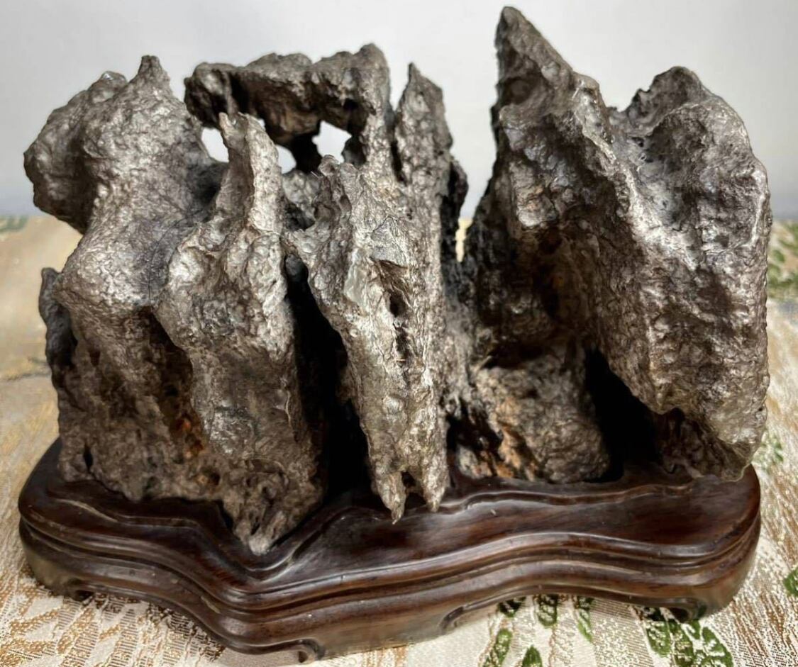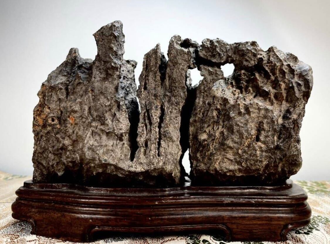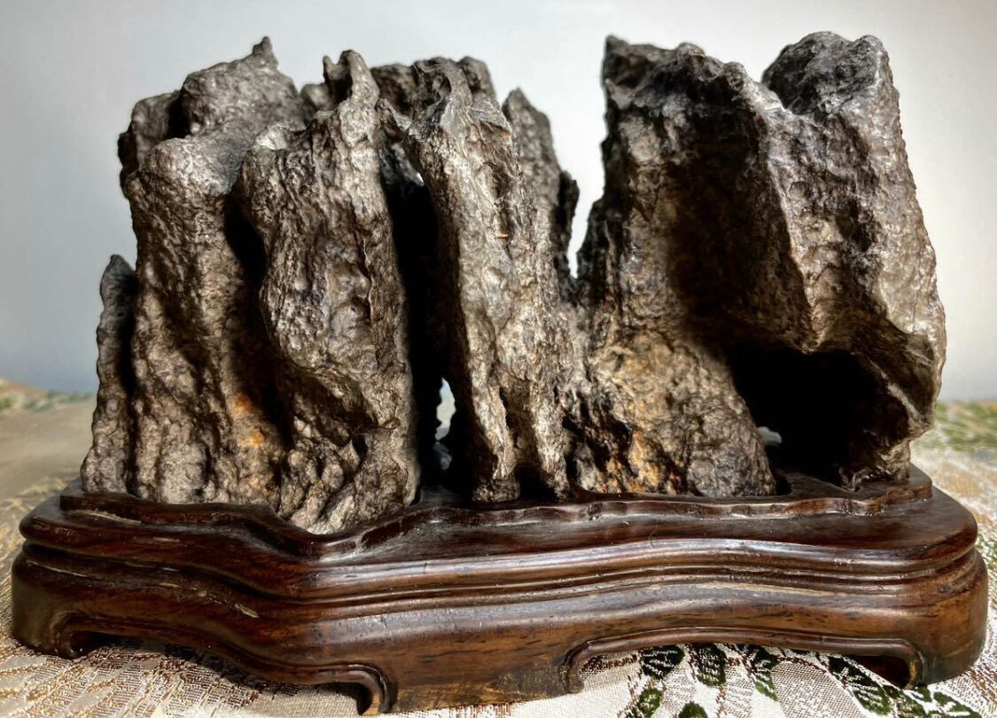 【信濃美術石博物館】水石 盆栽 老古英石 ウブ 横21×高13.5×奥行11(cm) 2.88kg 中国古玩 4011