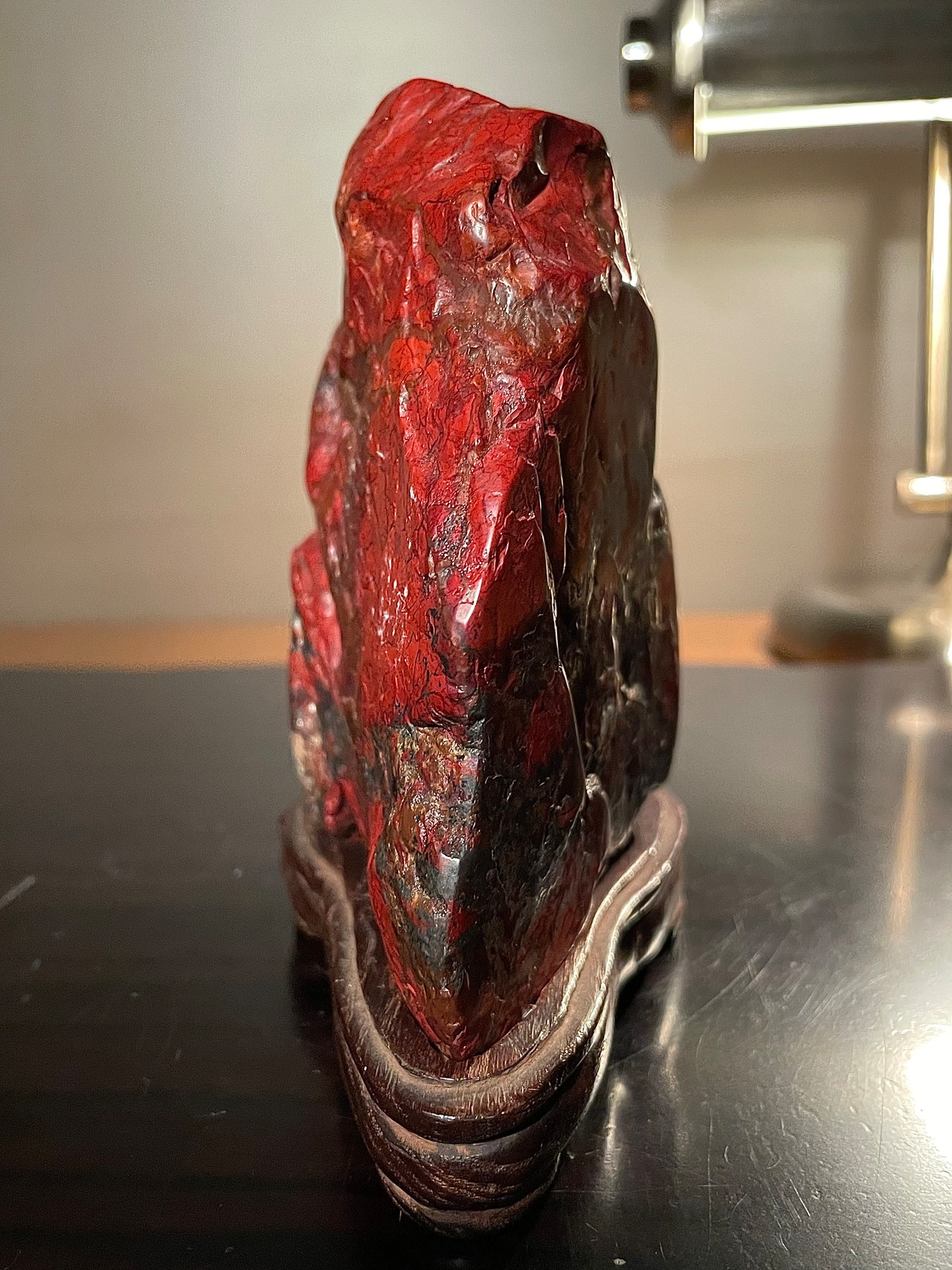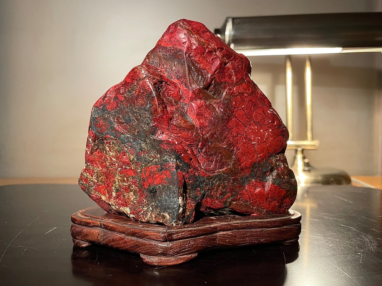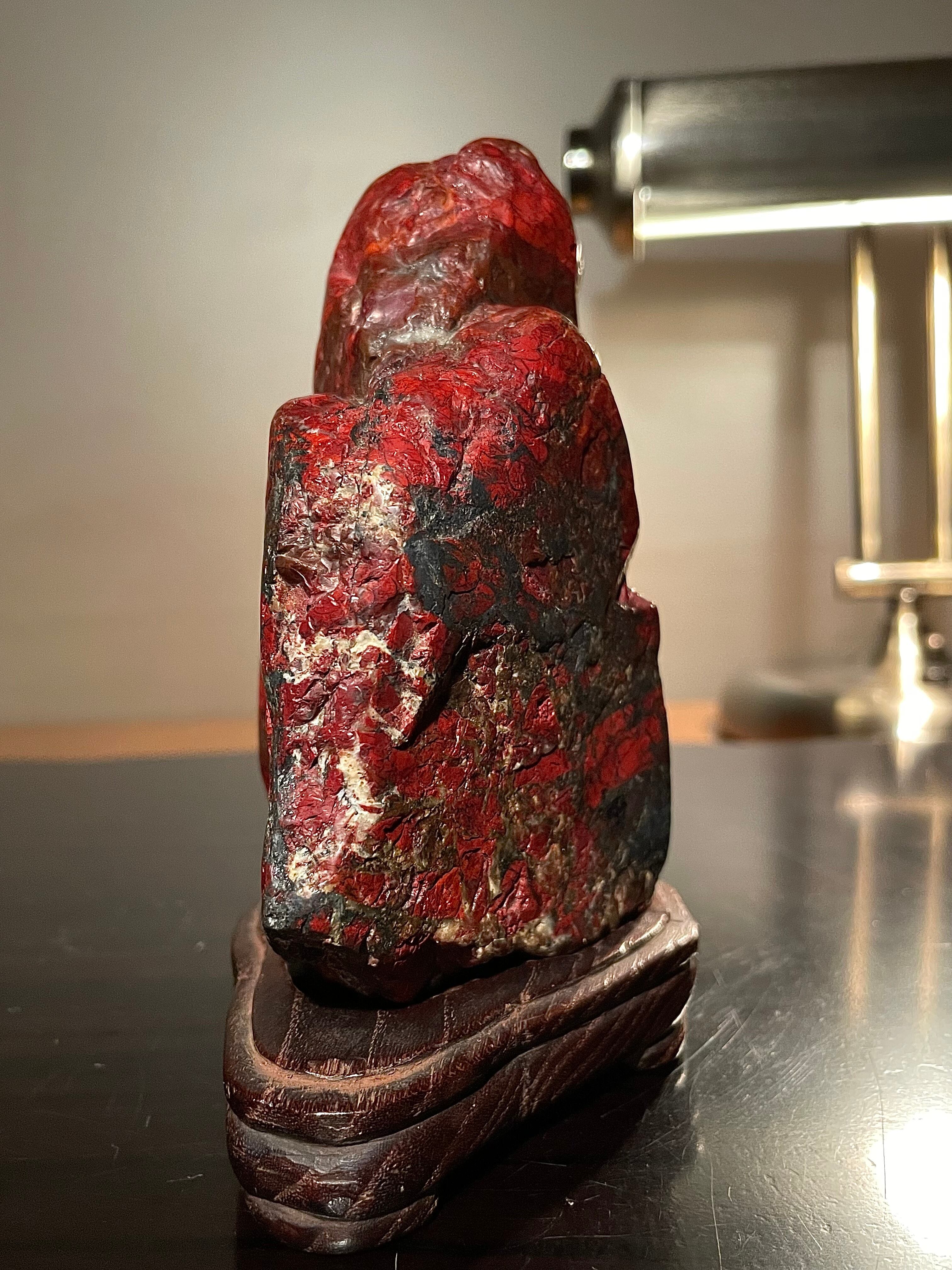 【信濃美術石博物館】水石 盆栽 佐渡錦紅石 横13.5×高12×奥行6(cm) 960g 佐渡赤玉石 赤石 佐渡錦紅石 骨董盆石鑑賞石観賞石太湖石 4644