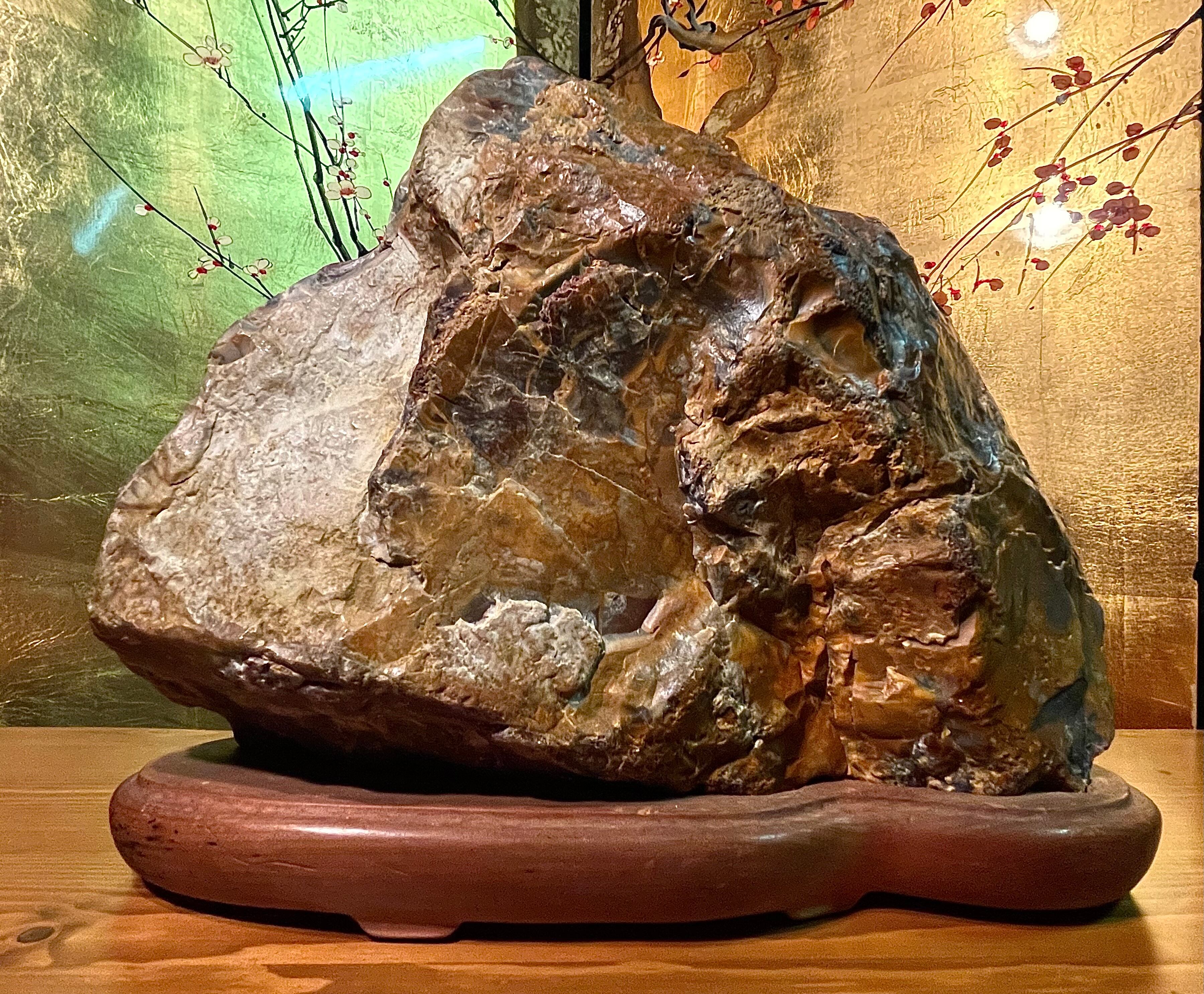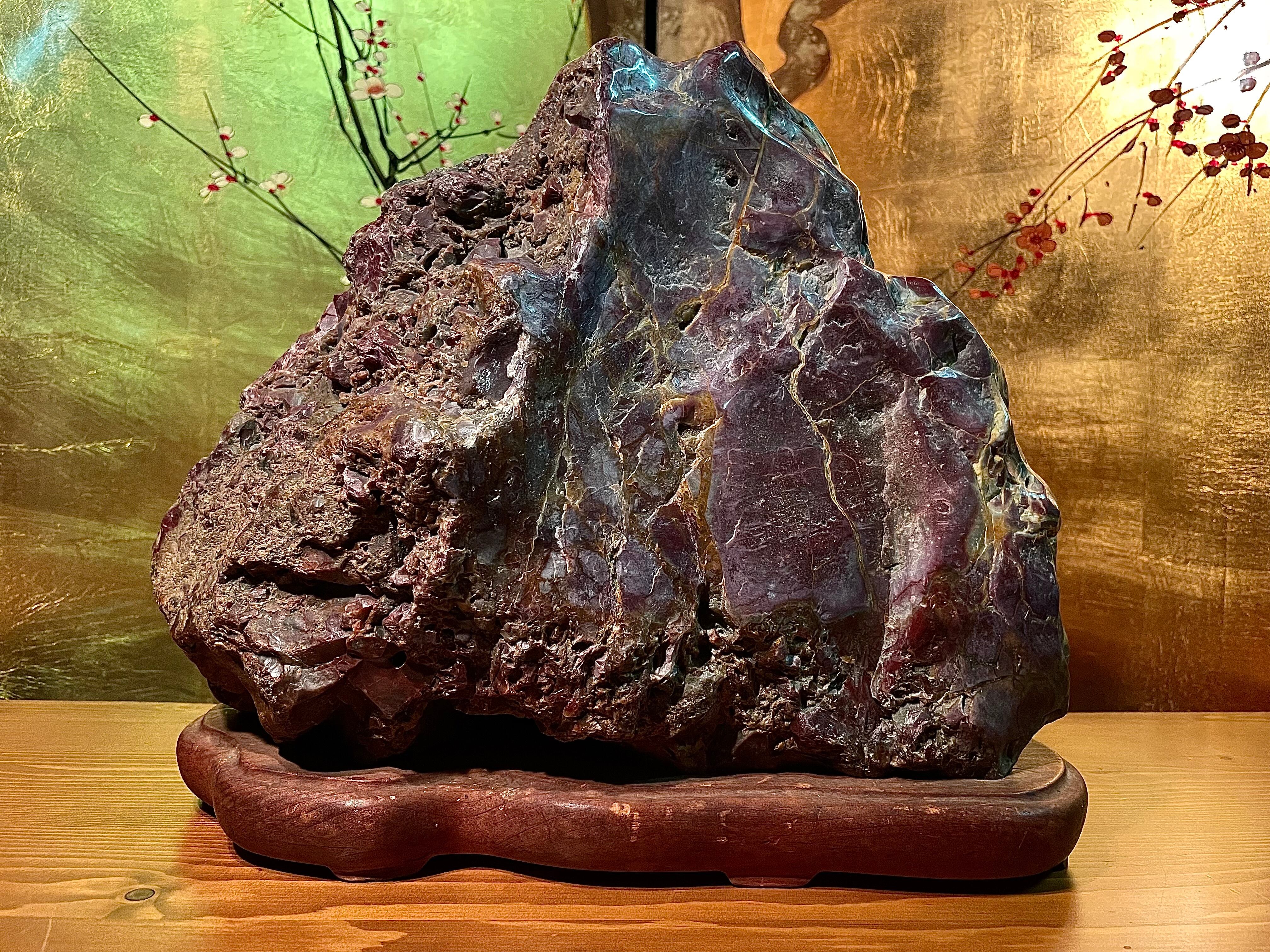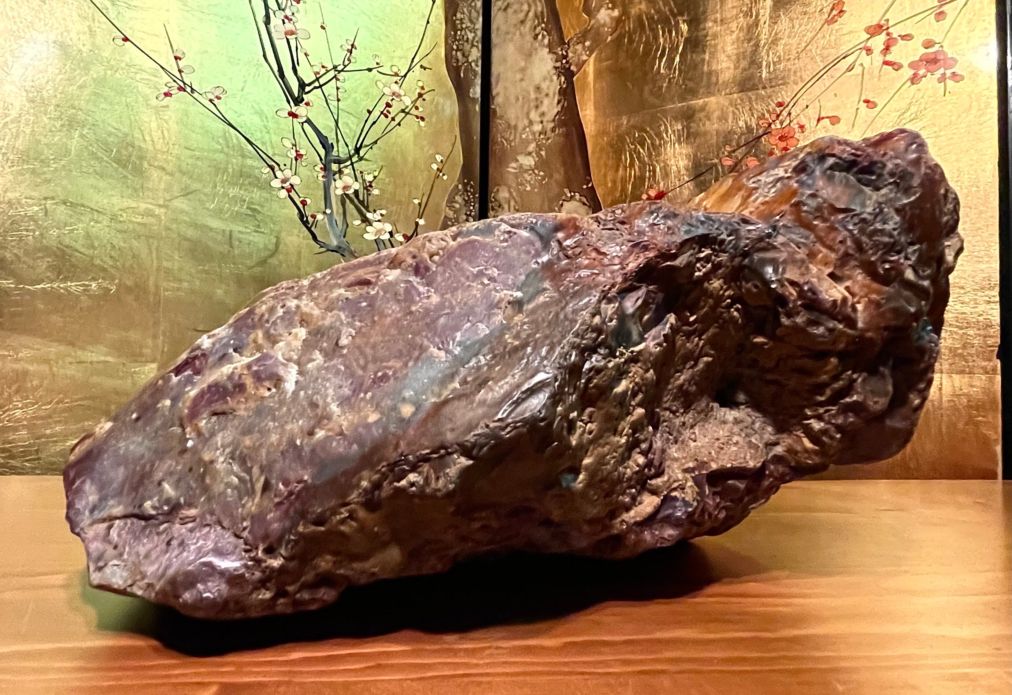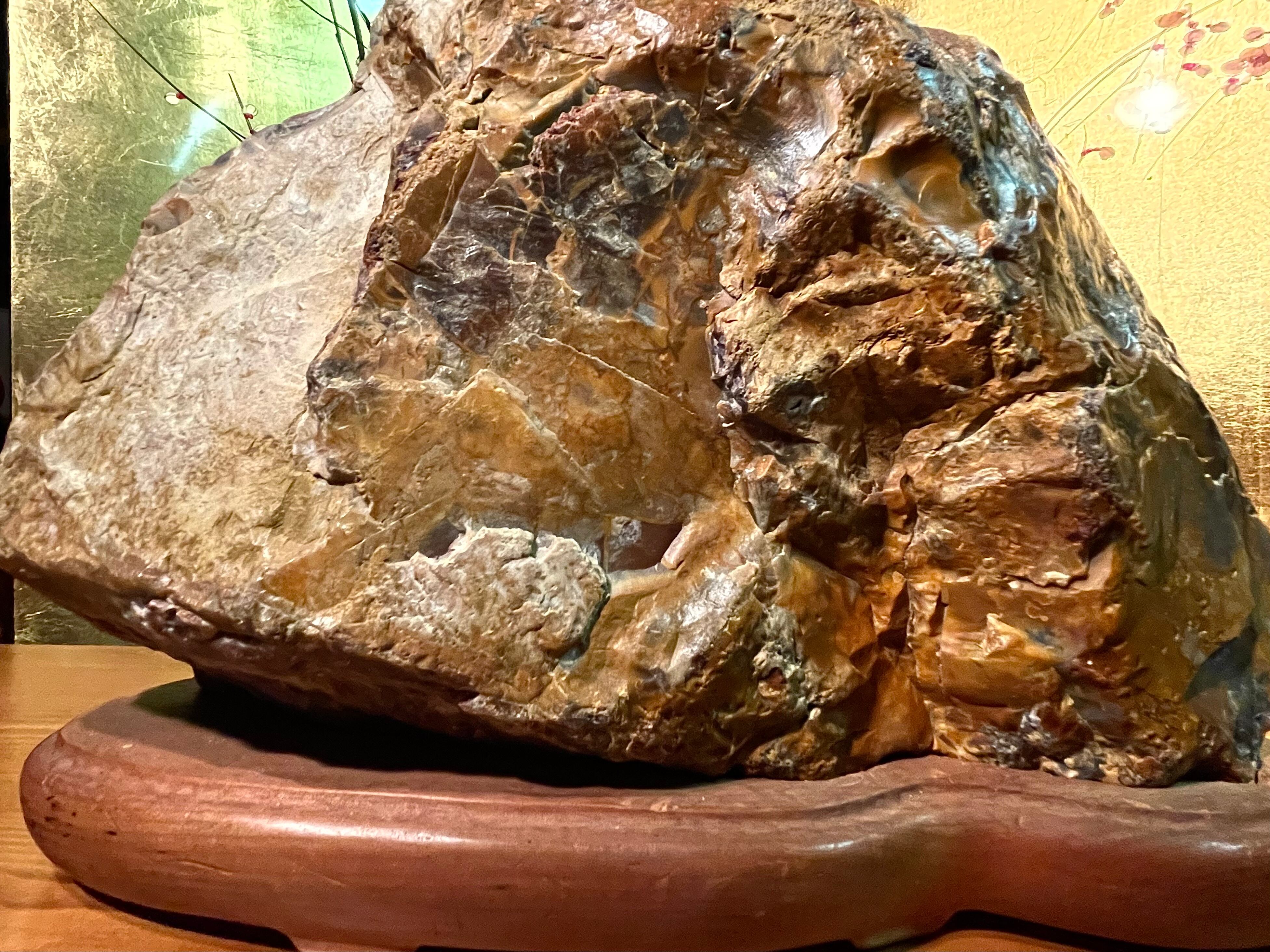 【信濃美術石博物館】水石 盆栽 佐渡雷光石 横37×高30×奥行13(cm) 14.5kg 佐渡赤玉石 赤石 佐渡錦紅石 骨董盆石鑑賞石観賞石太湖石 4651