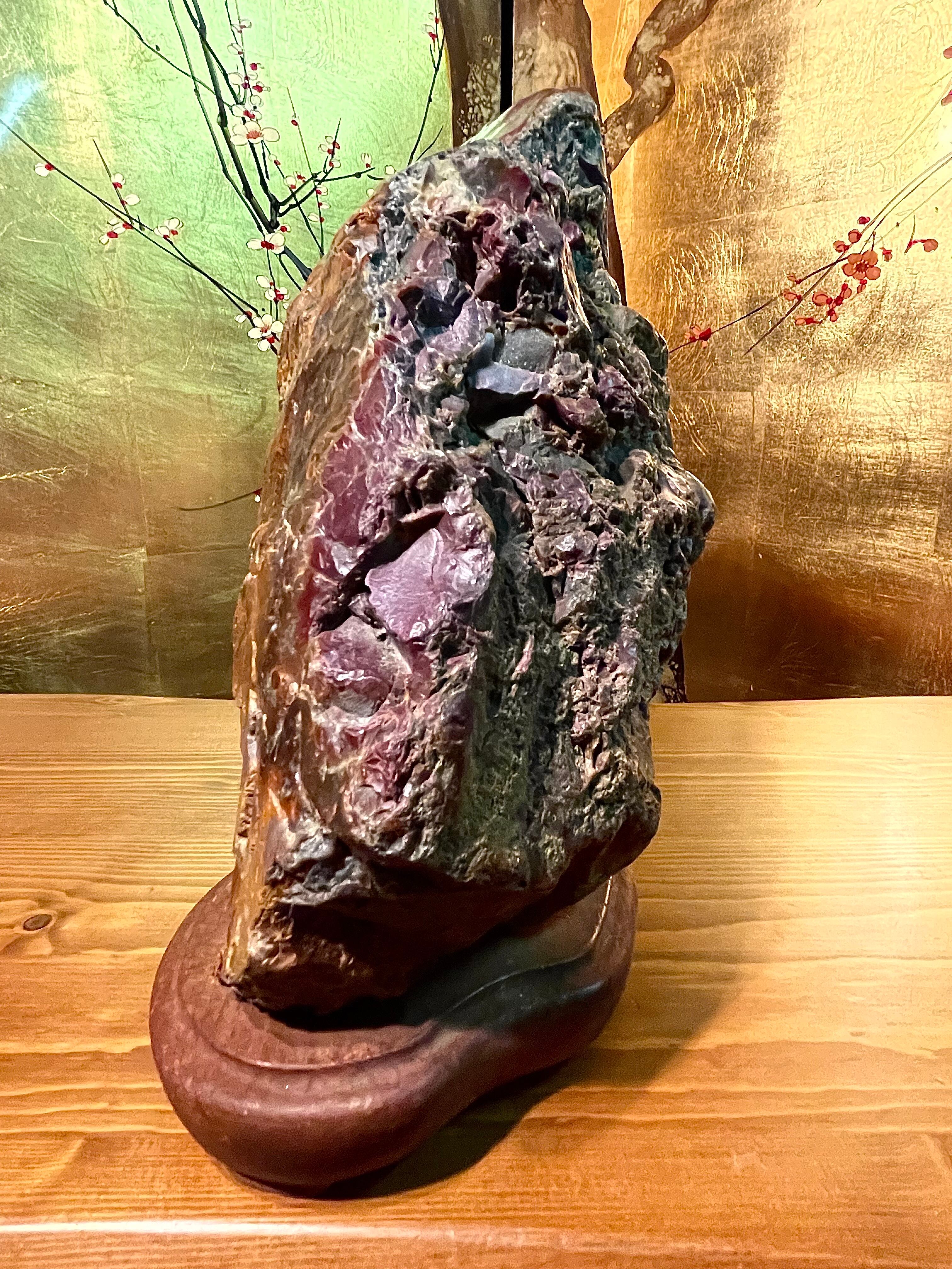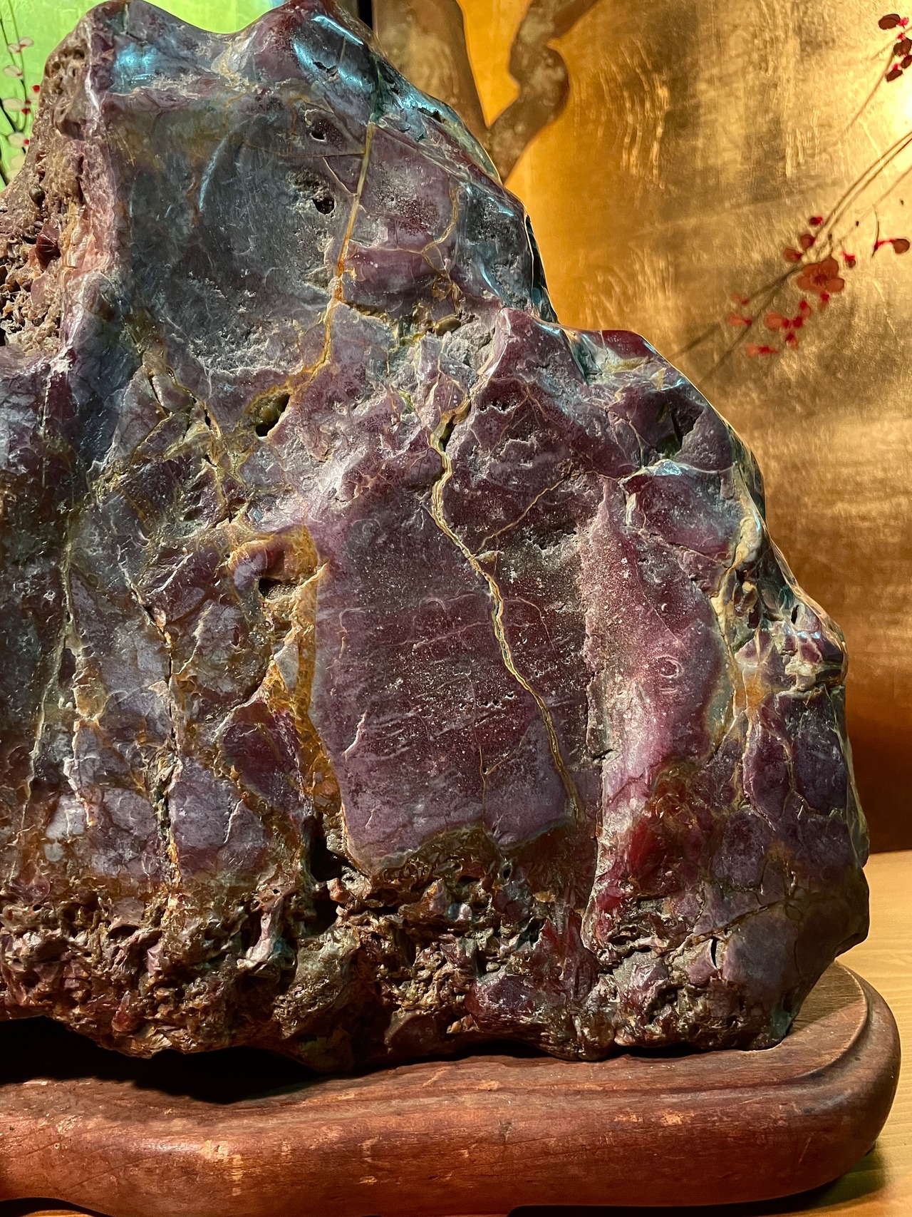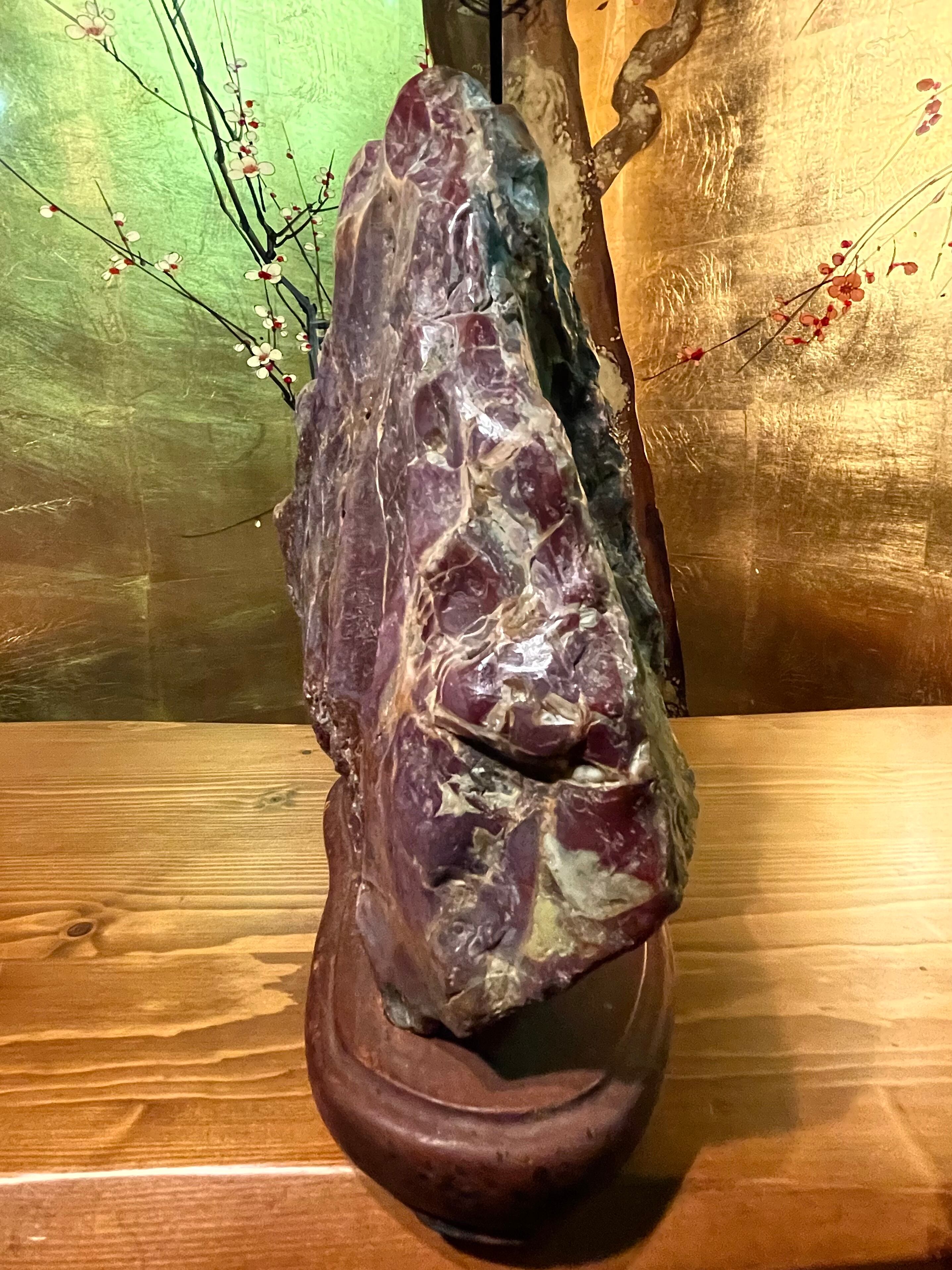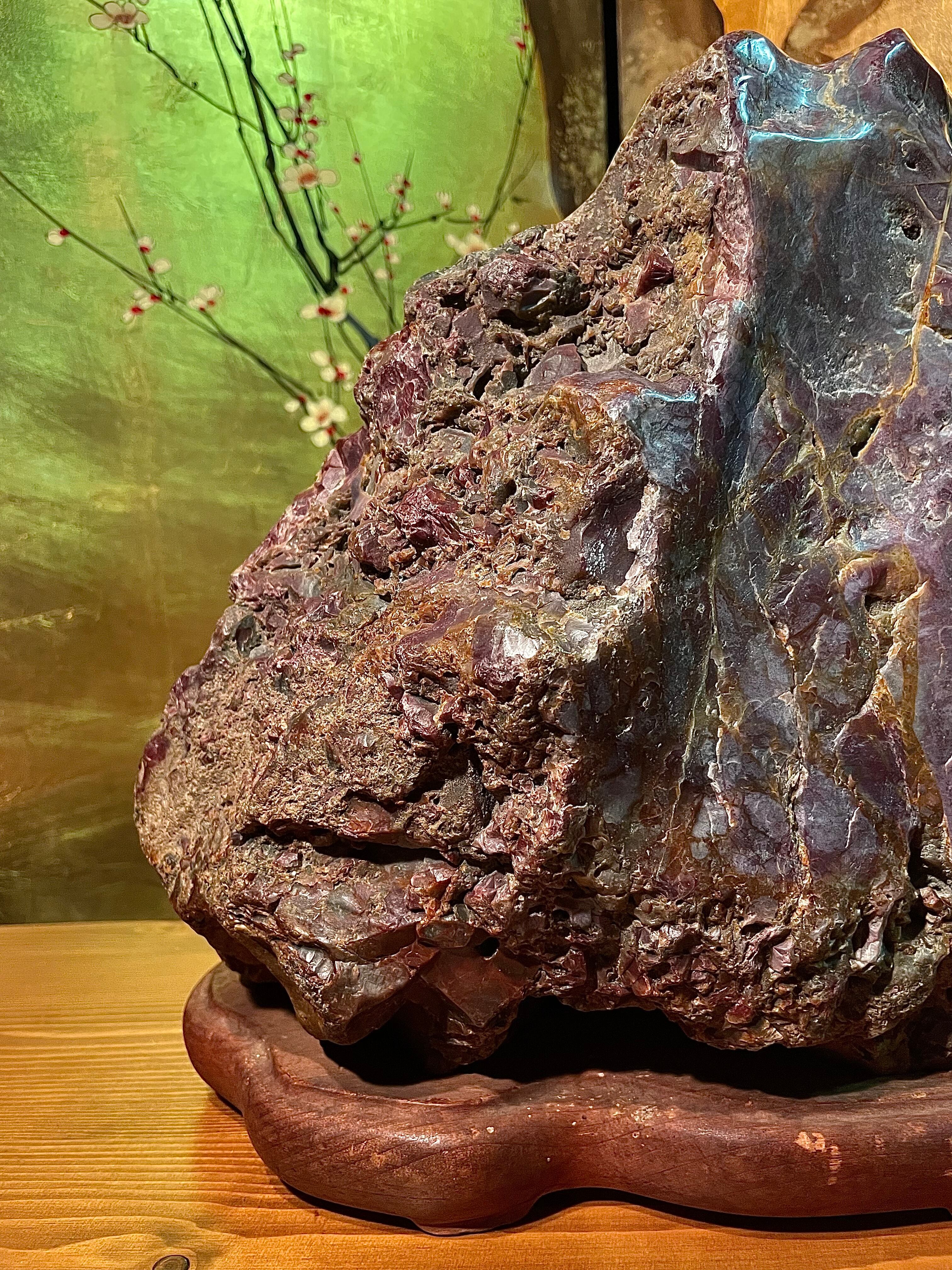 【信濃美術石博物館】水石 盆栽 佐渡雷光石 横37×高30×奥行13(cm) 14.5kg 佐渡赤玉石 赤石 佐渡錦紅石 骨董盆石鑑賞石観賞石太湖石 4651