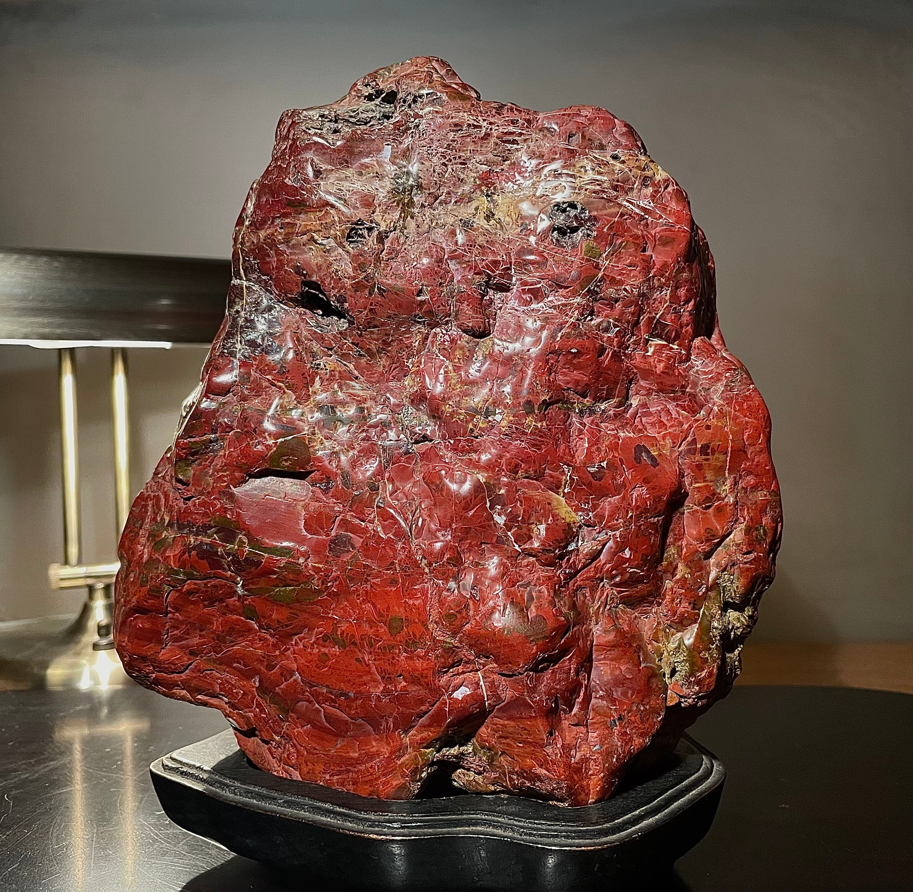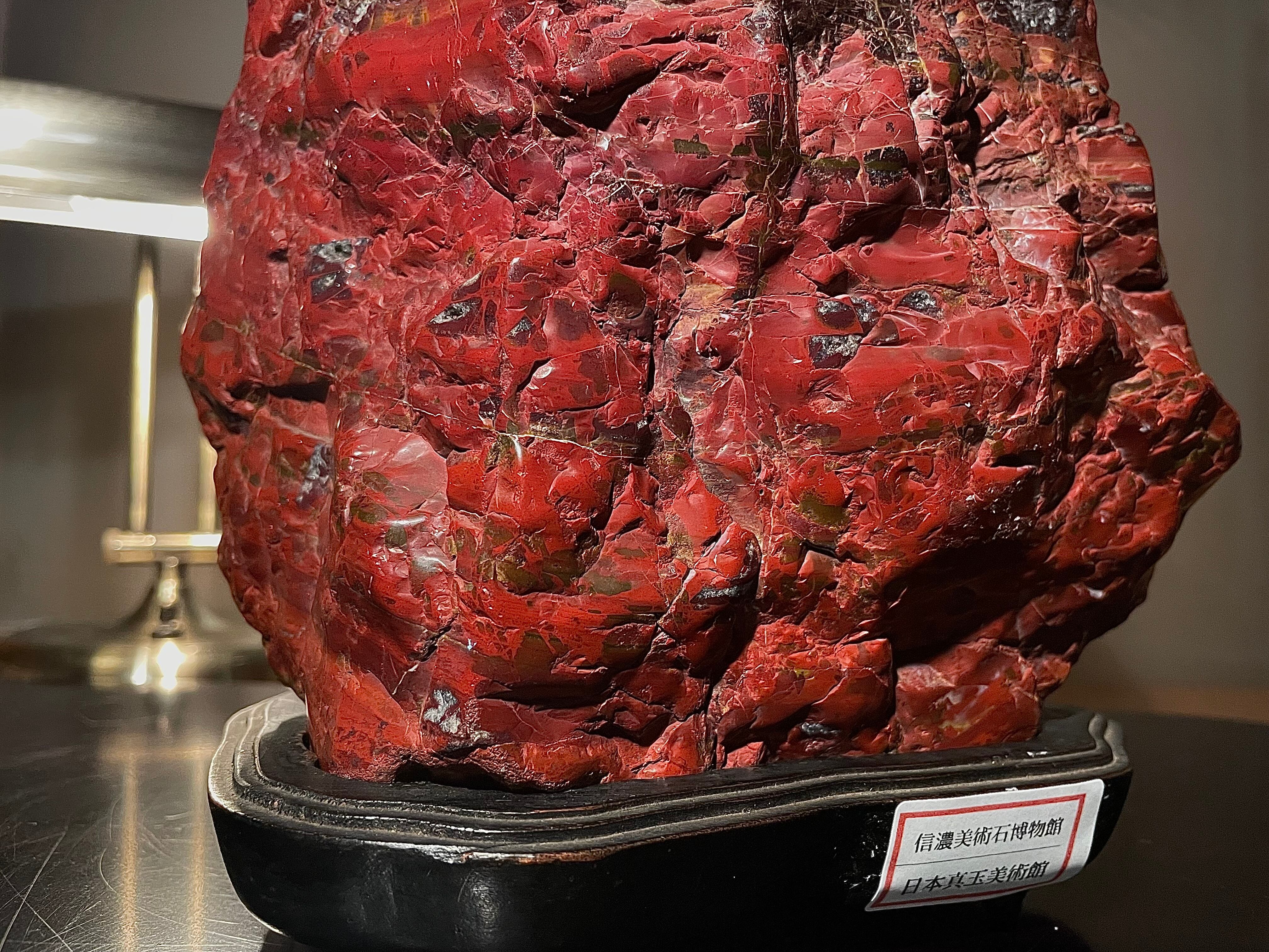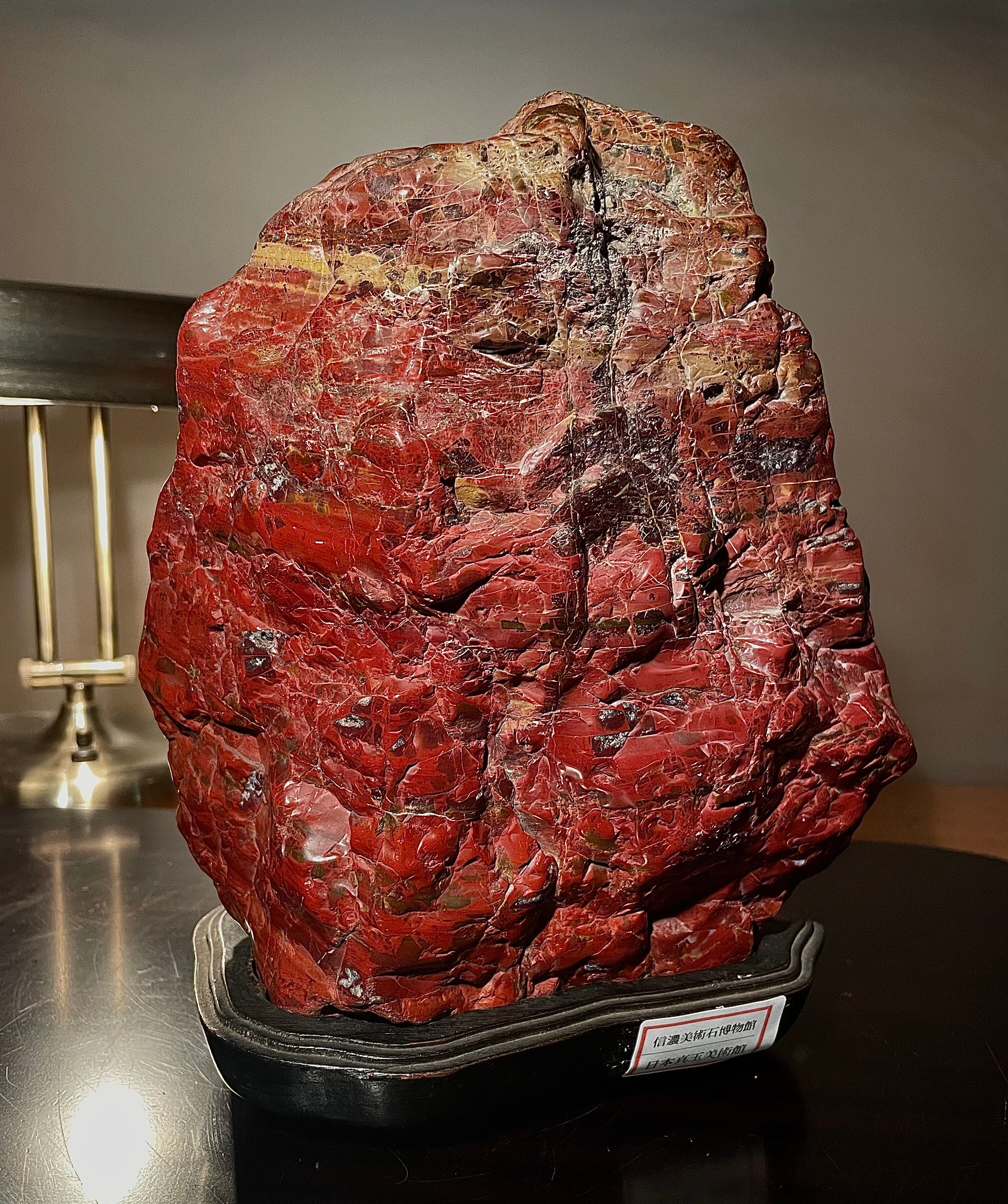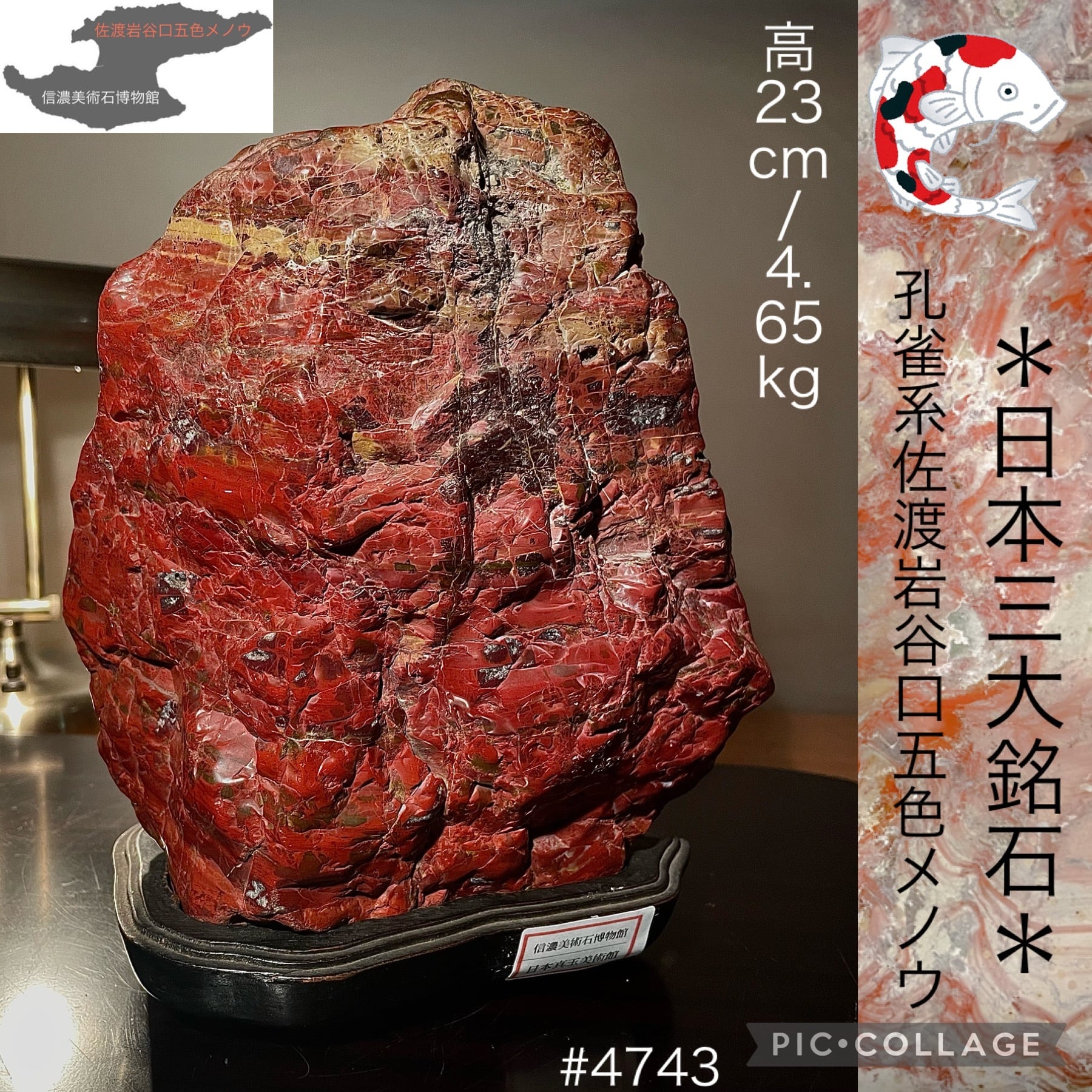 【信濃美術石博物館】水石 盆栽 孔雀系 佐渡岩谷口五色メノウ 横18×高23(cm) 4.65kg佐渡赤玉石 赤石 佐渡錦紅石 骨董盆石鑑賞石太湖石4743