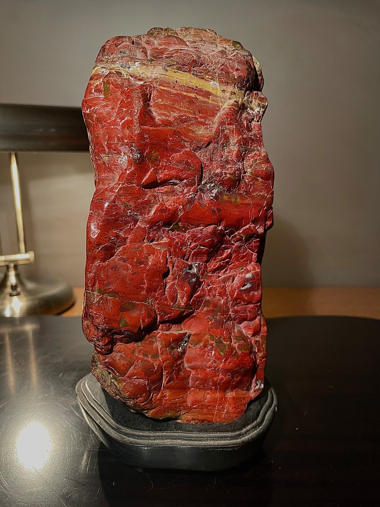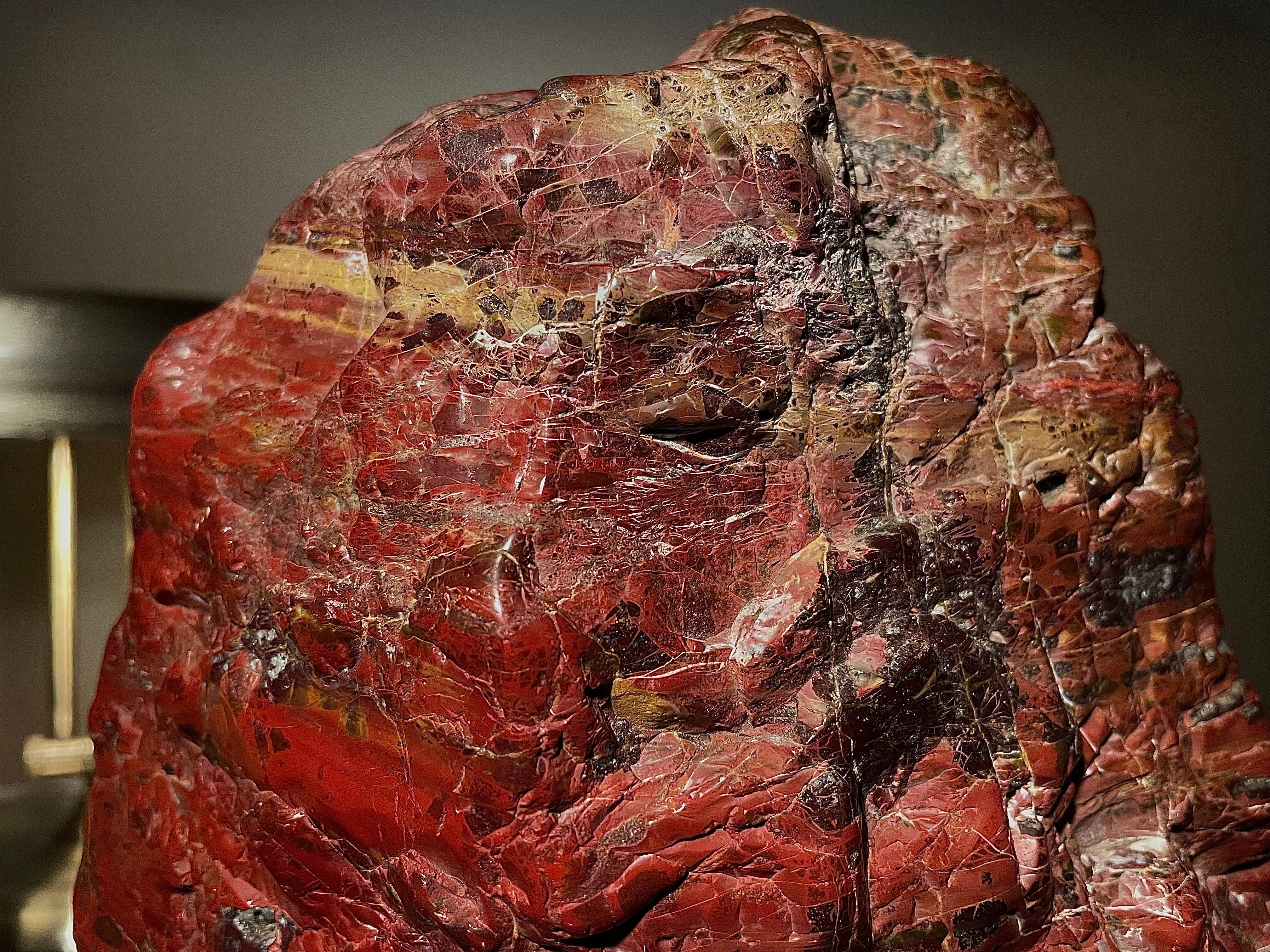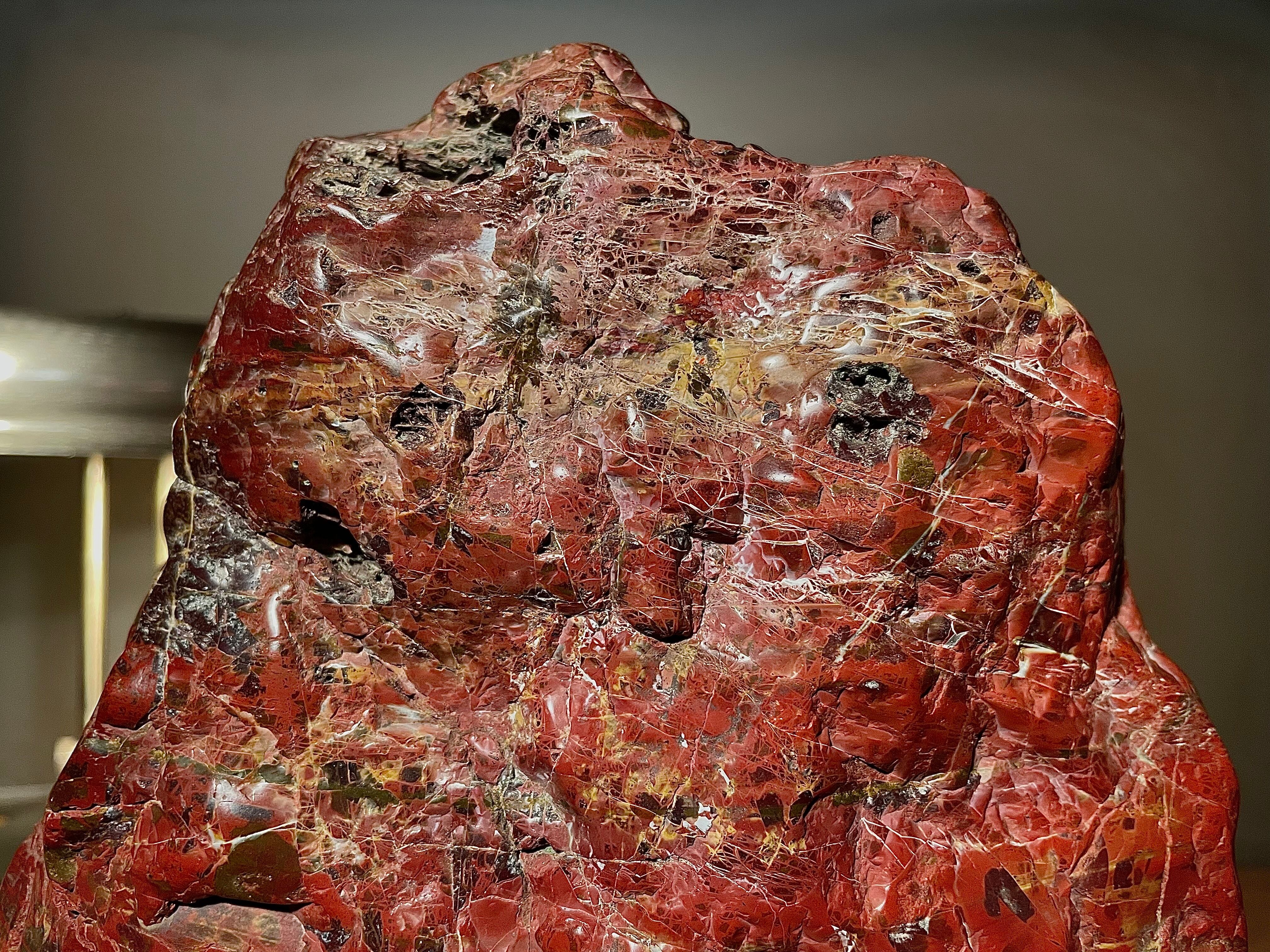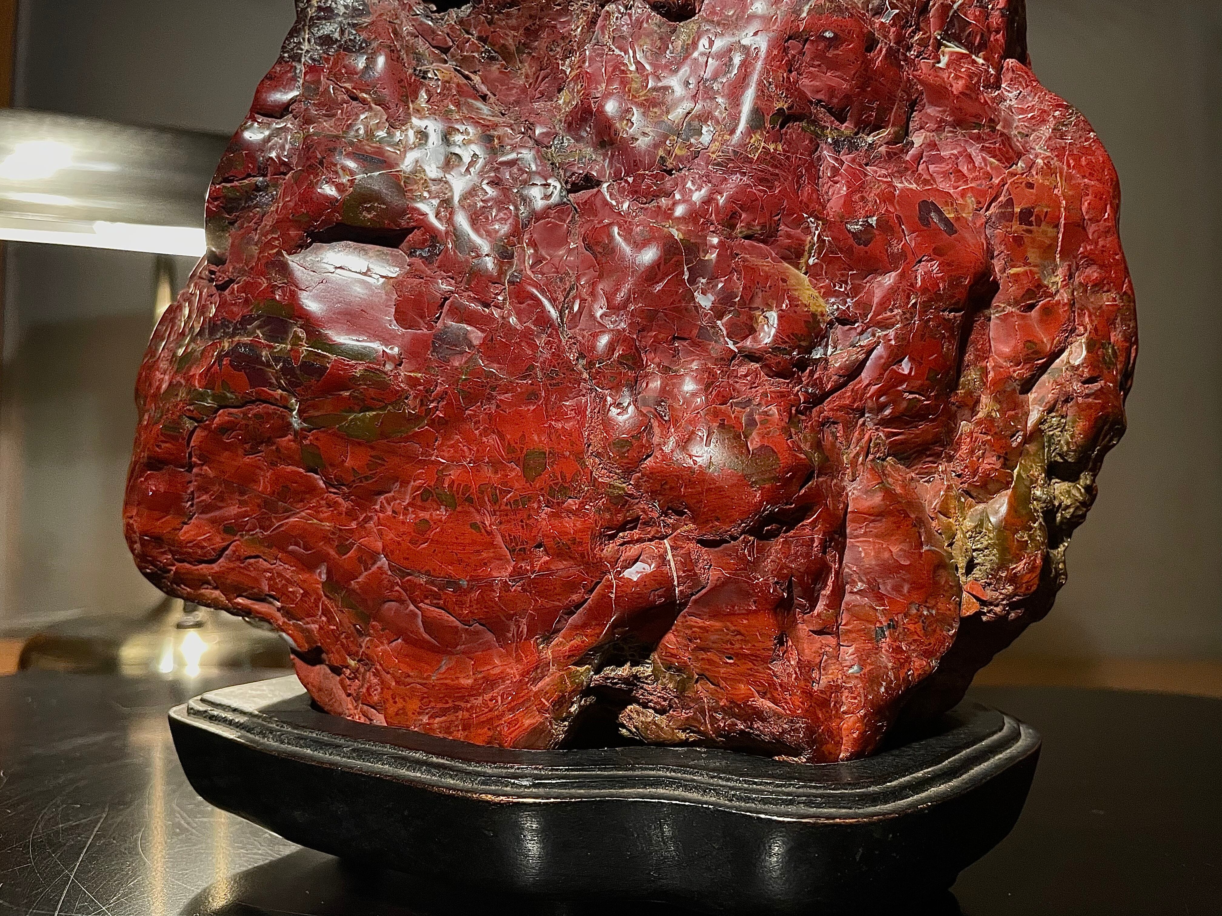 【信濃美術石博物館】水石 盆栽 孔雀系 佐渡岩谷口五色メノウ 横18×高23(cm) 4.65kg佐渡赤玉石 赤石 佐渡錦紅石 骨董盆石鑑賞石太湖石4743