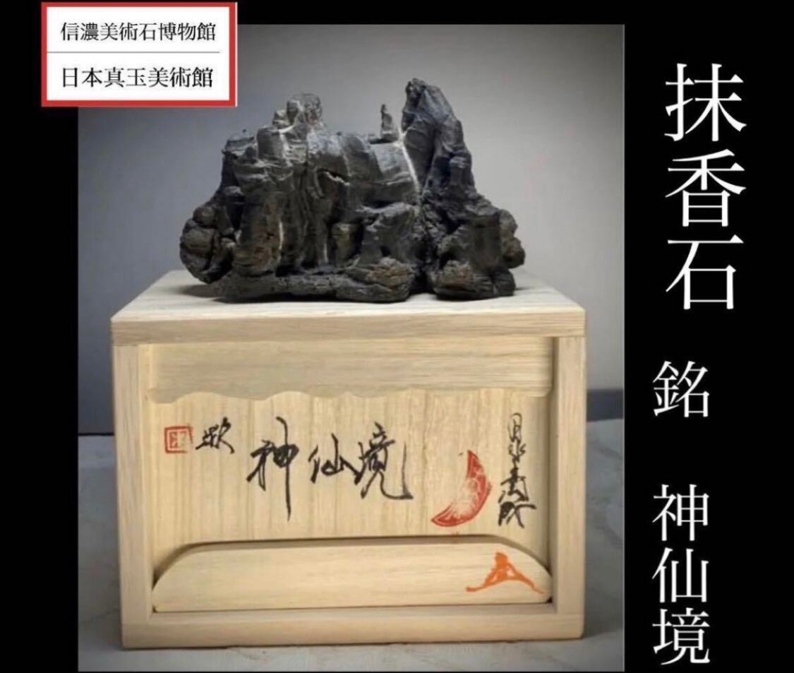 【信濃美術石博物館】水石 盆石 置物 時代盆石 桐箱付 銘:『神仙境』 桐箱付 2731