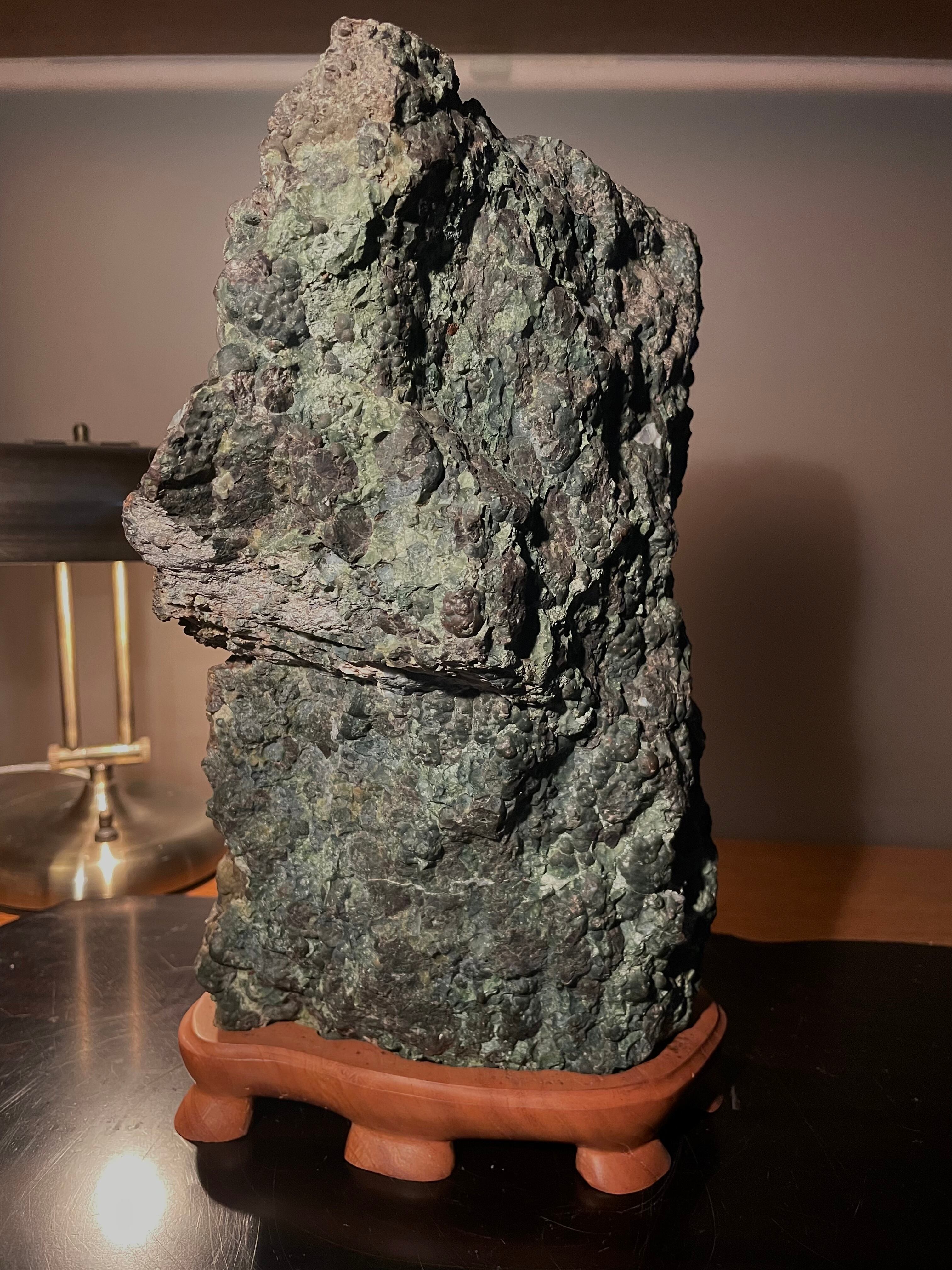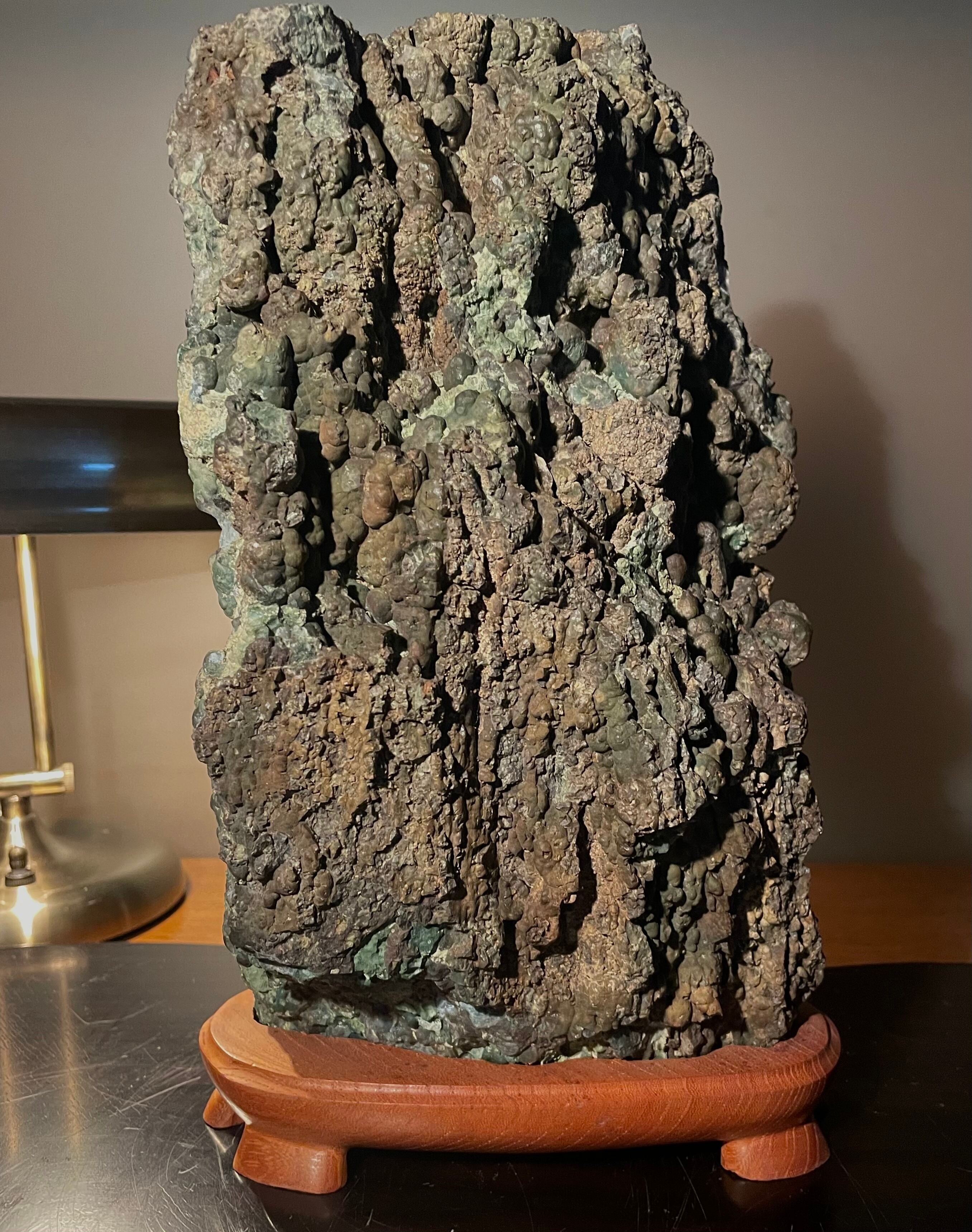 【信濃美術石博物館】 水石 佐渡相川孔雀石 横17×高31(cm)6kg 佐渡赤玉石 佐渡錦紅石 赤玉赤石盆栽骨董盆石鑑賞石観賞石太湖石菊花石 5479