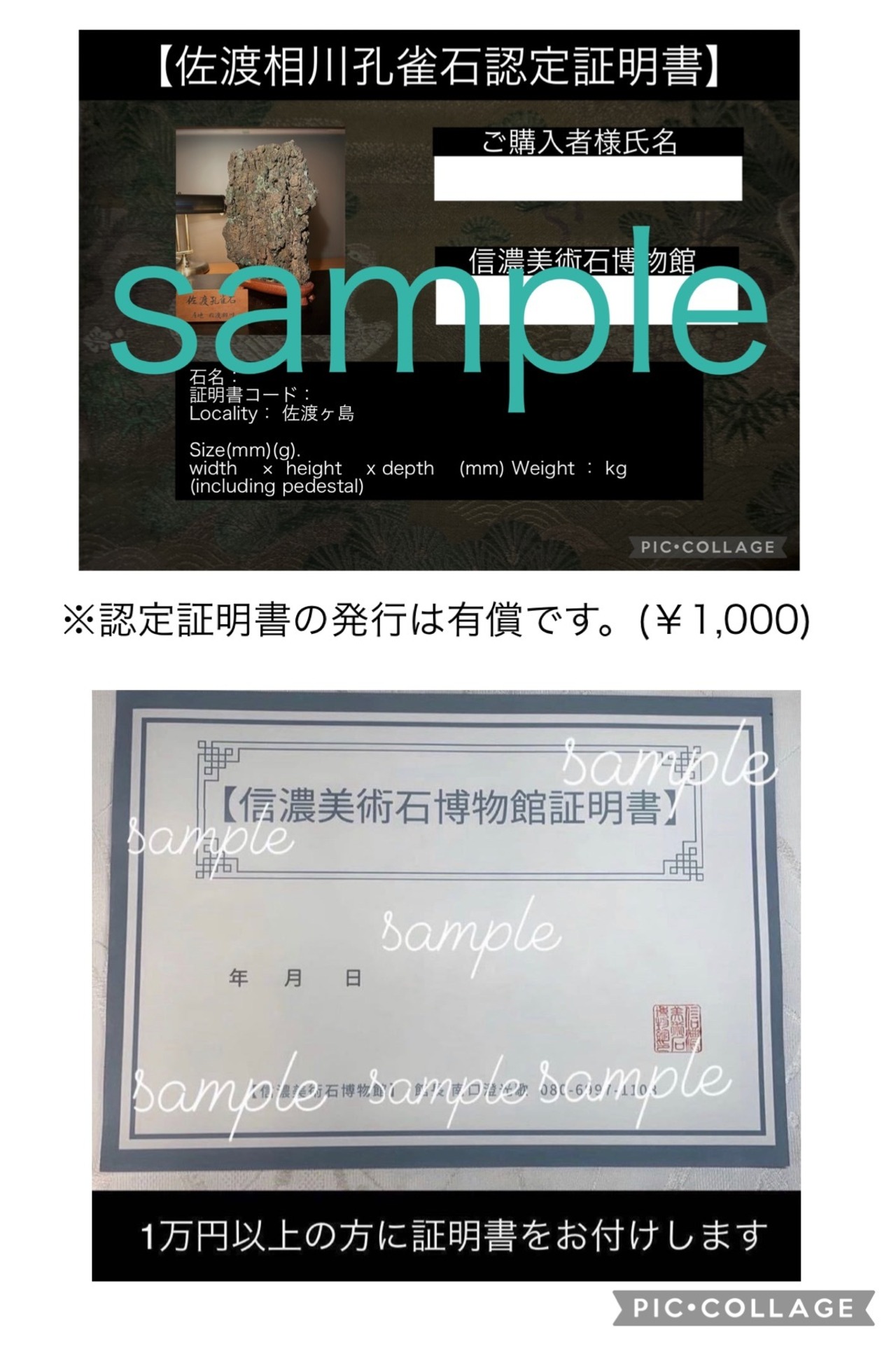 ※1万円以上のご購入の方に信濃美術石博物館証明書をお付け致します。